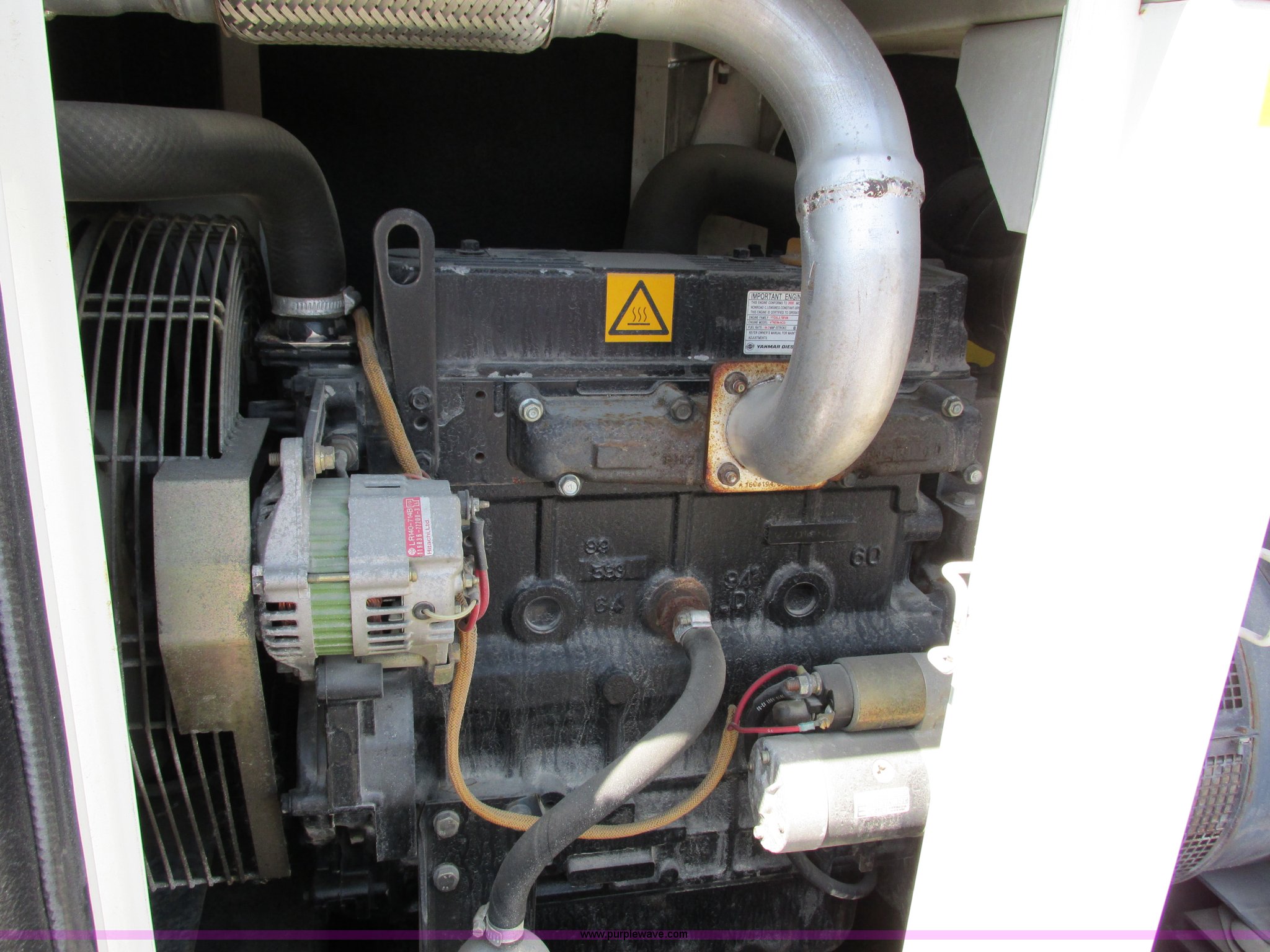 Purple Wave is selling a used Generator Set in Wisconsin. This item is a Atlas Copco QAS28 generator with the following: 8,282 hours on meter, Yanmar 2.776L four cylinder diesel engine, Model 4TNE94-ACG, Engine runs, will shut down with under voltage code, 30 kVA, 25 kW, 110V to 480V, Lift rings, Jack stand, Pintle hitch, Trailer wiring, 205/75R15 tires