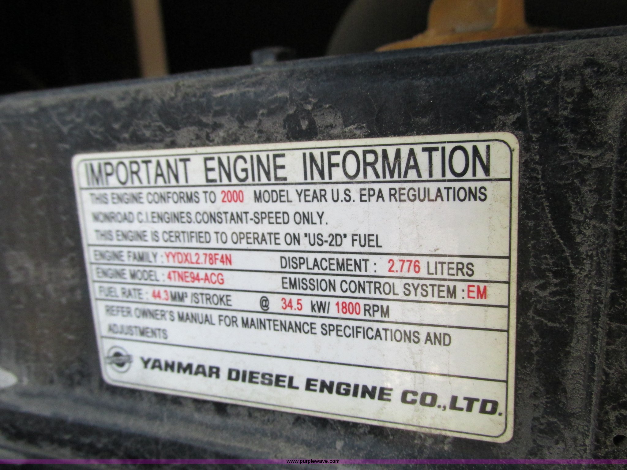 - Yanmar 2.776L four cylinder diesel engine