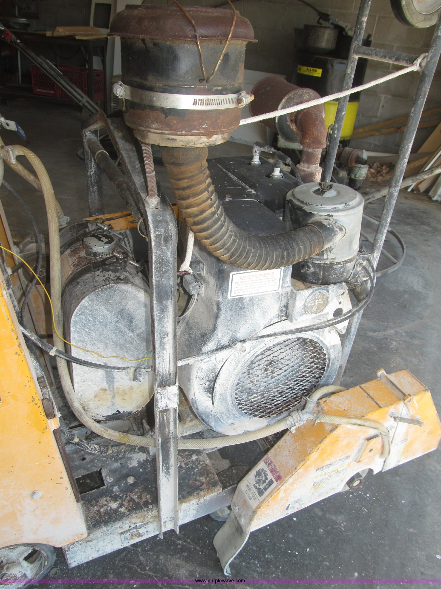 Purple Wave is selling a used Concrete Equip. or Acces. in Nebraska. This item is a Stow Slicer 2 18" concrete saw with the following: 1,071 hours on meter, Model C5918WTJD, Wisconsin two cylinder gas engine, Model TJD1, Serial 93030220, Self-propelled, Right and left side cutting capacity, Adjustable cutting depth, Lifting eye, Freewheeling valve, Rear and side water hookup, Blade wrench, Cutting guide, Battery replaced July 2013, Serial 9407220