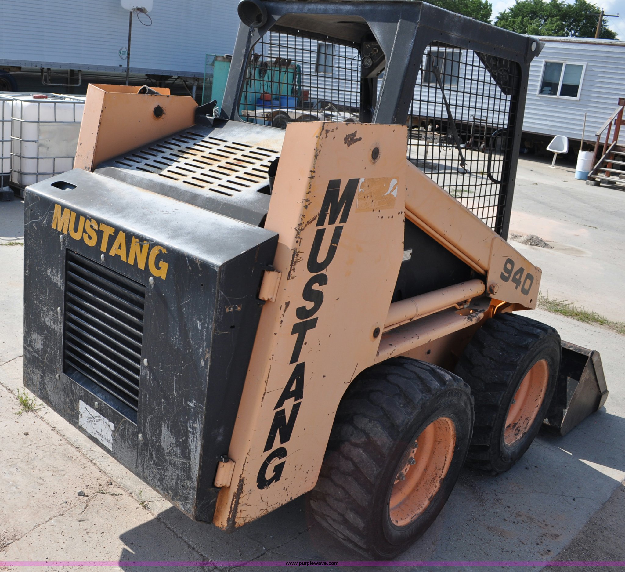 Purple Wave is selling a used Skid Steer Loader in Nebraska. This item is a Mustang 940 skid steer with the following: 2,446 hours on meter, Yanmar diesel engine, Model 4TN82E-AS, 37.8 HP, Joystick and pedal control, Rear cab glass behind seats, 5' toothed bucket, Quick tach, 10-16.5 tires, Serial 4459811