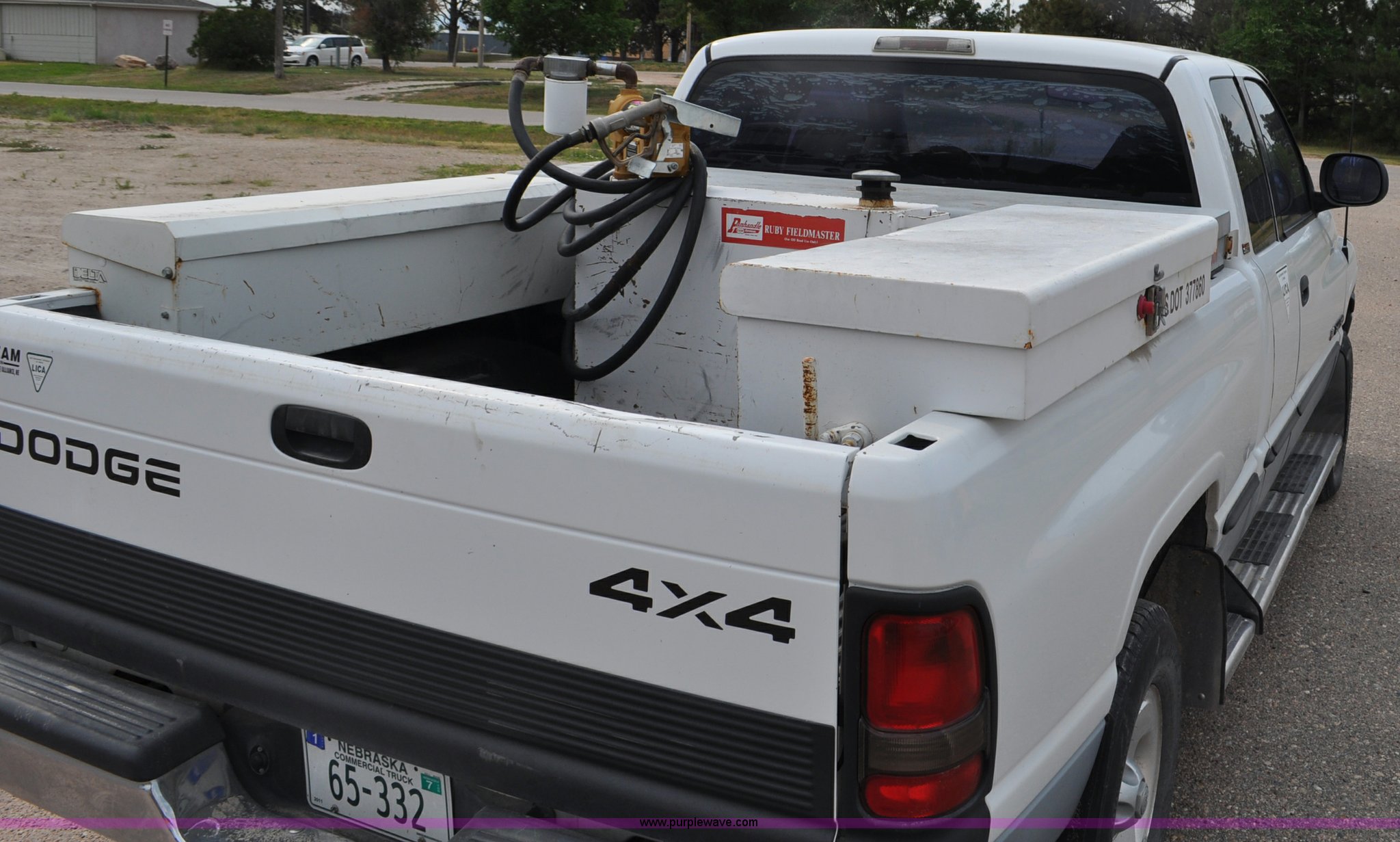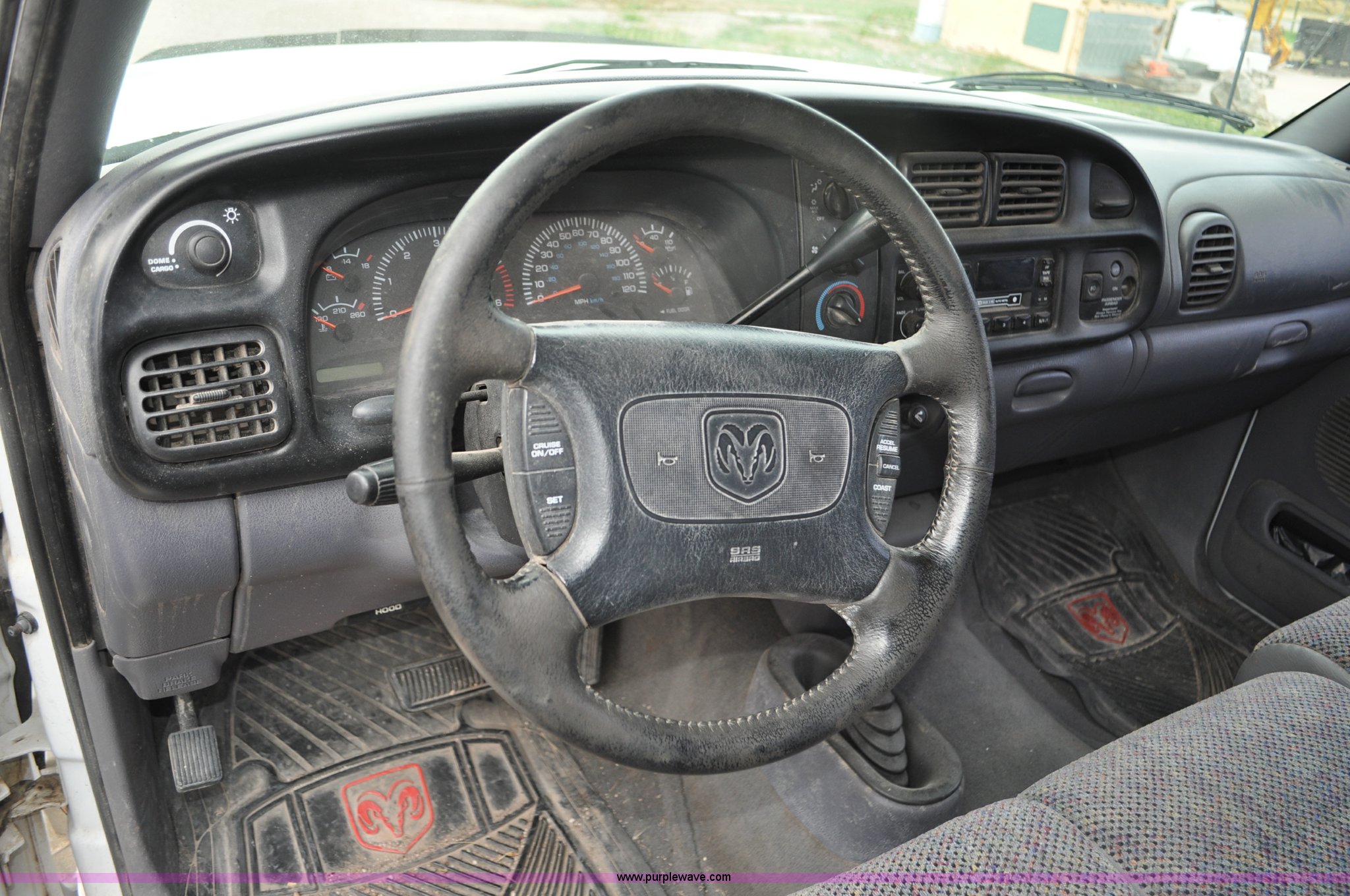 Purple Wave is selling a used Passenger Vehicle in Nebraska. This item is a 1998 Dodge Ram 1500 Quad Cab pickup truck with the following: 181,239 miles on odometer, 5.9L V8 OHV 16V gas engine, Automatic transmission, Four wheel drive, AC and heat, Tilt, Cruise, AM/FM/cassette, Power windows, locks, mirrors, and seats, Cloth interior, Long bed, Toolboxes, Receiver hitch, Trailer wiring, 245/75R16 tires, Right rear door will not open