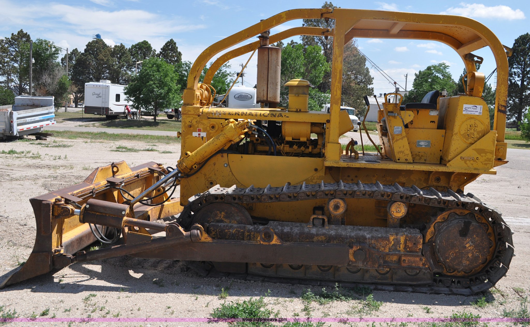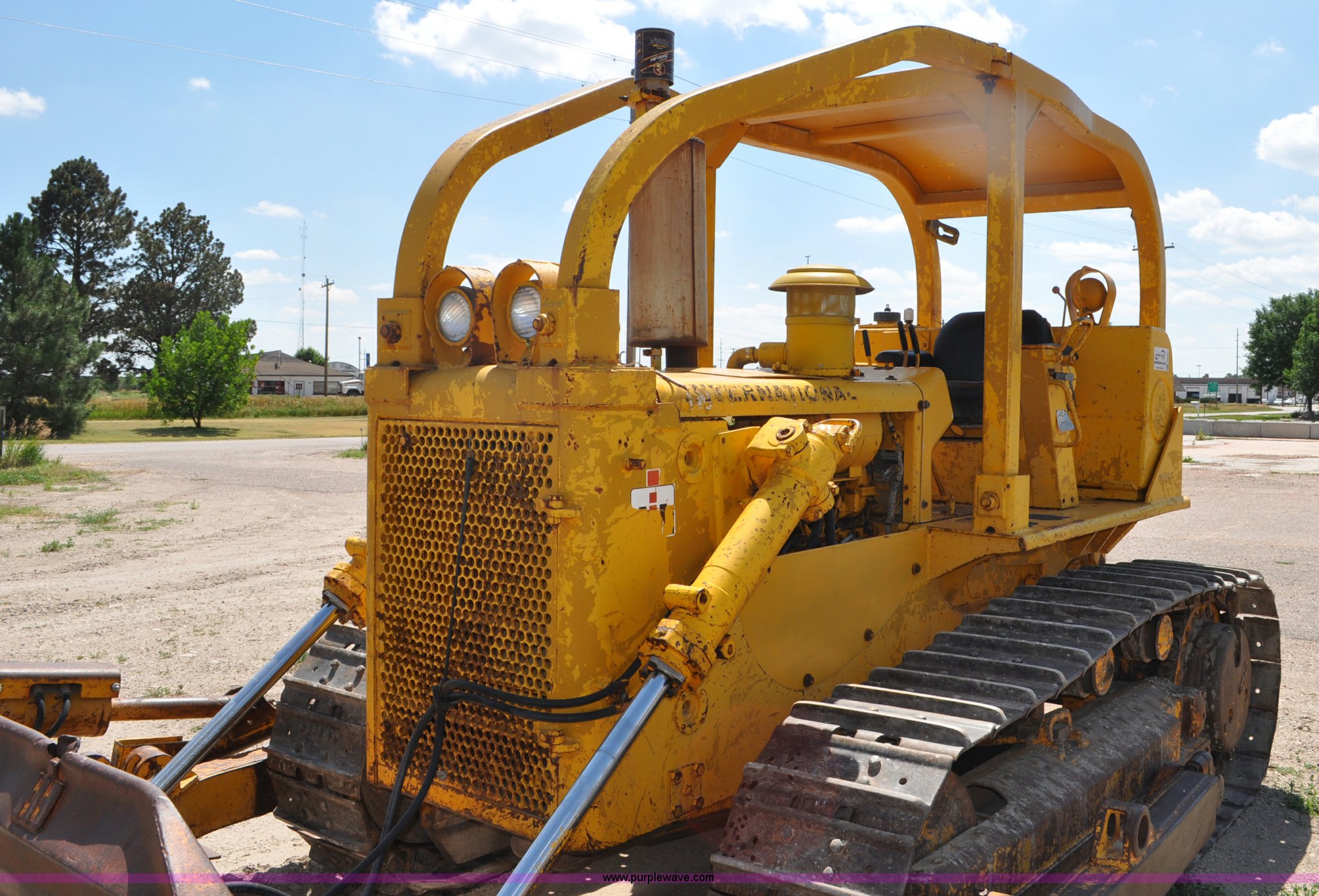 Purple Wave is selling a used Crawler Dozer in Nebraska. This item is a 1973 International TD15C dozer with the following: 1,164 hours on meter, International DT466 six cylinder turbo diesel engine, Powershift transmission, 4F-4R gears, ROPS canopy, Front work lights, Sweeps, 12' A-dozer blade, Angle, Tilt, Rear draw bar, (6) bottom rollers, Track guards, 20" single grouser tracks, 31,520 lbs. base operating weight, Recently replaced batteries, Serial 4240002U0011438
