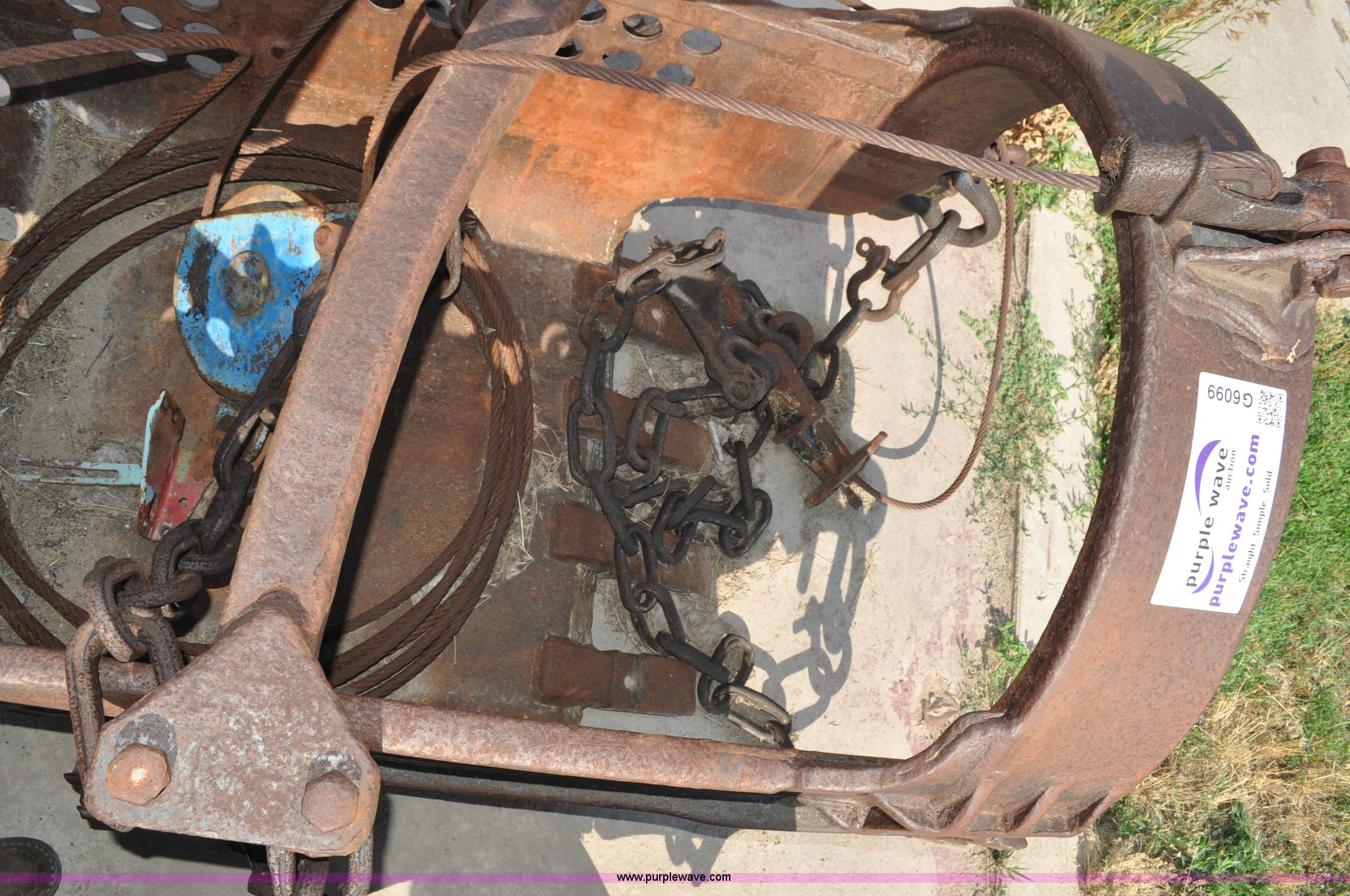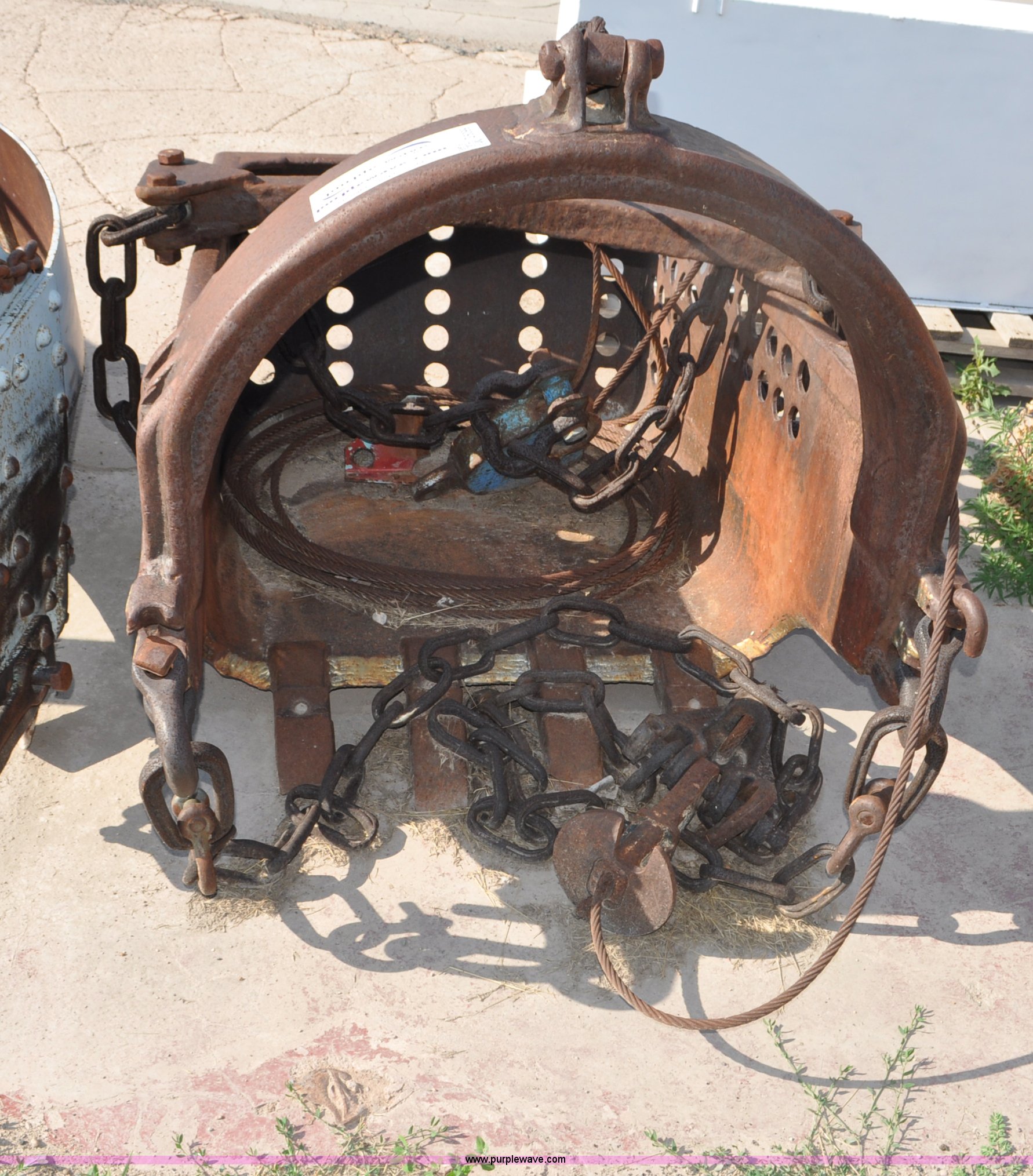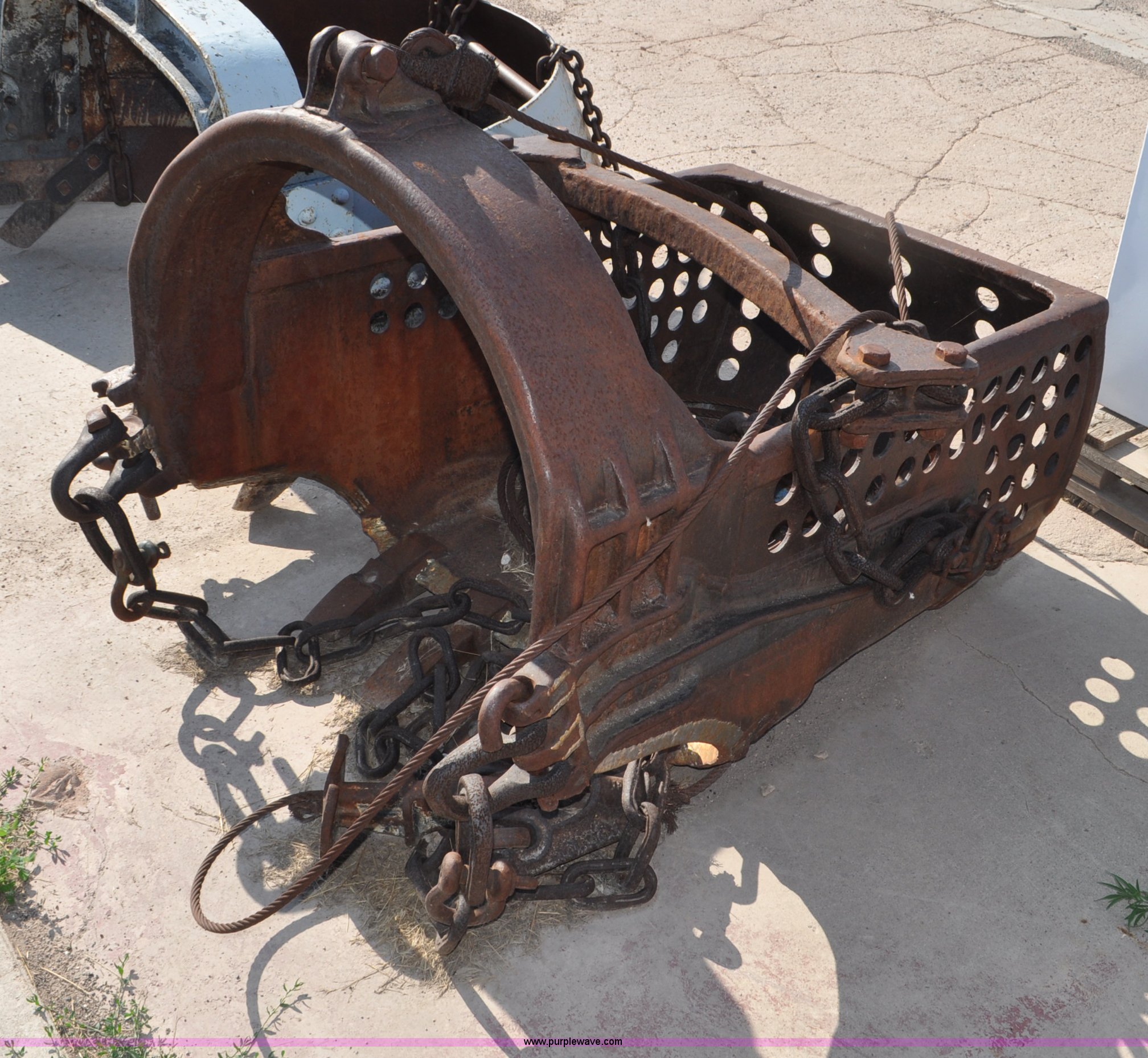 Purple Wave is selling a used Crane Attach. in Nebraska. This item is a Drag bucket with the following: 1/2 cu. yd. capacity, Four teeth, 36"W x 21"D, 60"L overall, Perforated
