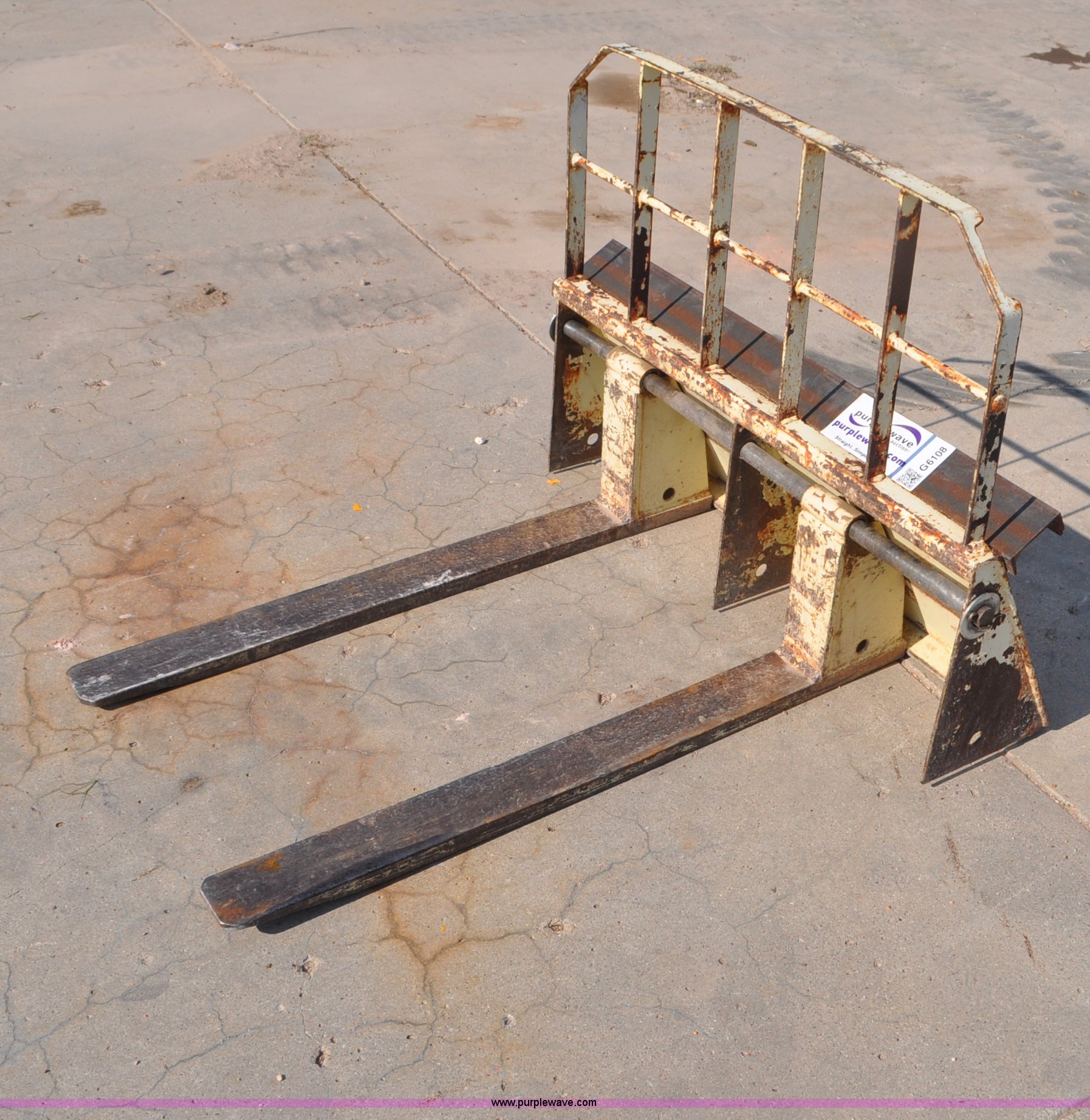 Skid steer pallet forks has sold in Alliance , Nebraska for $412.50. Item G6108 sold on August 22nd, 2013.