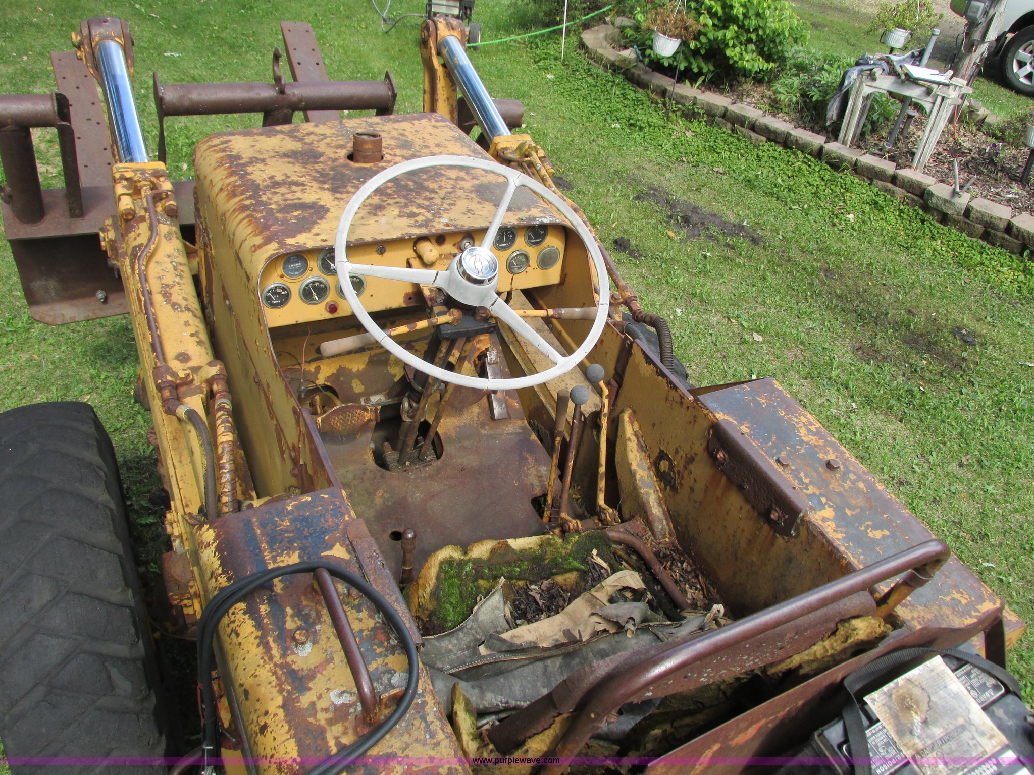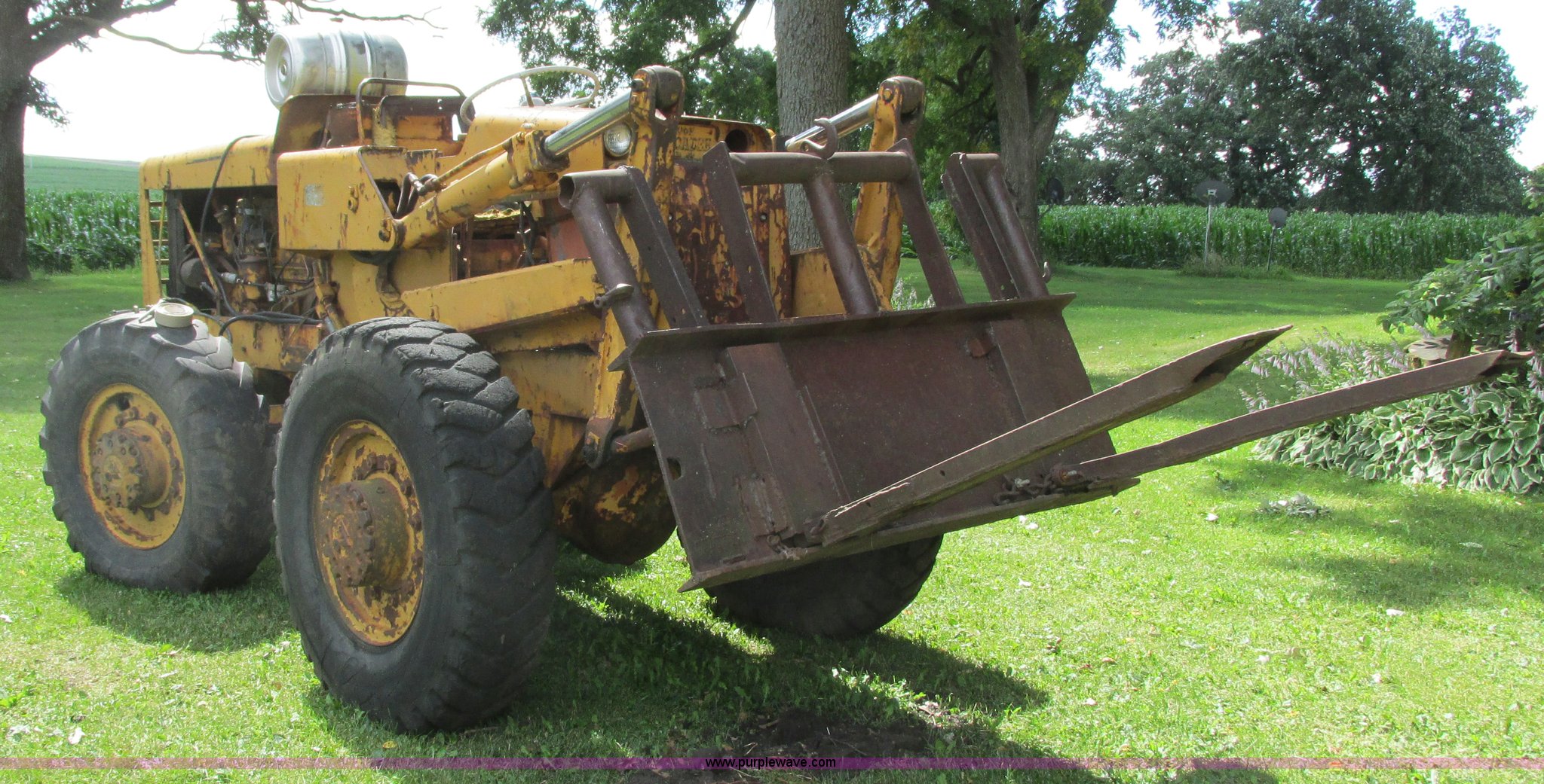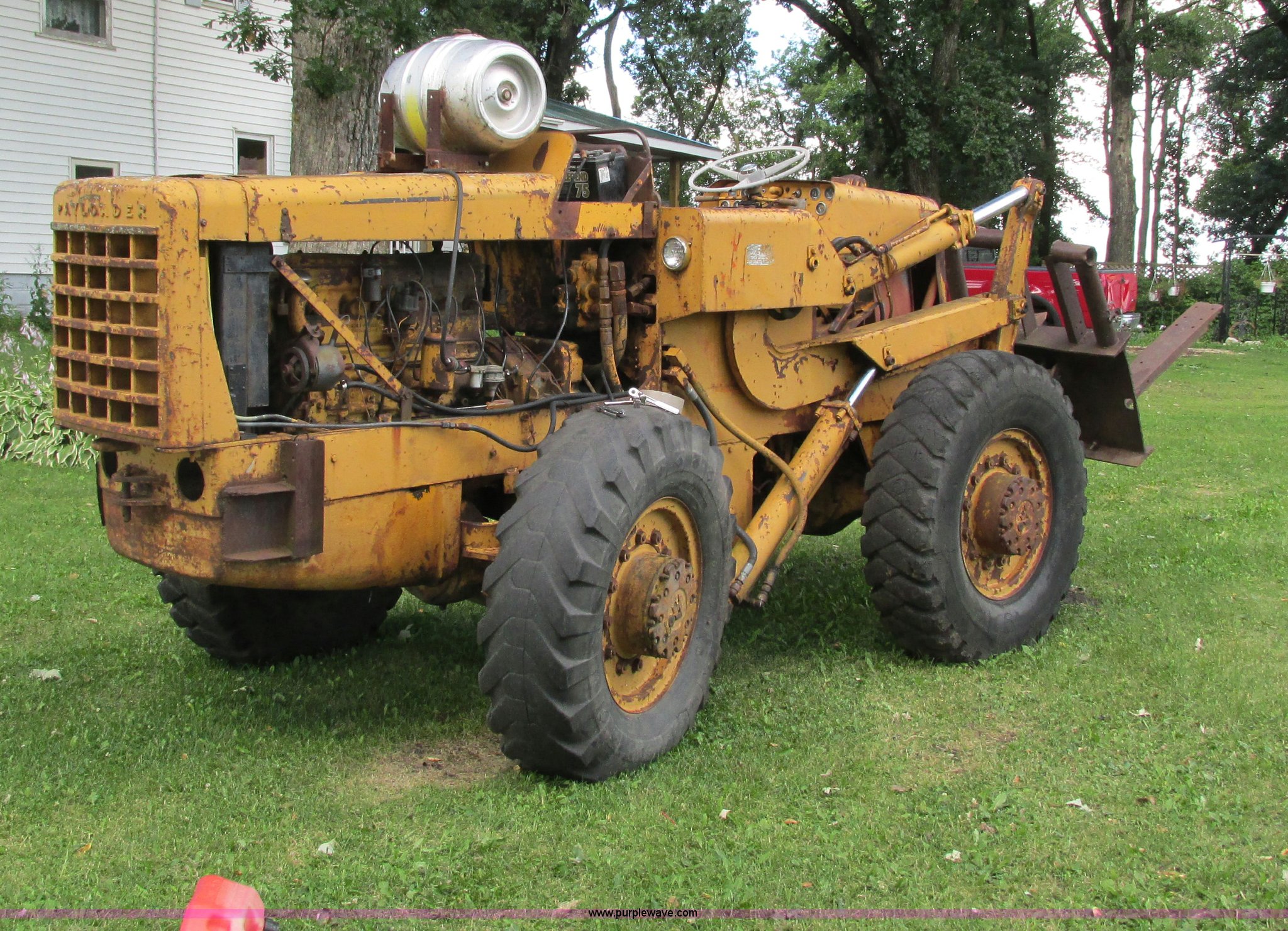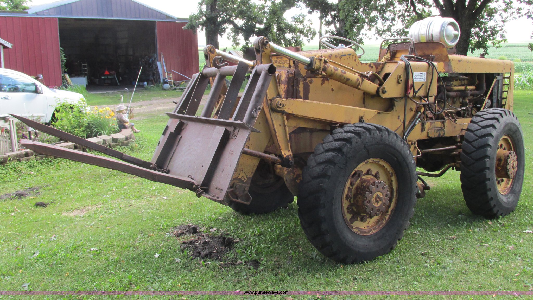Purple Wave is selling a used Wheel Loader in Minnesota. This item is a Hough HU Payloader with the following: 5,197 hours on meter, Six cylinder gas engine, 3F-3R gears, Four wheel drive, 52" shop built forks, 79" bucket, Fuel tank, 13-24 tires, Starter replaced on August 13, 2013, Non-operational