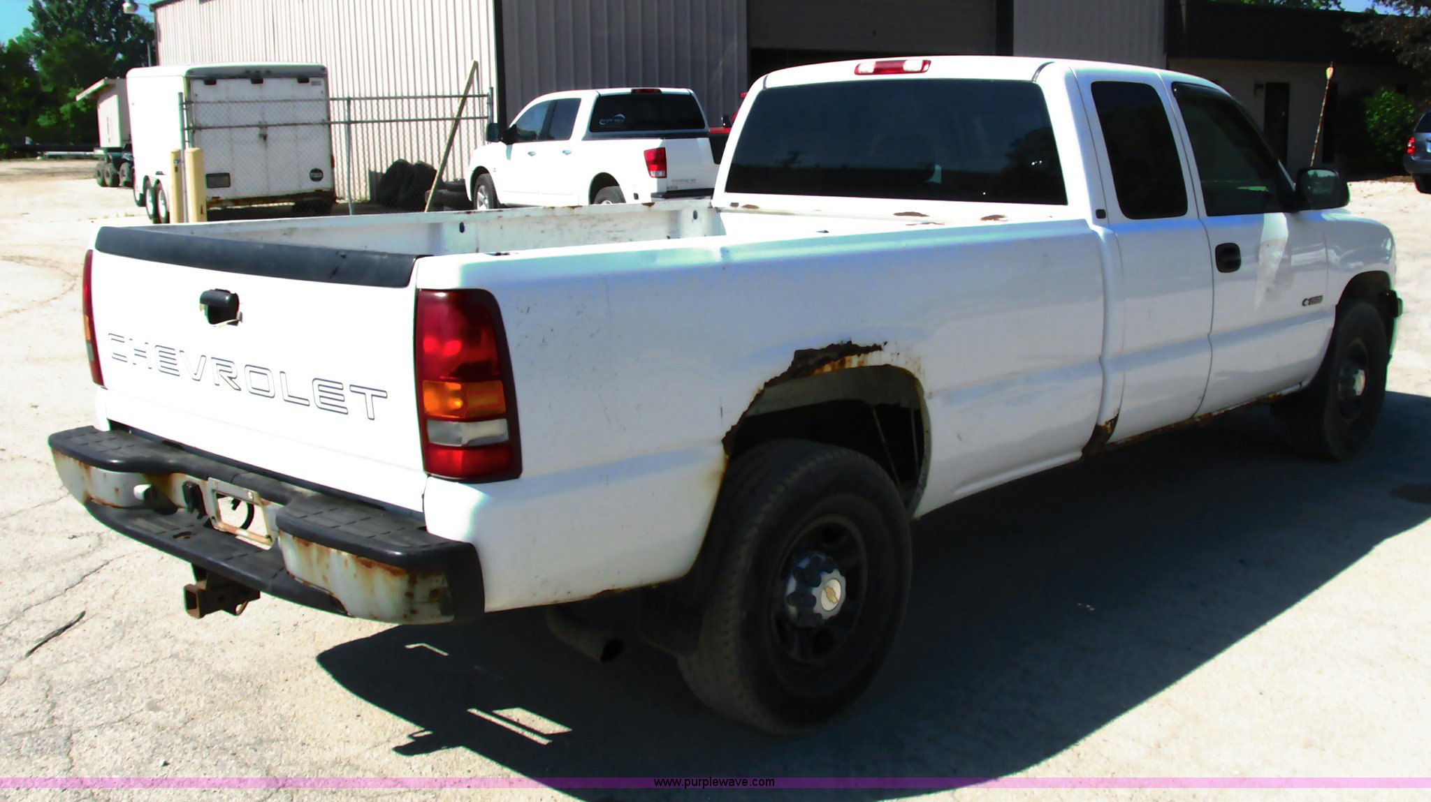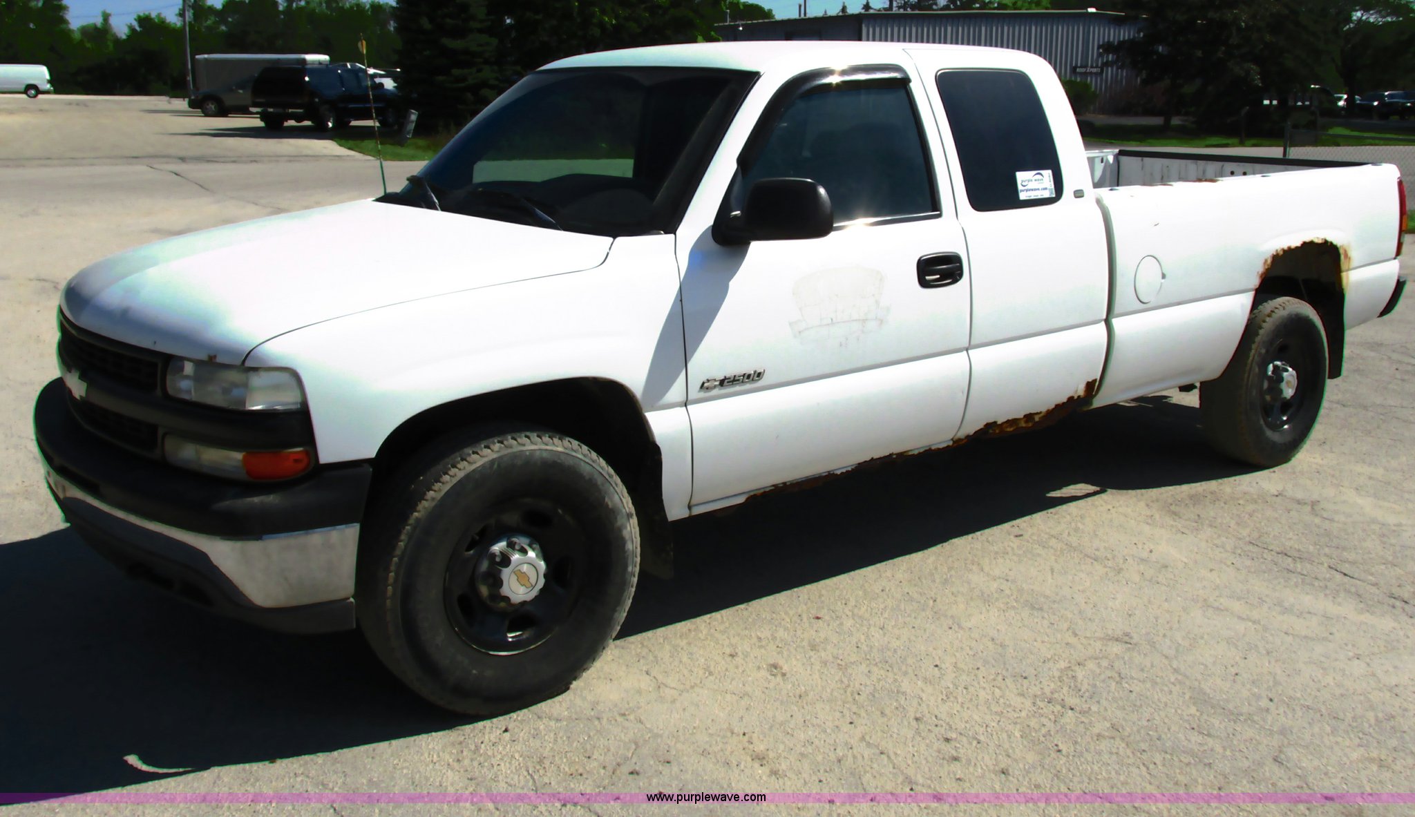 Purple Wave is selling a used Passenger Vehicle in Wisconsin. This item is a 1999 Chevrolet Silverado 2500 Ext. Cab pickup truck with the following: 233,356 actual miles, 6.0L V8 OHV 16V gas engine, Automatic transmission, AC and heat, Tilt, AM/FM, Manual windows and locks, Cloth interior, Receiver hitch, Trailer wiring, 265/75R16 tires, Rust
