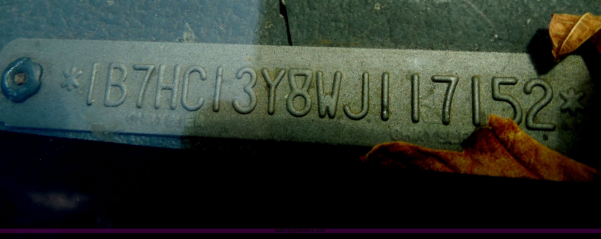 1998 Dodge Ram 1500 Quad Cab pickup truck. Unknown miles on odometer, 5.2L V8 OHV 16V gas engine, Automatic transmission, AM/FM/cassette, Receiver hitch, LT245/75R16 tires, Keys, Missing tailgate, Case# 13C040015. Vehicle is abandoned. No additional information is available. Vehicle does not have keys unless notated otherwise in the item listing.. View City Of Wichita Terms for title acquisition and item removal requirements.. 1B7HC13Y8WJ117152. Shipping quotes available. Tow Service Inc.. 3760 South Broadway. Wichita, KS 67216