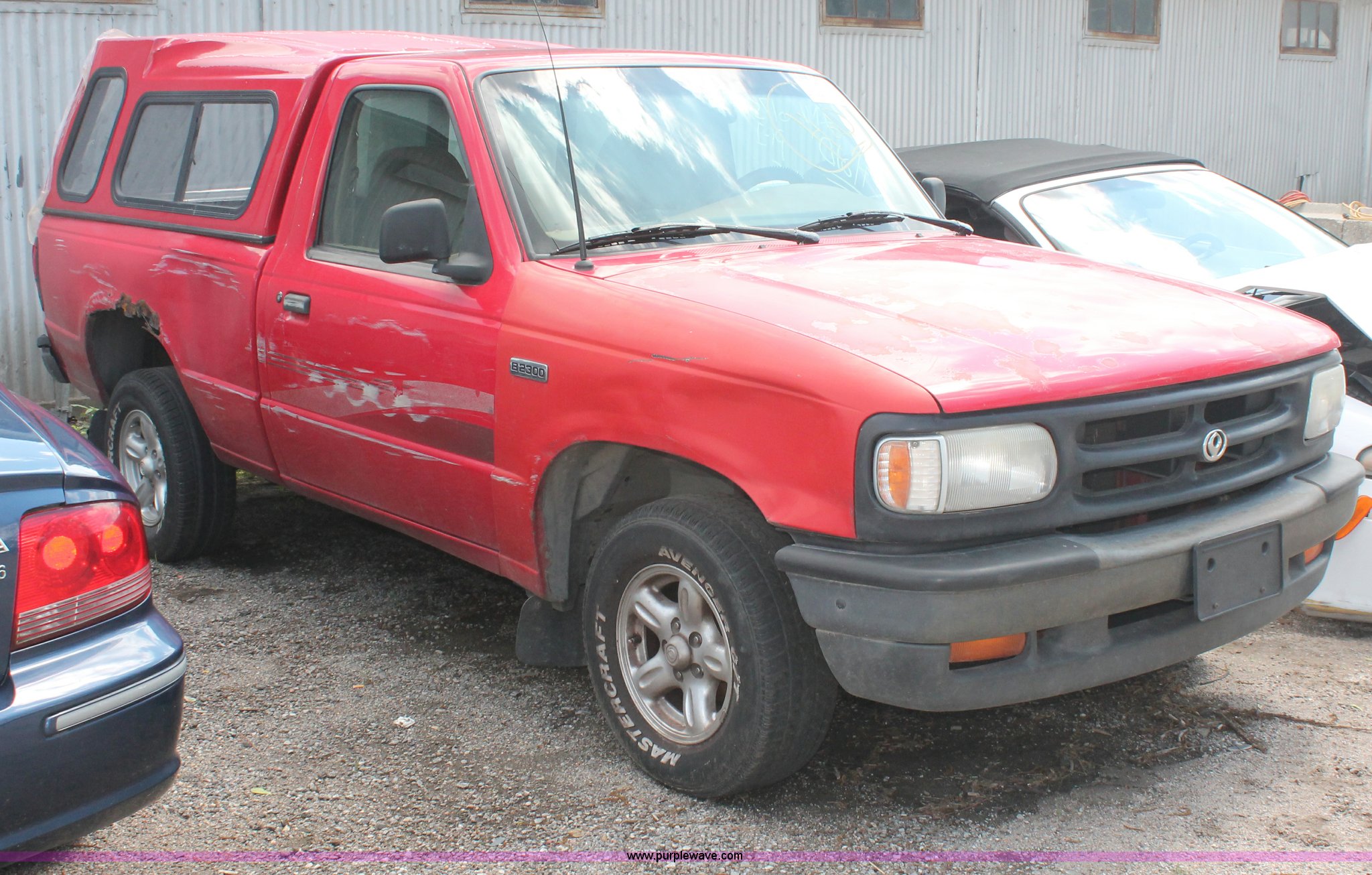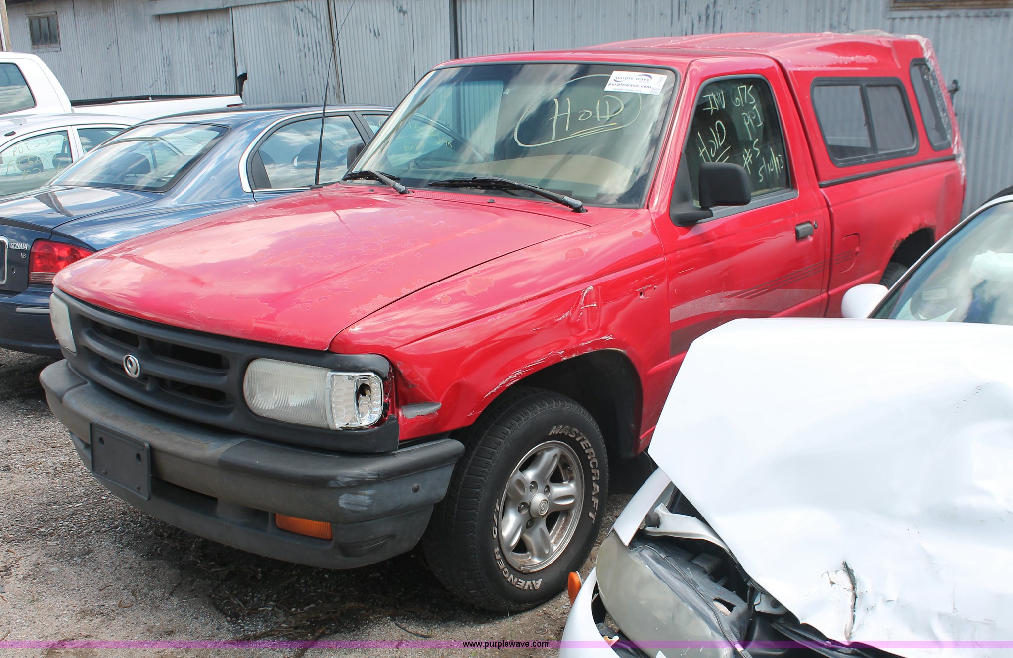 Purple Wave is selling a used Wrecked and Abandoned in Kansas. This item is a 1995 Mazda B2300 pickup truck with the following: 186,490 miles on odometer, 2.3L L4 SOHC 8V gas engine, Five speed manual transmission, AC and heat, Tilt, Cruise, AM/FM/cassette, Sliding rear window, Keys, Bed topper, 2" ball, Trailer wiring, P225/70R14 tires, Paint faded and peeling, Passenger side swipe damage, Glove box damage, Will start, Unknown driving condition, Idles rough, Case# 13C30314