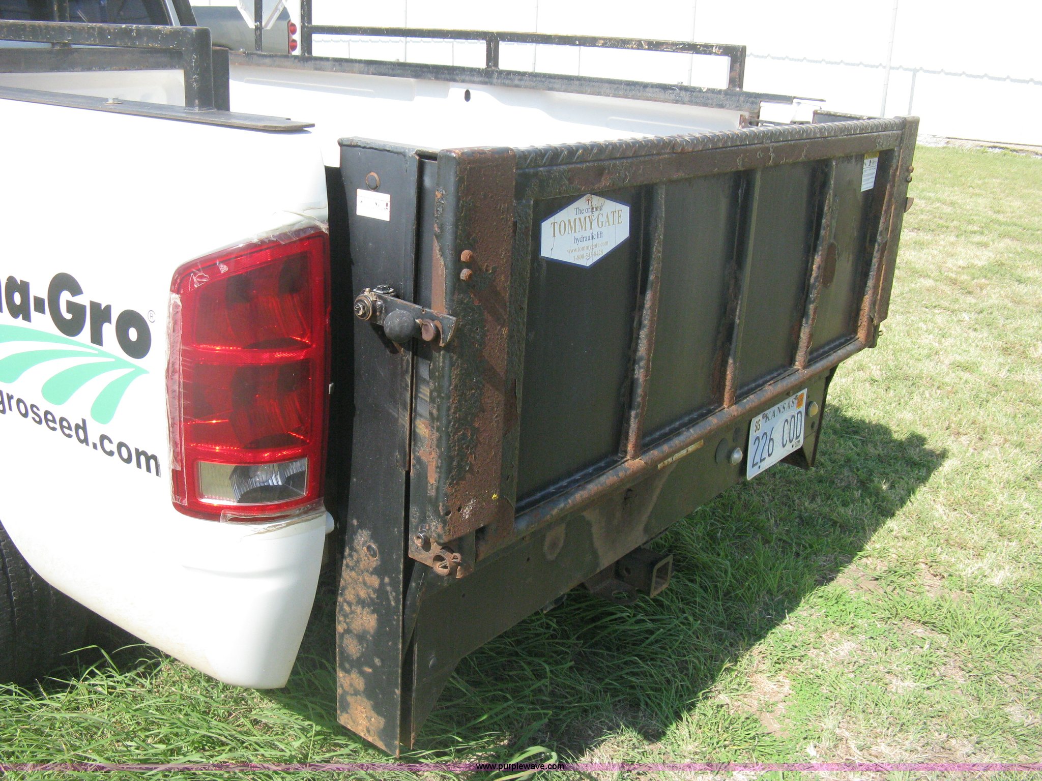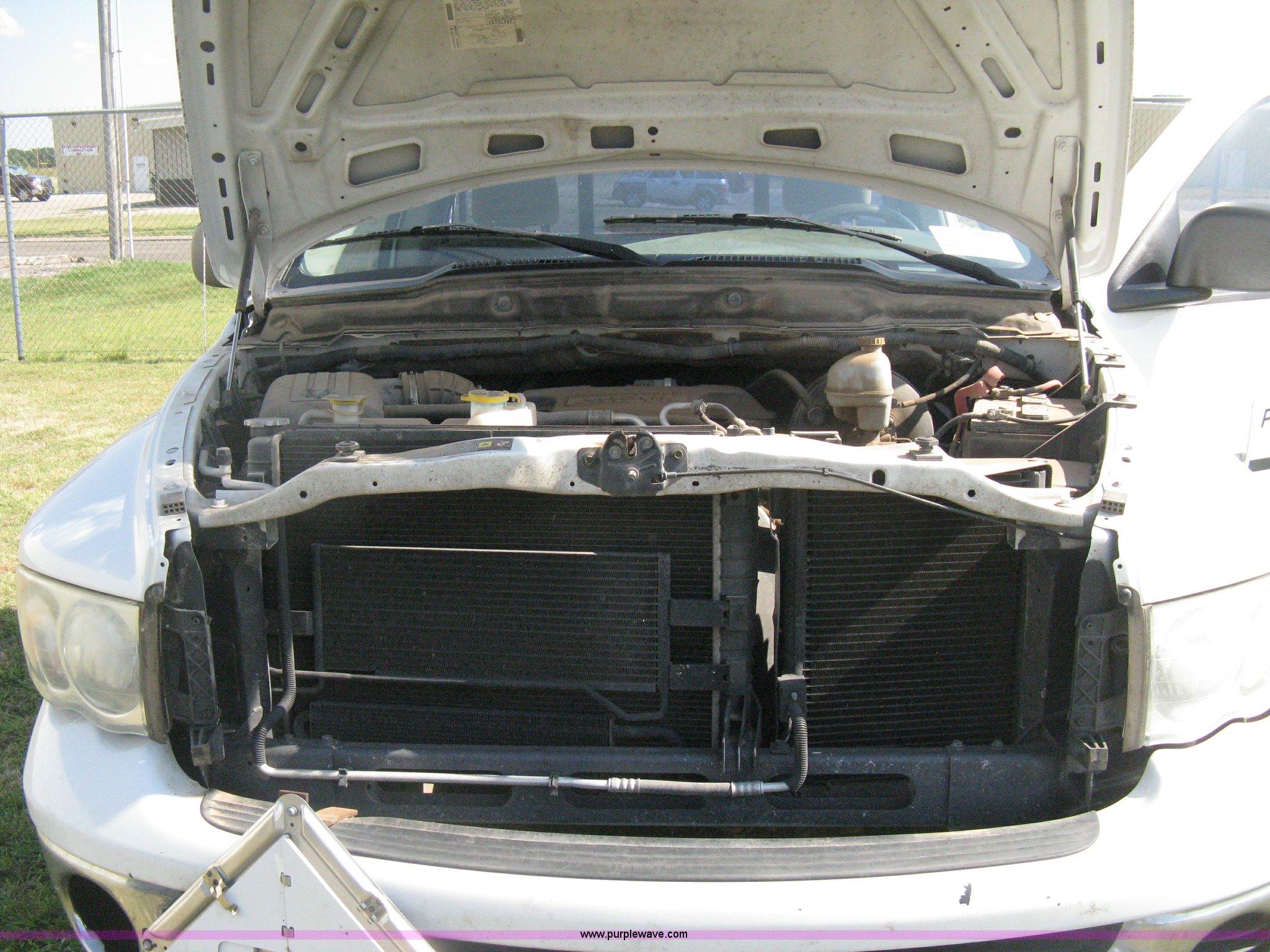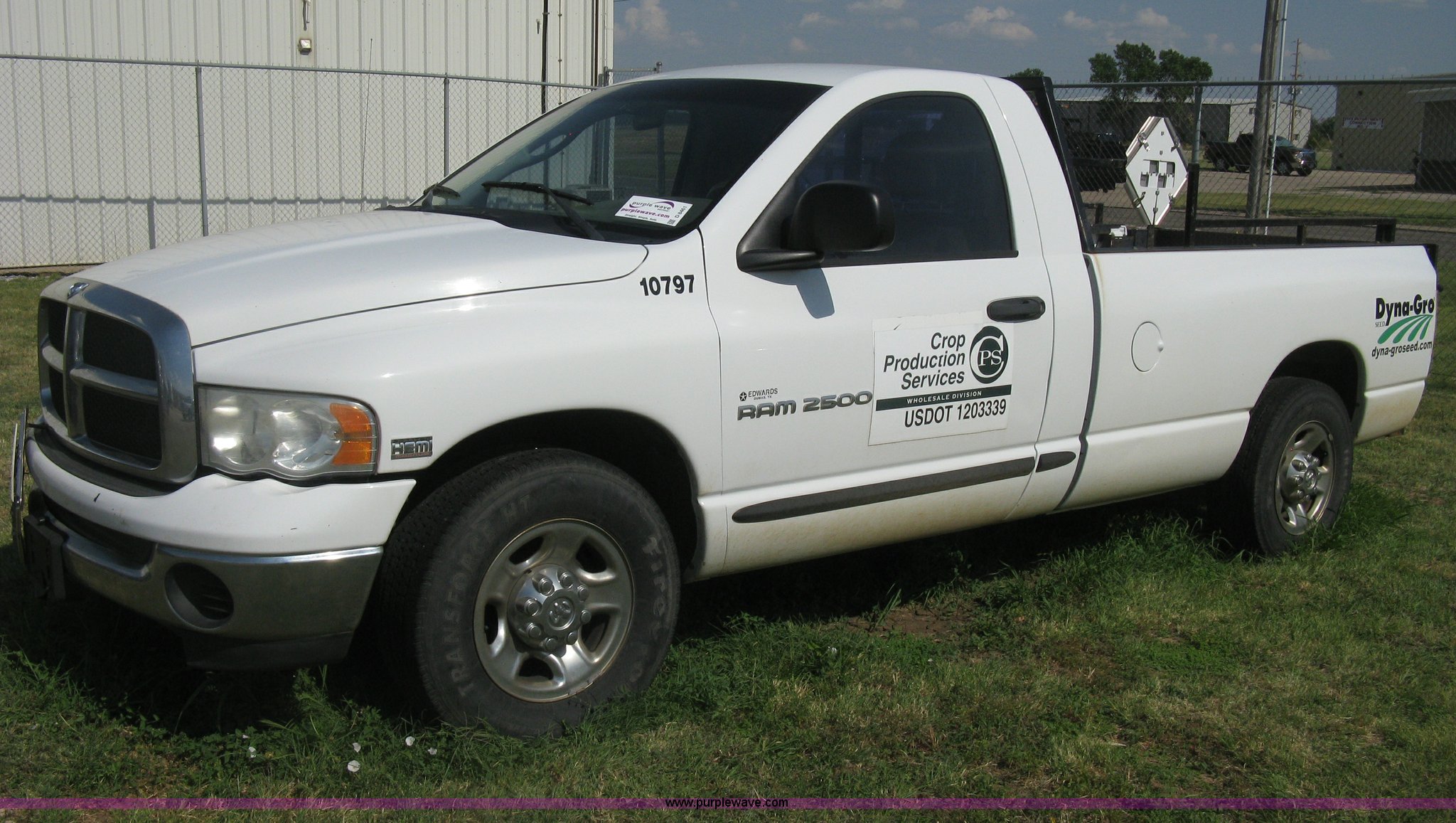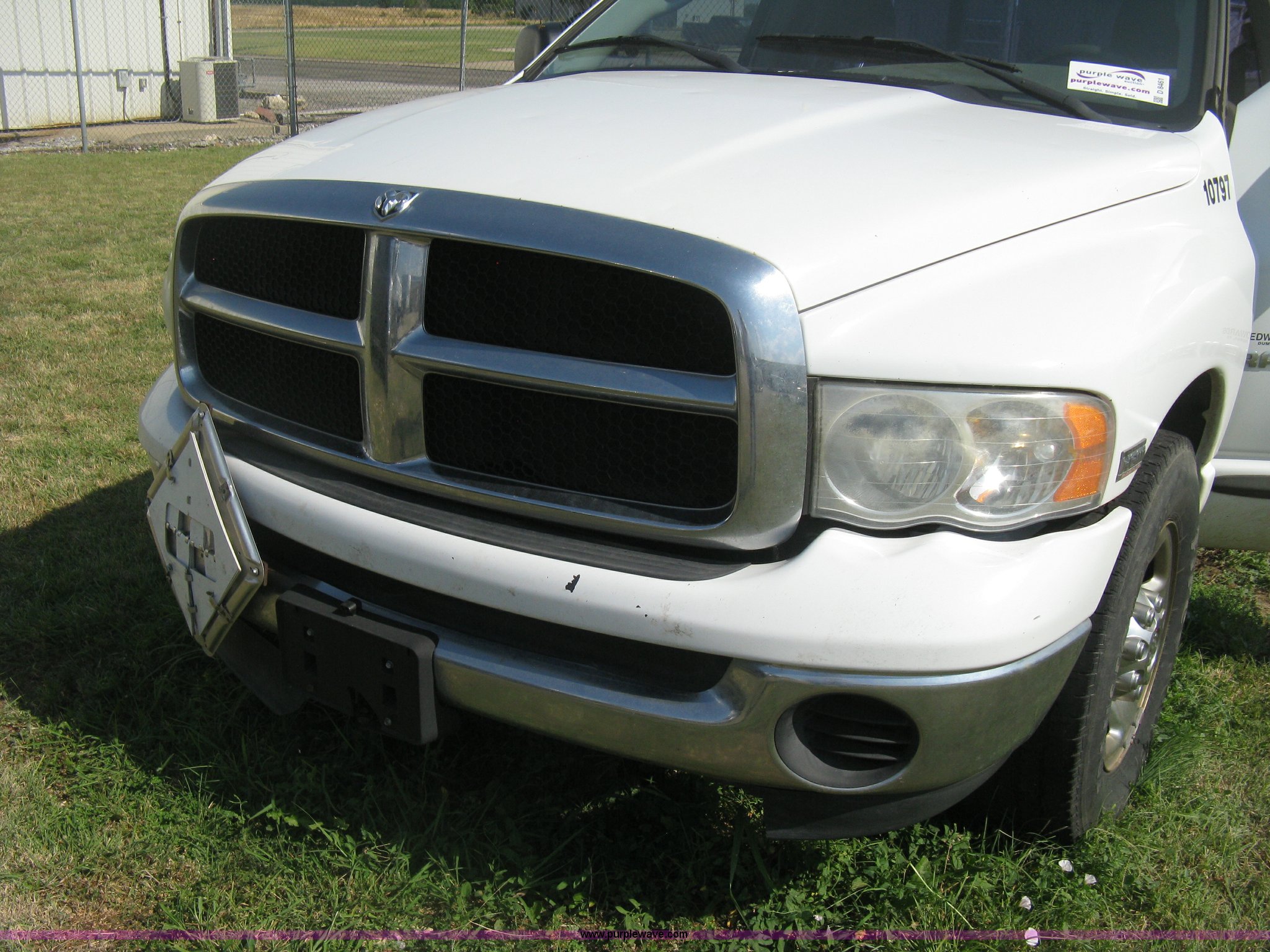 Purple Wave is selling a used Passenger Vehicle in Kansas. This item is a 2004 Dodge Ram 2500 pickup truck with the following: 260,544 miles on odometer, 5.7L V8 OHV 16V gas engine, Automatic transmission, AC and heat, Tilt, Cruise, AM/FM/CD, Power windows, locks, and mirrors, Cloth interior, Long bed, Steel headache rack and bed rails, Tommy Gate hydraulic lift gate, Steel plate in bed, Receiver hitch, Trailer wiring, Aluminum wheels, LT265/70R17 tires, Hail dents, Exterior body damage, Unit# 10797