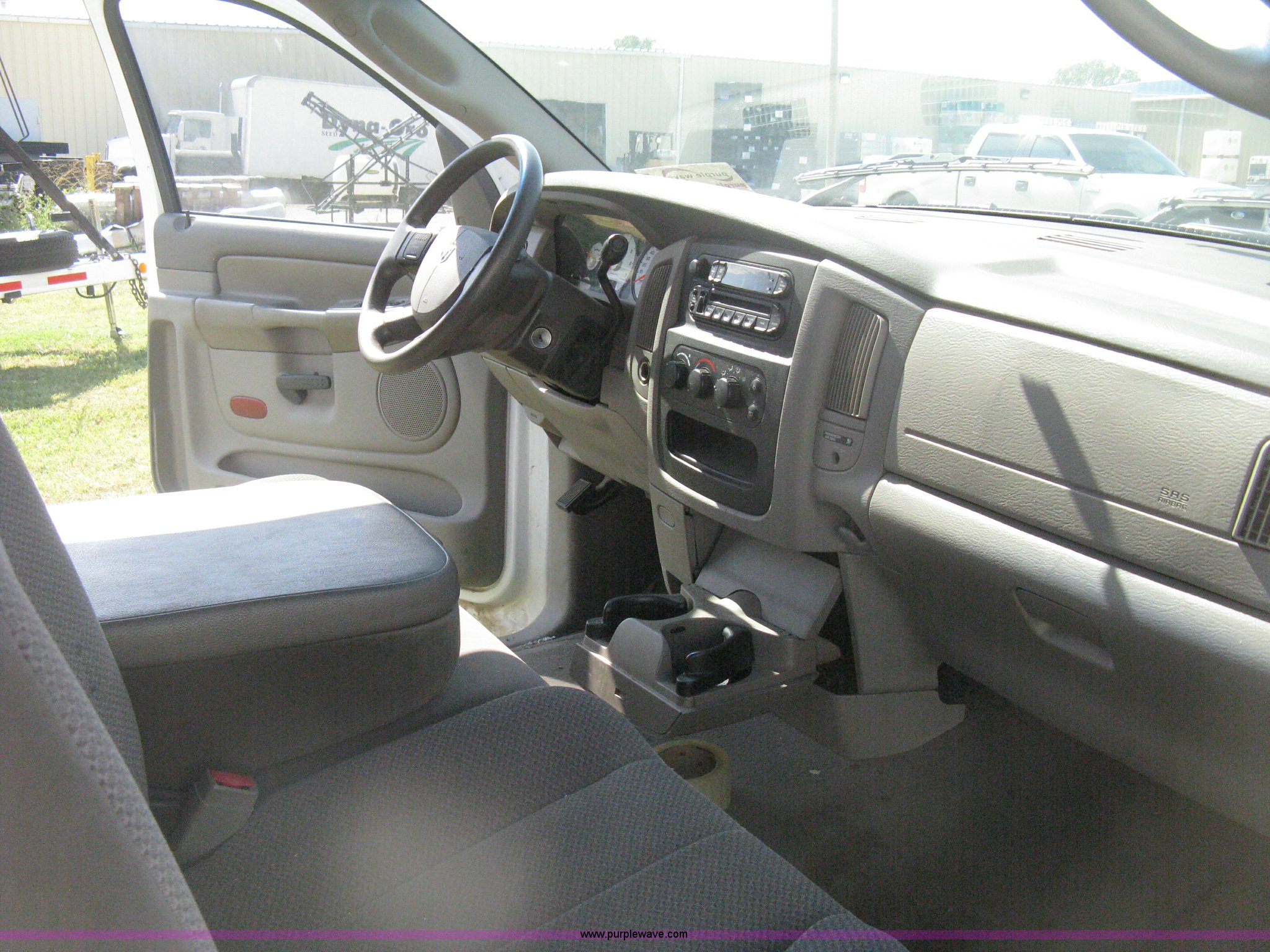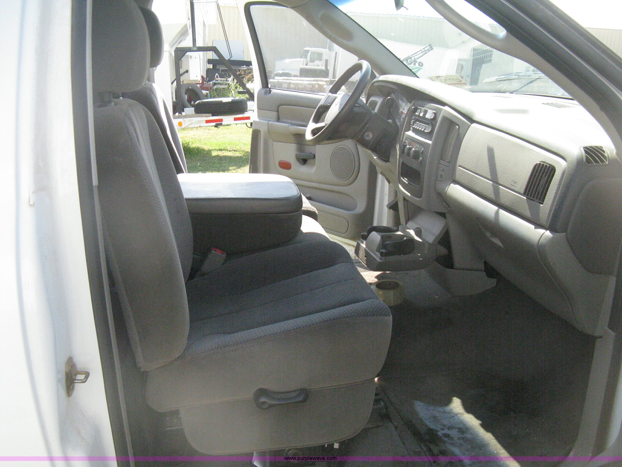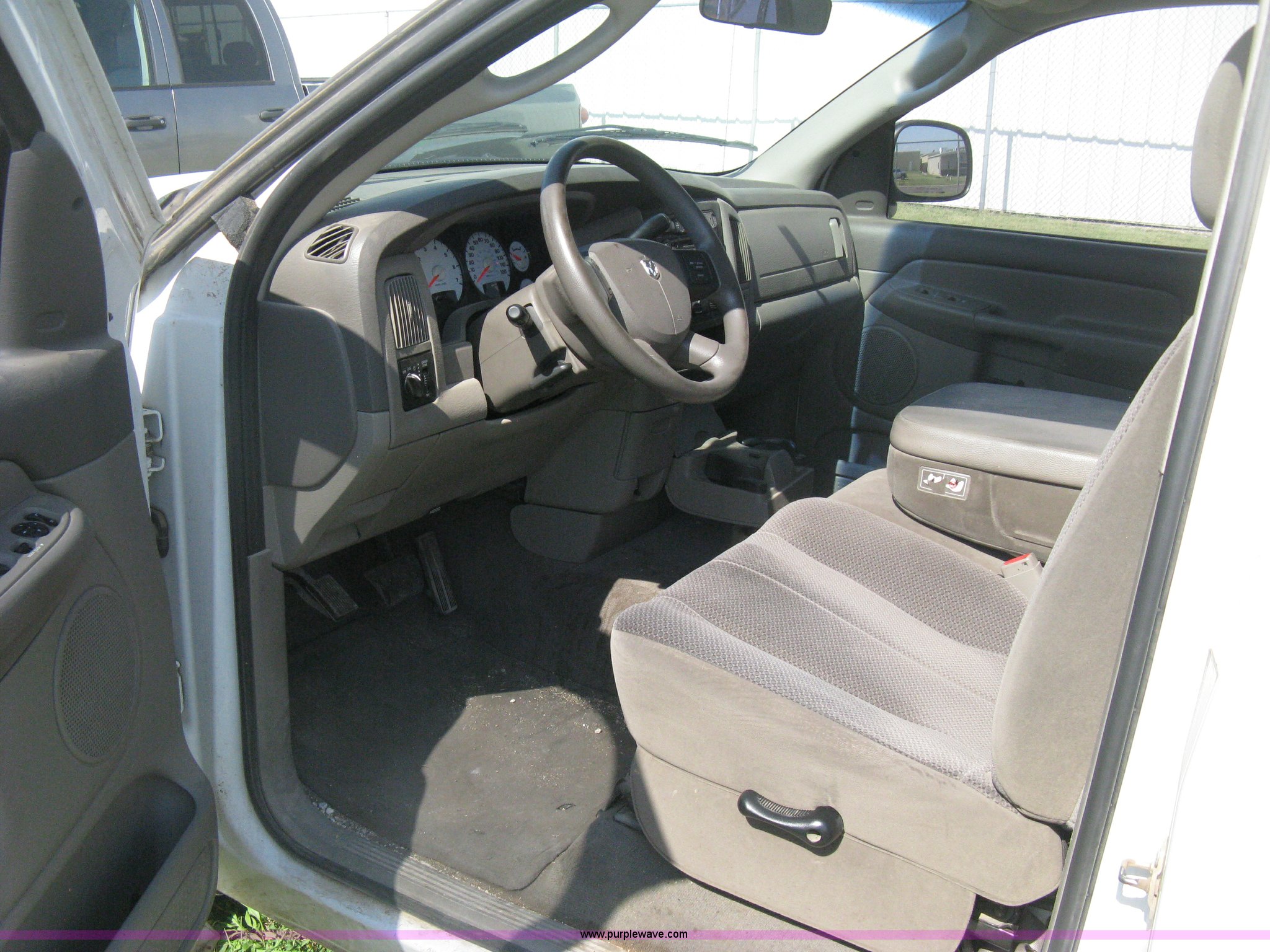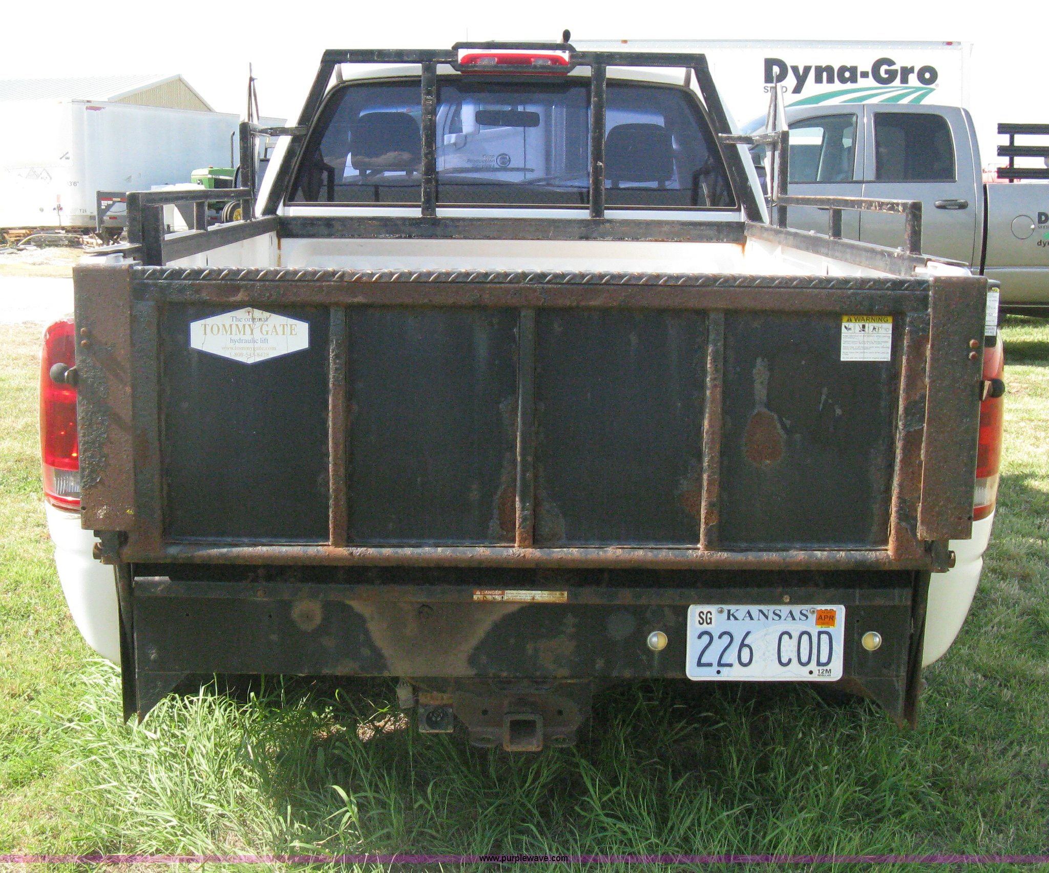 Purple Wave is selling a used Passenger Vehicle in Kansas. This item is a 2004 Dodge Ram 2500 pickup truck with the following: 260,544 miles on odometer, 5.7L V8 OHV 16V gas engine, Automatic transmission, AC and heat, Tilt, Cruise, AM/FM/CD, Power windows, locks, and mirrors, Cloth interior, Long bed, Steel headache rack and bed rails, Tommy Gate hydraulic lift gate, Steel plate in bed, Receiver hitch, Trailer wiring, Aluminum wheels, LT265/70R17 tires, Hail dents, Exterior body damage, Unit# 10797
