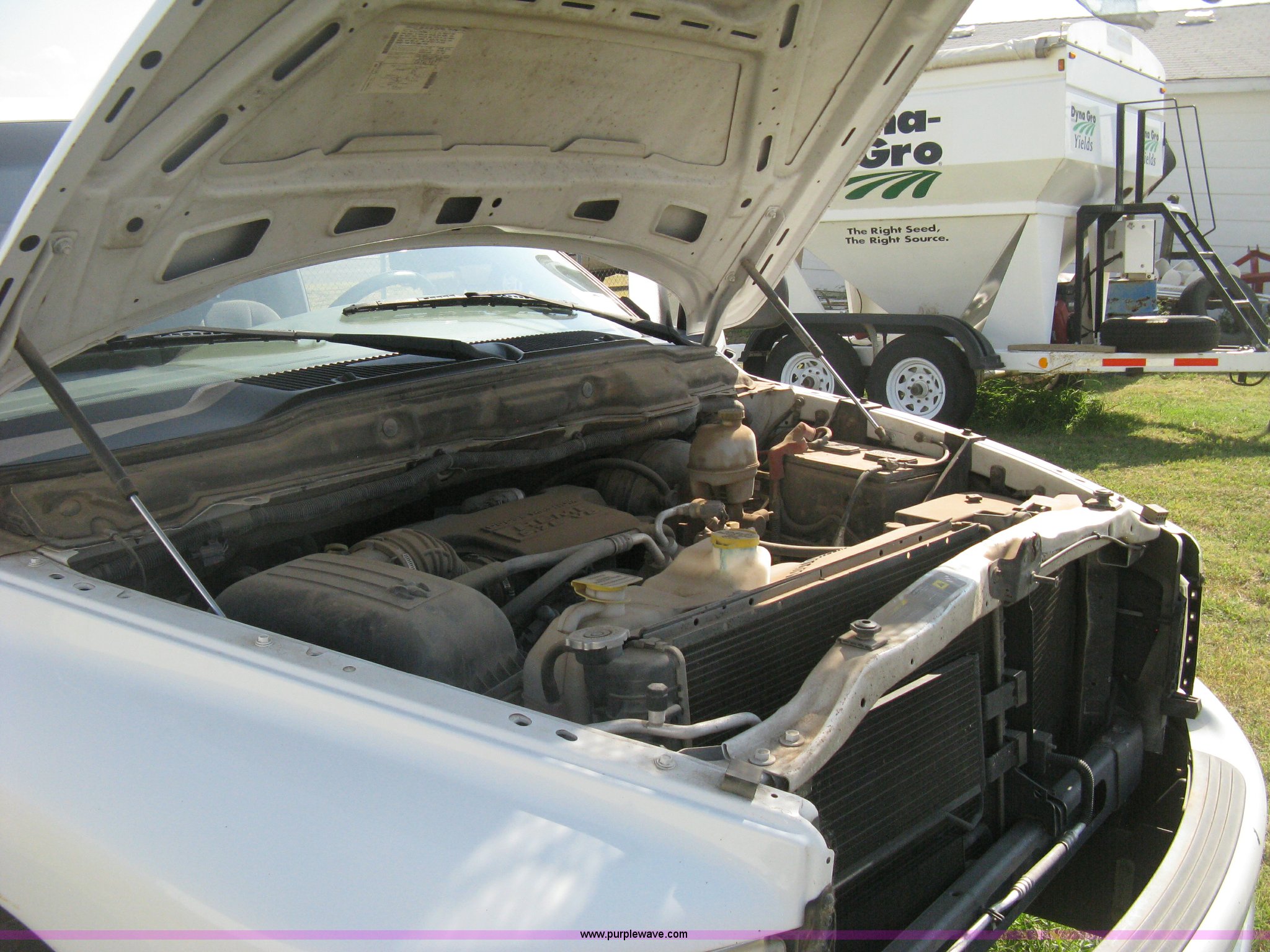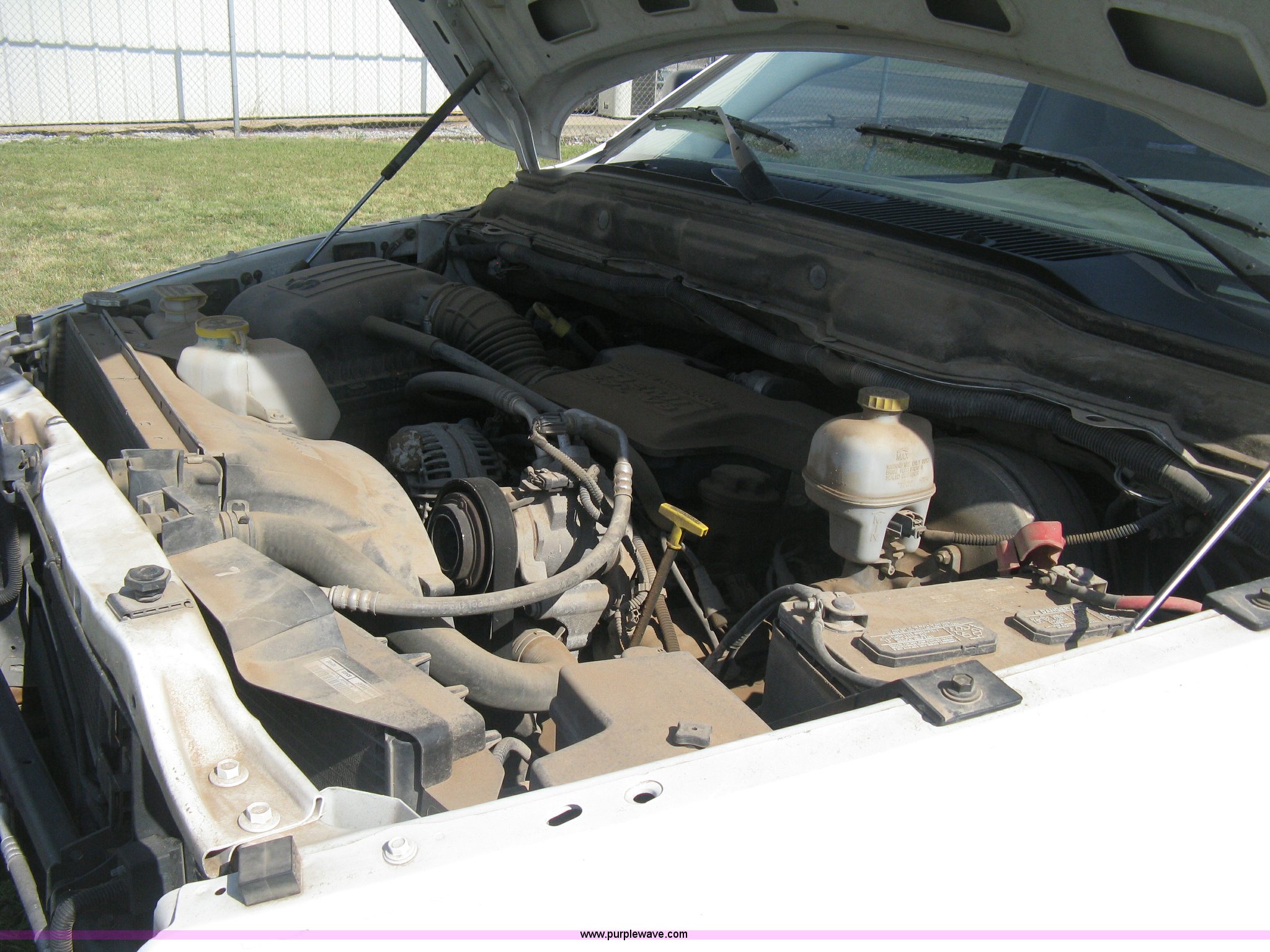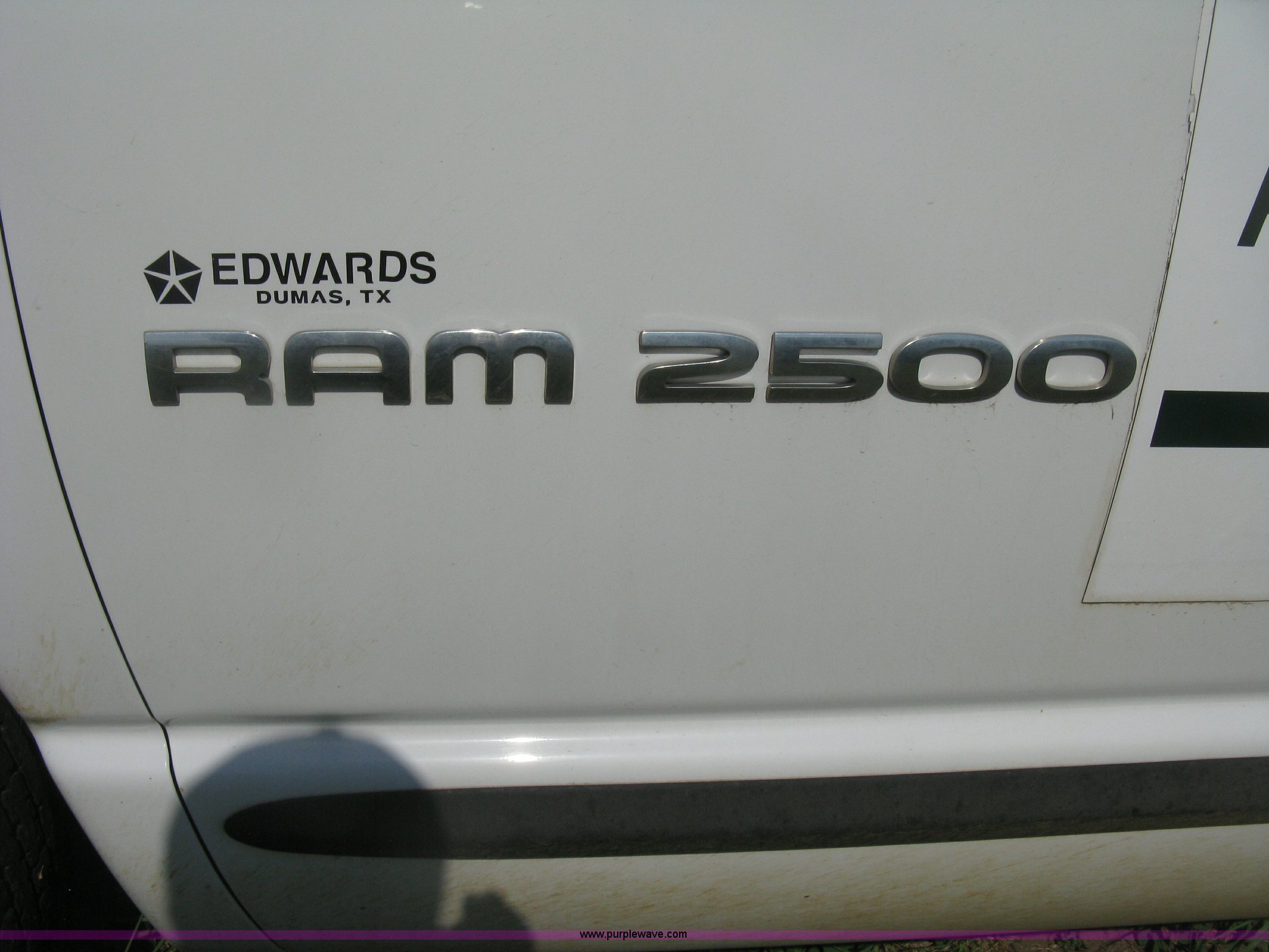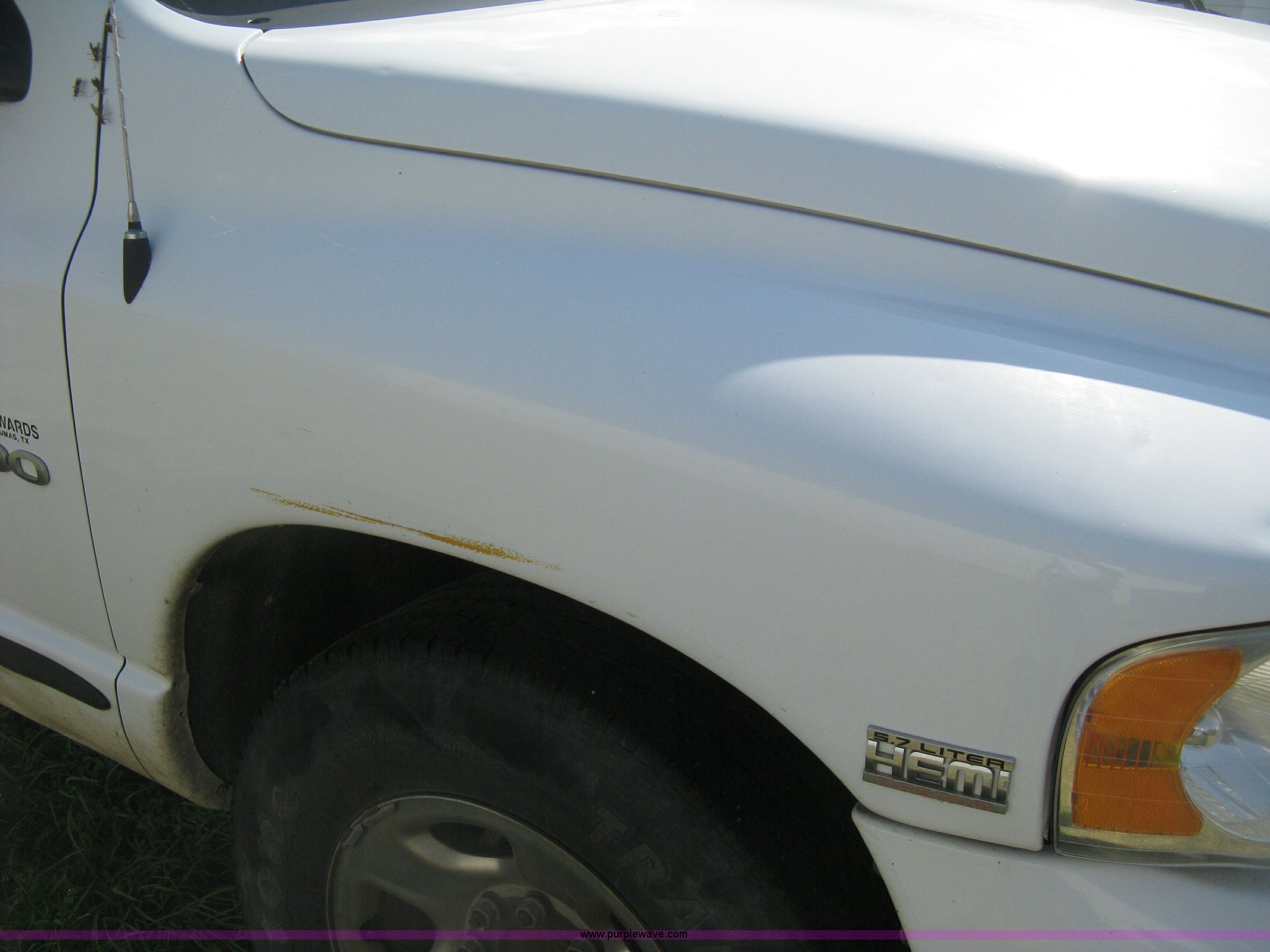 Purple Wave is selling a used Passenger Vehicle in Kansas. This item is a 2004 Dodge Ram 2500 pickup truck with the following: 260,544 miles on odometer, 5.7L V8 OHV 16V gas engine, Automatic transmission, AC and heat, Tilt, Cruise, AM/FM/CD, Power windows, locks, and mirrors, Cloth interior, Long bed, Steel headache rack and bed rails, Tommy Gate hydraulic lift gate, Steel plate in bed, Receiver hitch, Trailer wiring, Aluminum wheels, LT265/70R17 tires, Hail dents, Exterior body damage, Unit# 10797