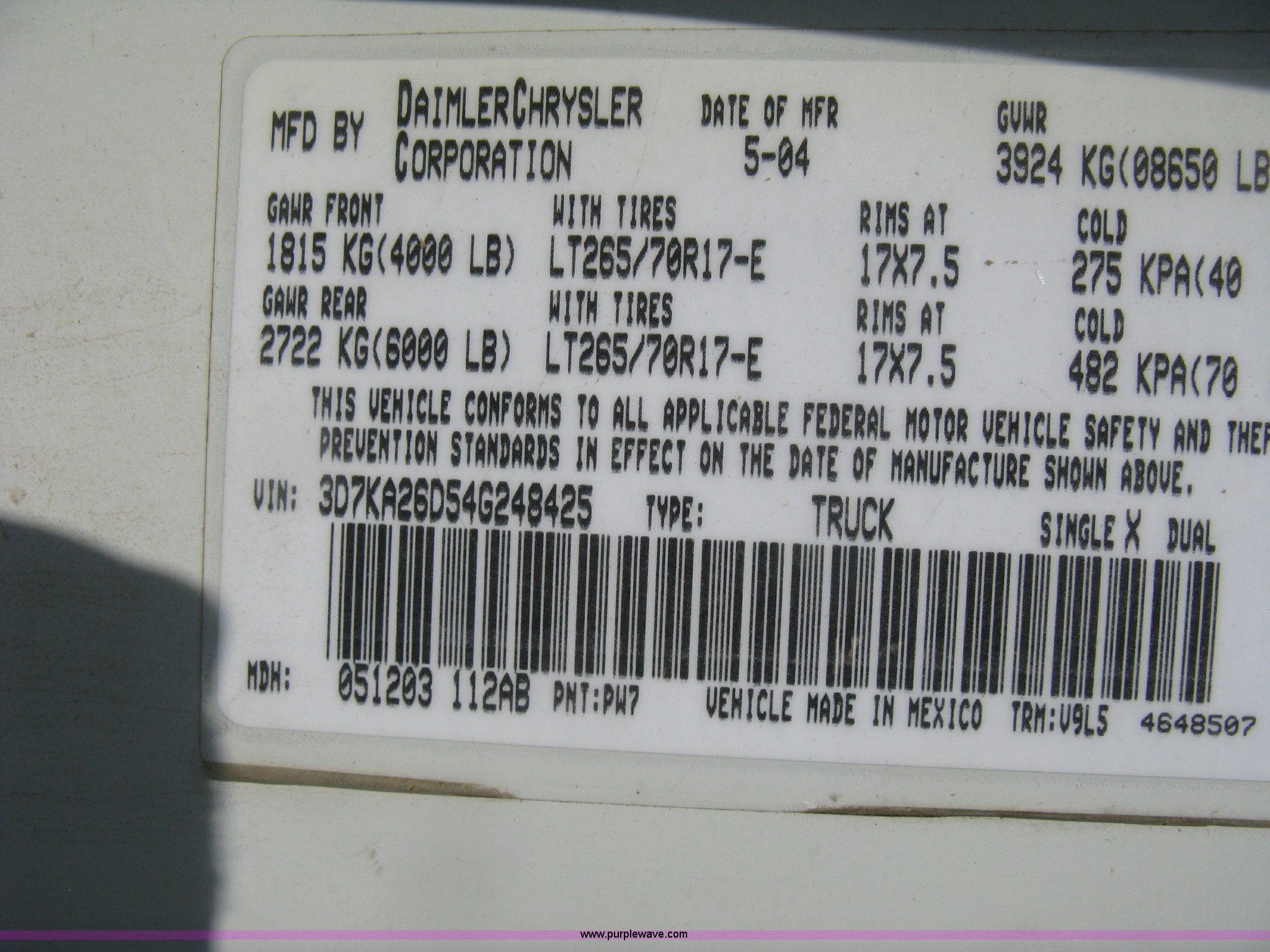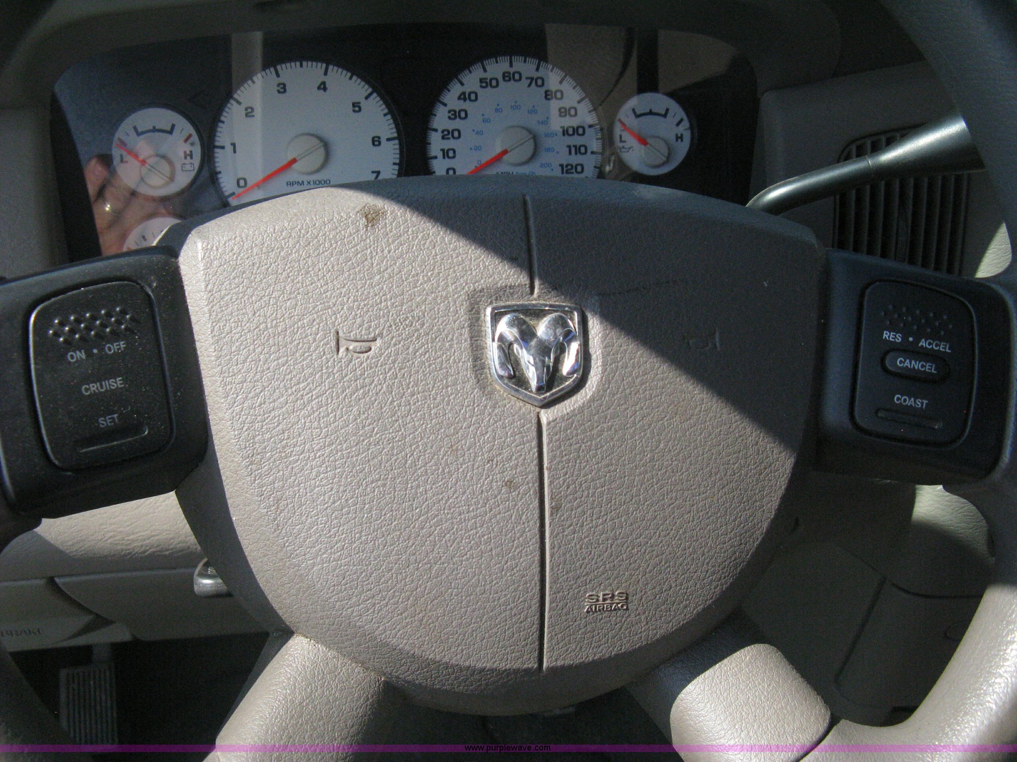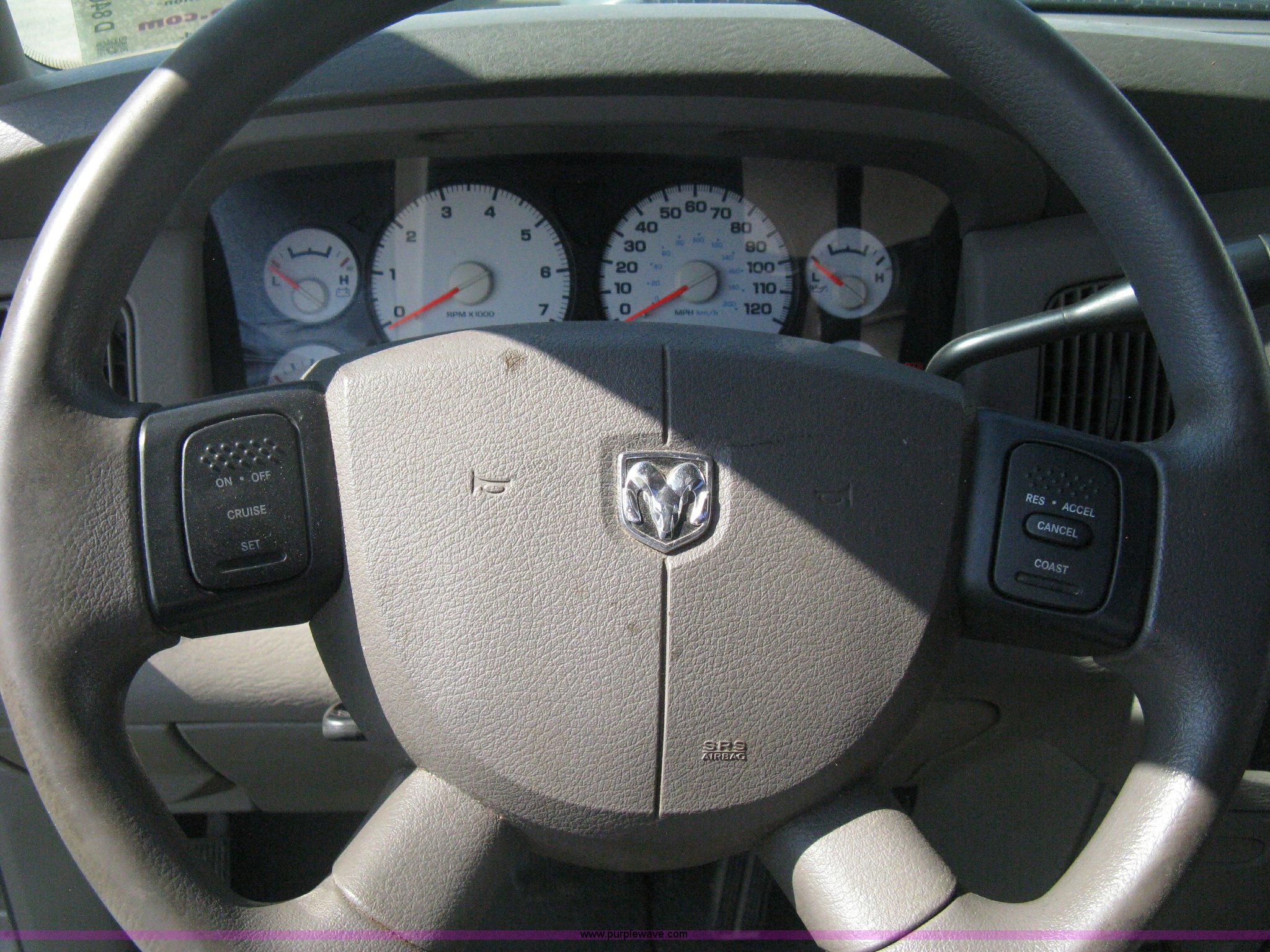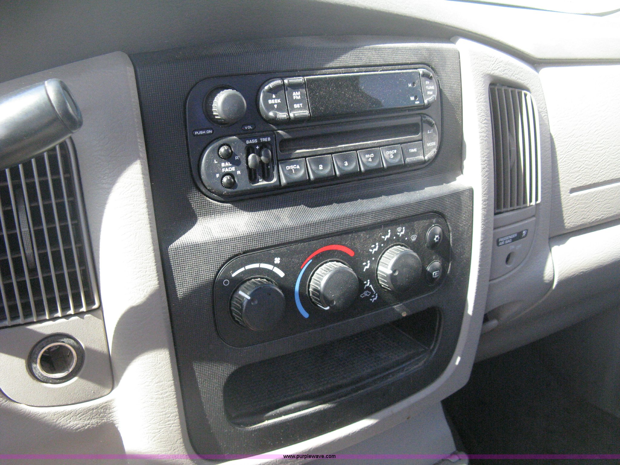 Purple Wave is selling a used Passenger Vehicle in Kansas. This item is a 2004 Dodge Ram 2500 pickup truck with the following: 260,544 miles on odometer, 5.7L V8 OHV 16V gas engine, Automatic transmission, AC and heat, Tilt, Cruise, AM/FM/CD, Power windows, locks, and mirrors, Cloth interior, Long bed, Steel headache rack and bed rails, Tommy Gate hydraulic lift gate, Steel plate in bed, Receiver hitch, Trailer wiring, Aluminum wheels, LT265/70R17 tires, Hail dents, Exterior body damage, Unit# 10797