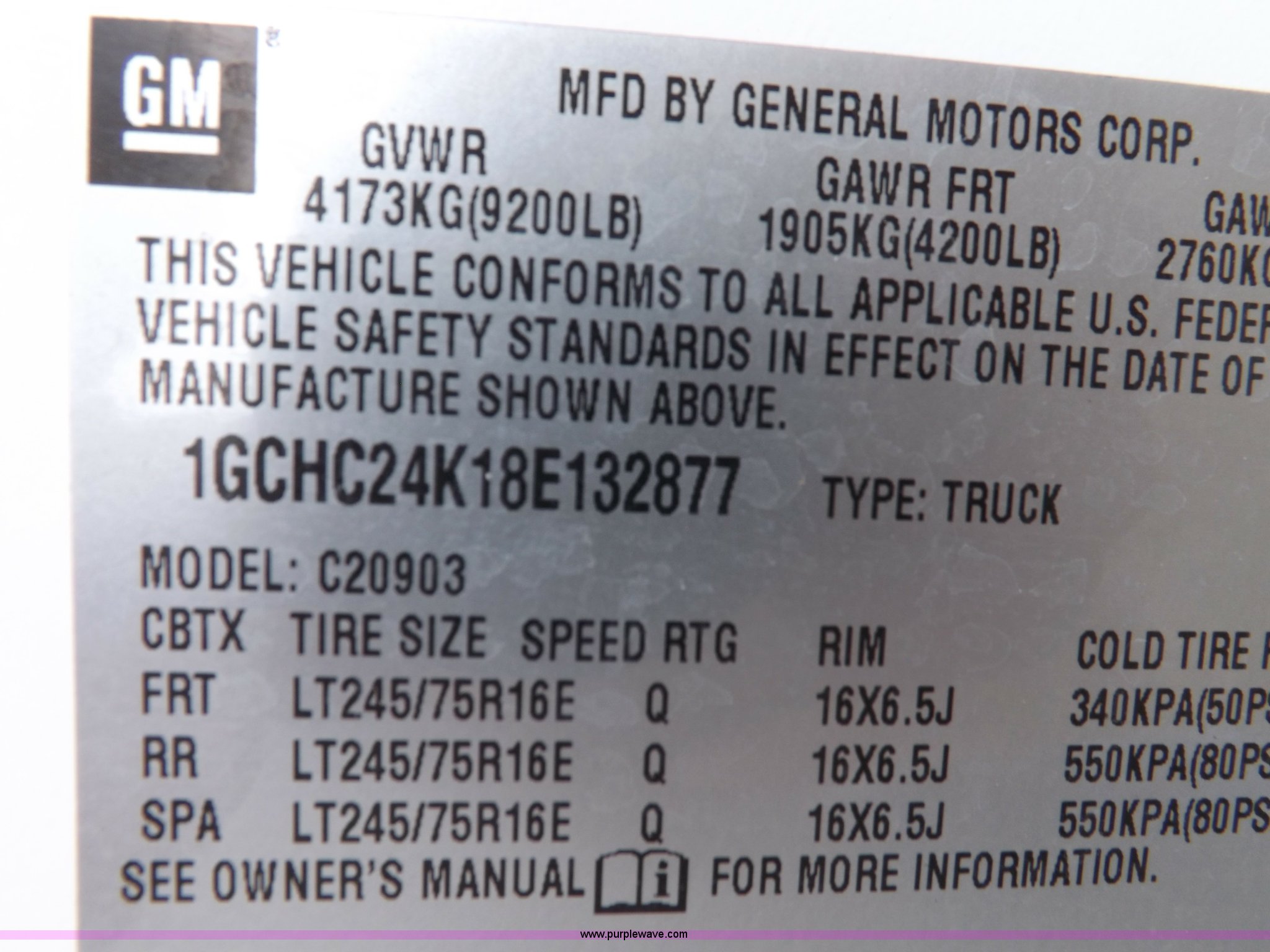 Purple Wave is selling a used 3/4 or 1 Ton Pickup or Van in Kansas. This item is a 2008 Chevrolet Silverado 2500HD pickup truck with the following: 103,467 miles on odometer, 6.0L V8 OHV 16V gas engine, Automatic transmission, AC and heat, Tilt, Cruise, AM/FM/CD, Power windows, locks, and mirrors, Cloth interior, Long bed, Receiver hitch, Trailer wiring, 245/75R16 tires, Interior/exterior cosmetic damage, Decals will be removed, Hole in driver's seat, Slight dent left rear fender, Rear bumper dented, Cracked rear view mirror, Blemish on passenger door, Unit# 40673
