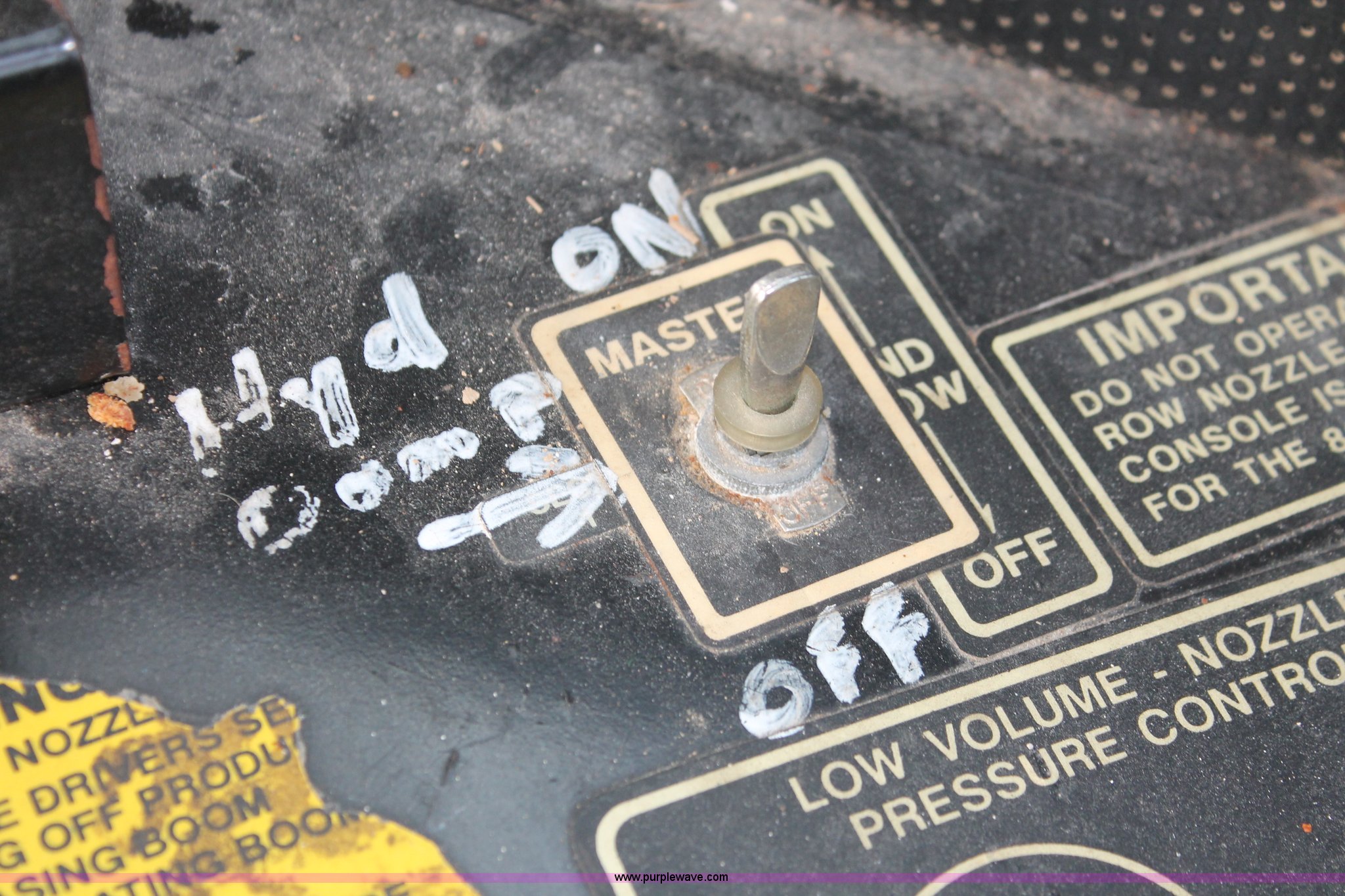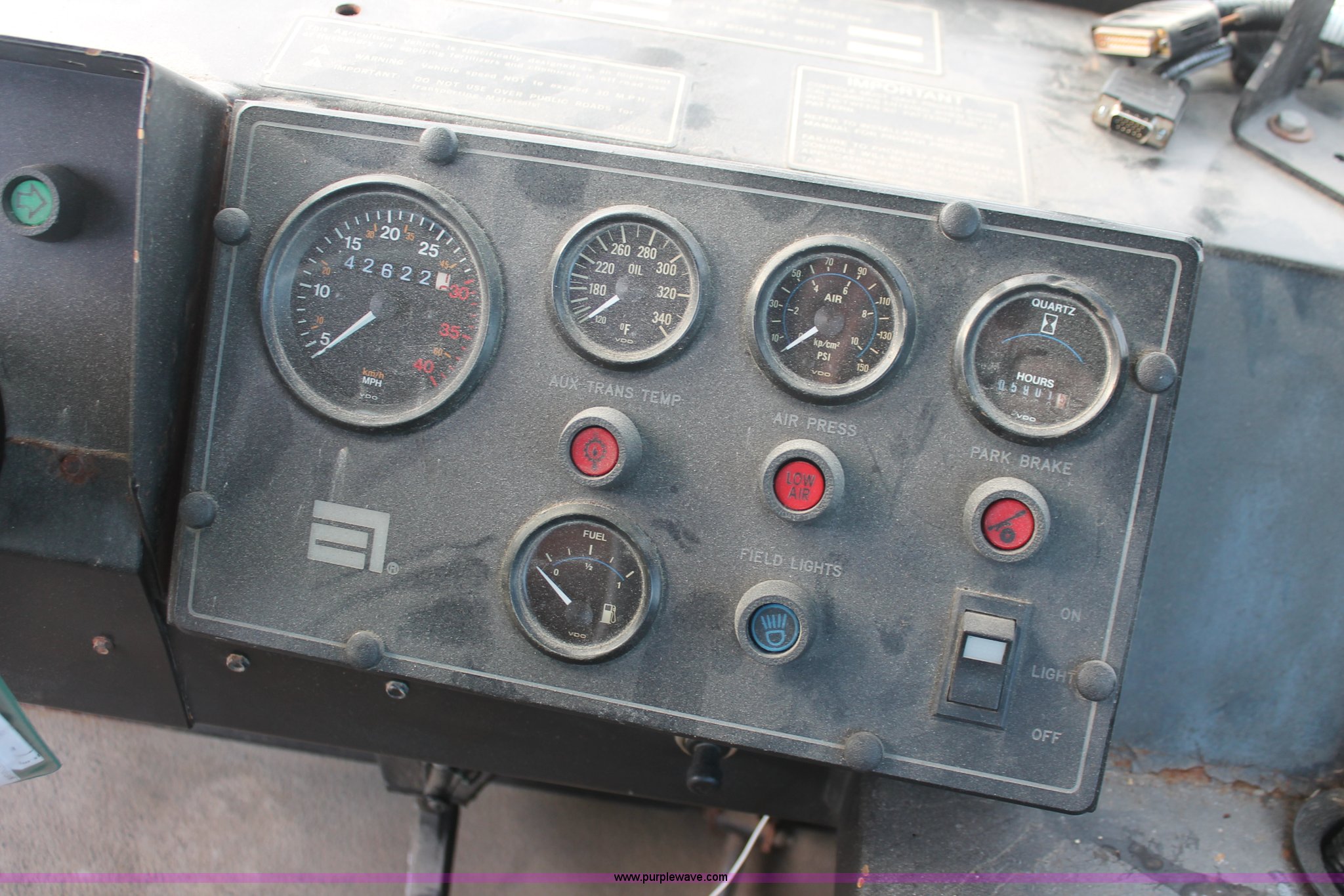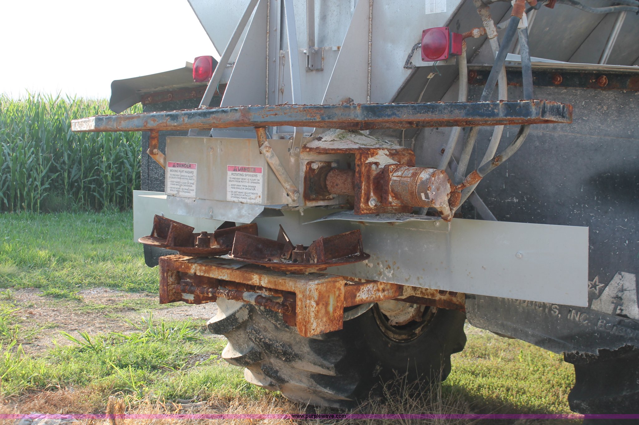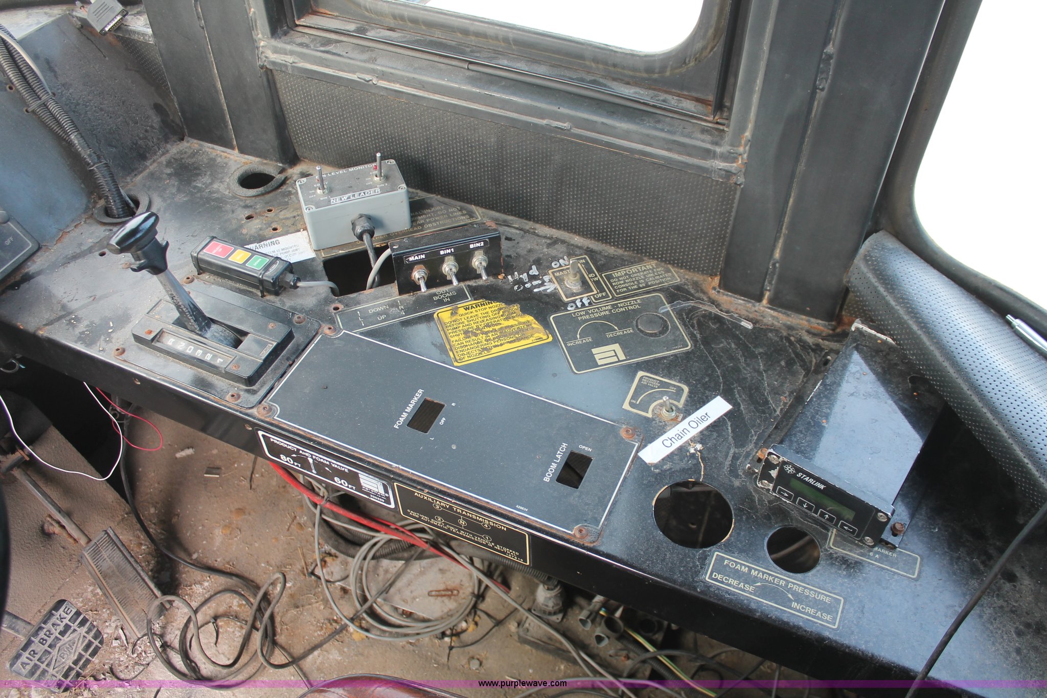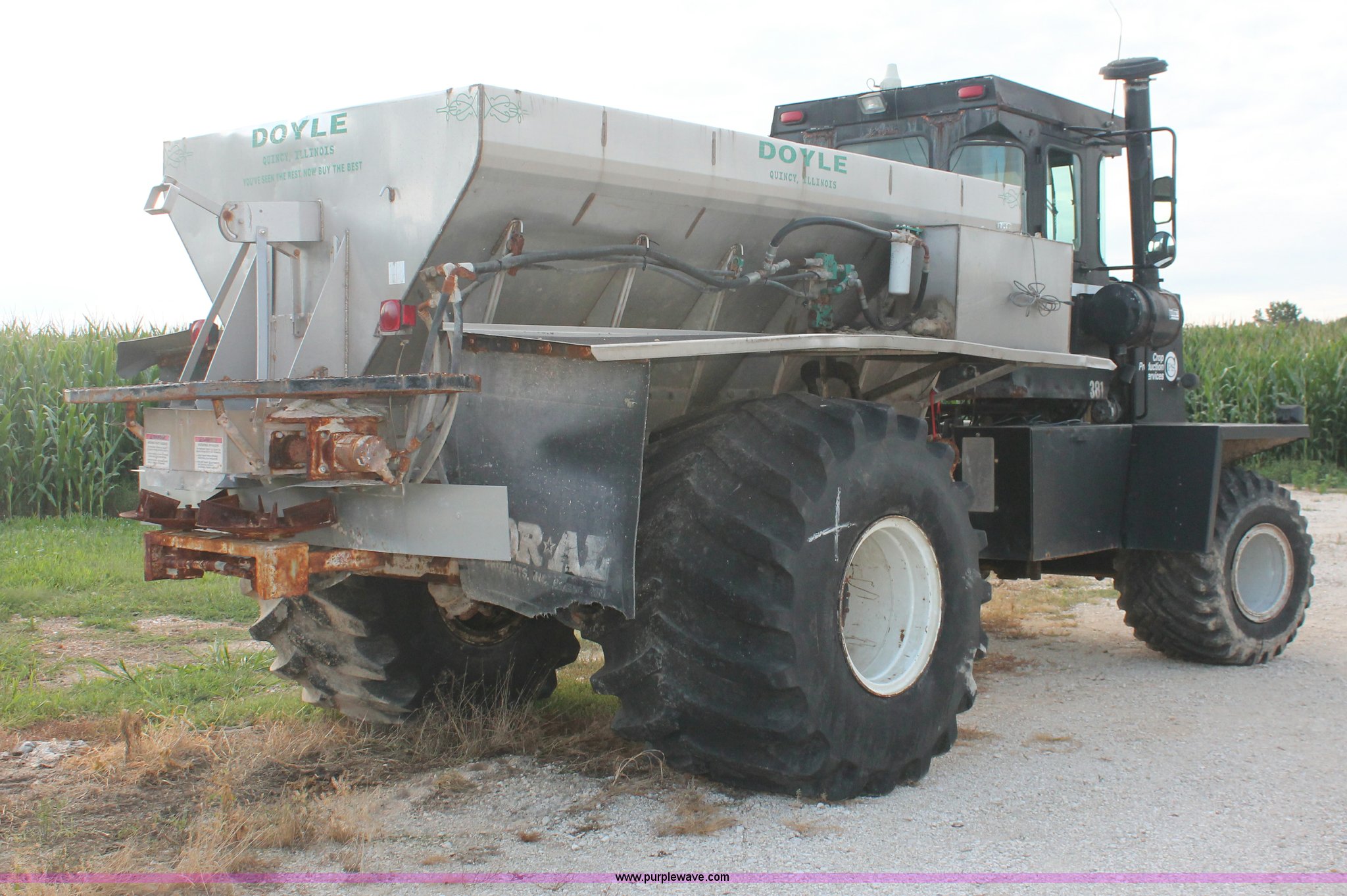 Purple Wave is selling a used Applicator Self Propelled in Indiana. This item is a 1994 Ag-Chem TerraGator 1844 spreader with the following: 42,622 miles on odometer, 5,901 hours on meter, Six cylinder diesel engine, Non-operational, Automatic transmission, Four speed auxiliary transmission, AC and heat, AM/FM, Suspension seat, Engine governor, Starlink GPS, New Leader bin level monitor, New Leader 3020 spreader bed, Stainless steel, 12'L, Eight ton capacity, 20" dual spinners, 20"W conveyor, Fimco poly tank, Volume adjustable discharge chute, PTO, Wet kit, 48x31.00-20 front tires, 66x43.00-25 rear tires, Undiagnosed engine issues, Serial 8T10794, Unit# 48818