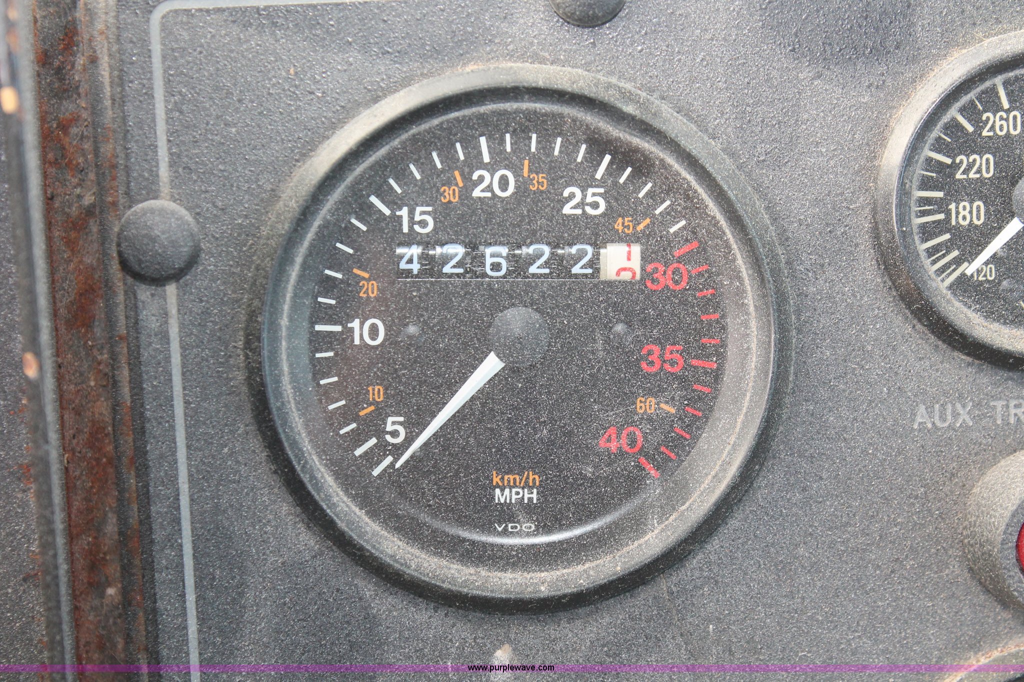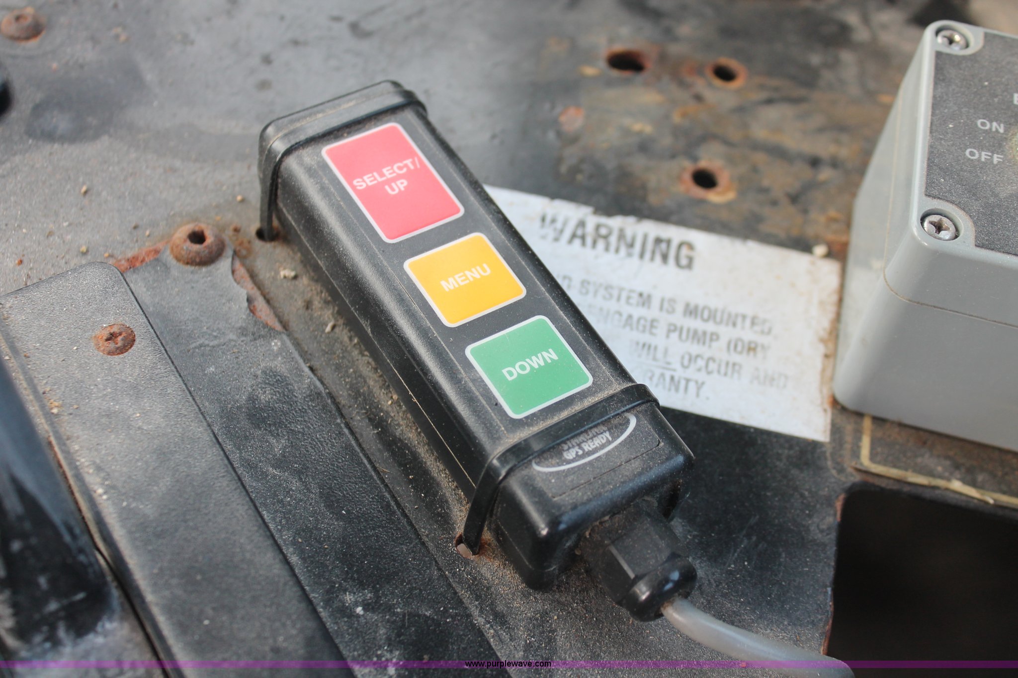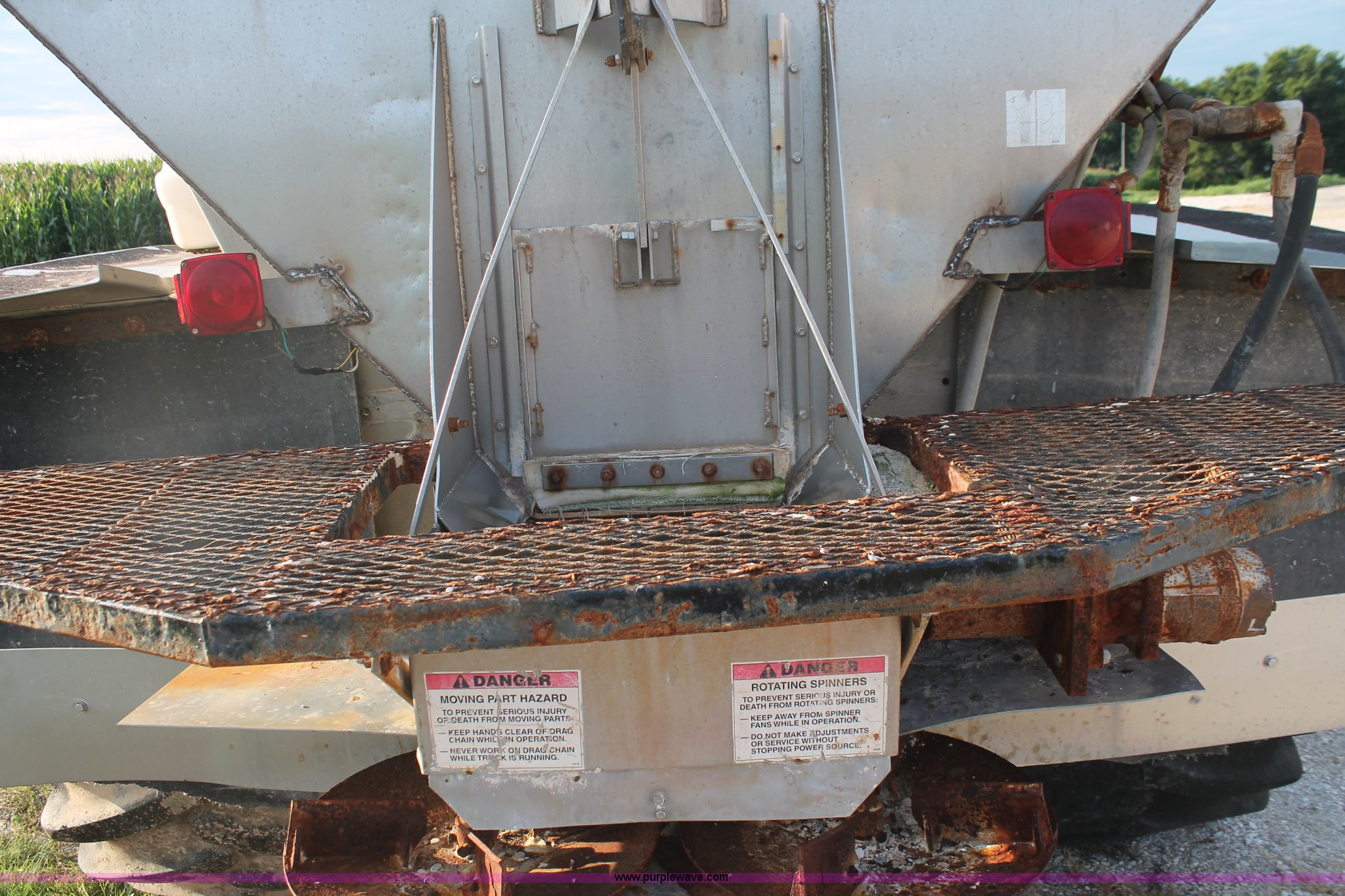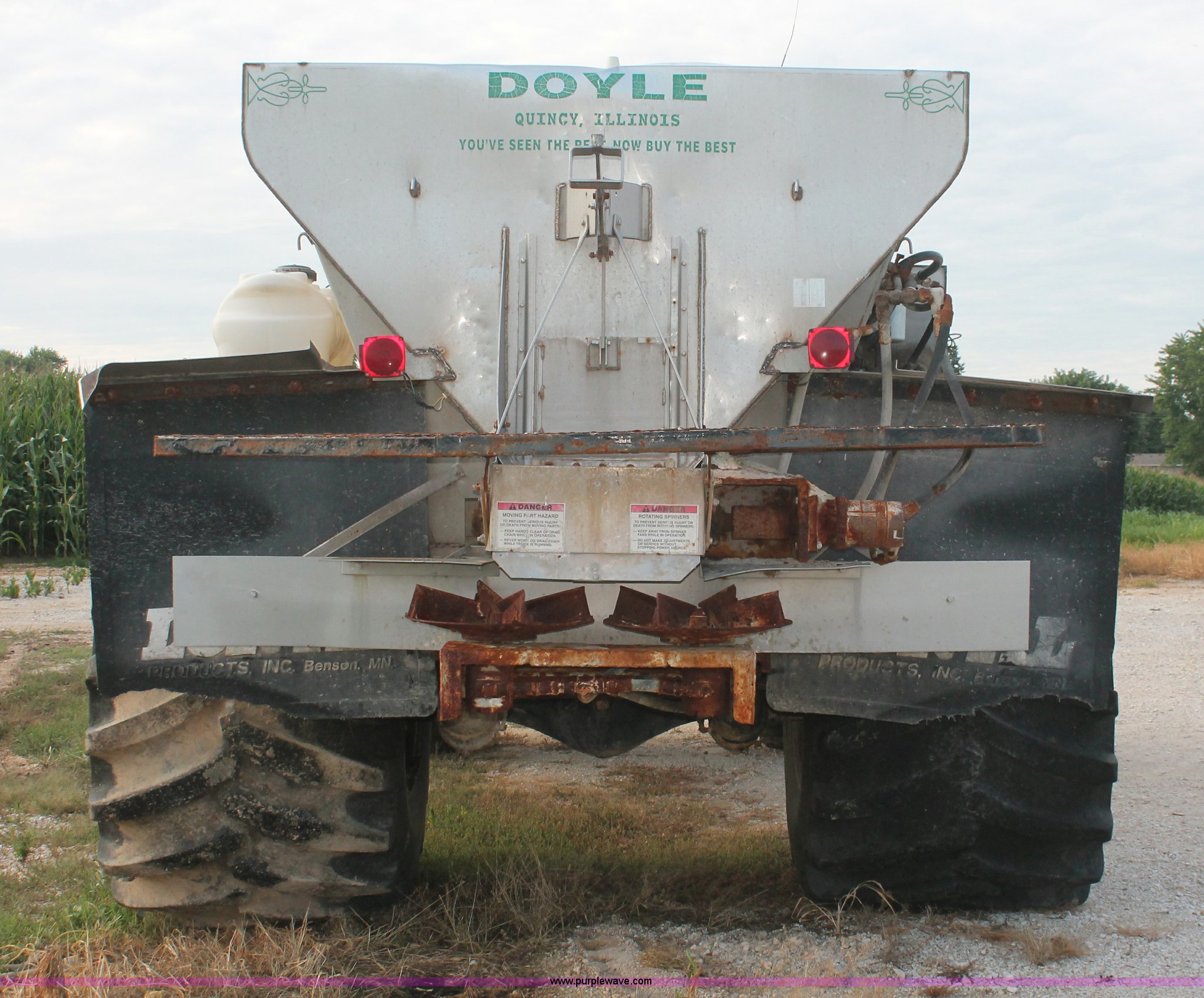 Purple Wave is selling a used Applicator Self Propelled in Indiana. This item is a 1994 Ag-Chem TerraGator 1844 spreader with the following: 42,622 miles on odometer, 5,901 hours on meter, Six cylinder diesel engine, Non-operational, Automatic transmission, Four speed auxiliary transmission, AC and heat, AM/FM, Suspension seat, Engine governor, Starlink GPS, New Leader bin level monitor, New Leader 3020 spreader bed, Stainless steel, 12'L, Eight ton capacity, 20" dual spinners, 20"W conveyor, Fimco poly tank, Volume adjustable discharge chute, PTO, Wet kit, 48x31.00-20 front tires, 66x43.00-25 rear tires, Undiagnosed engine issues, Serial 8T10794, Unit# 48818