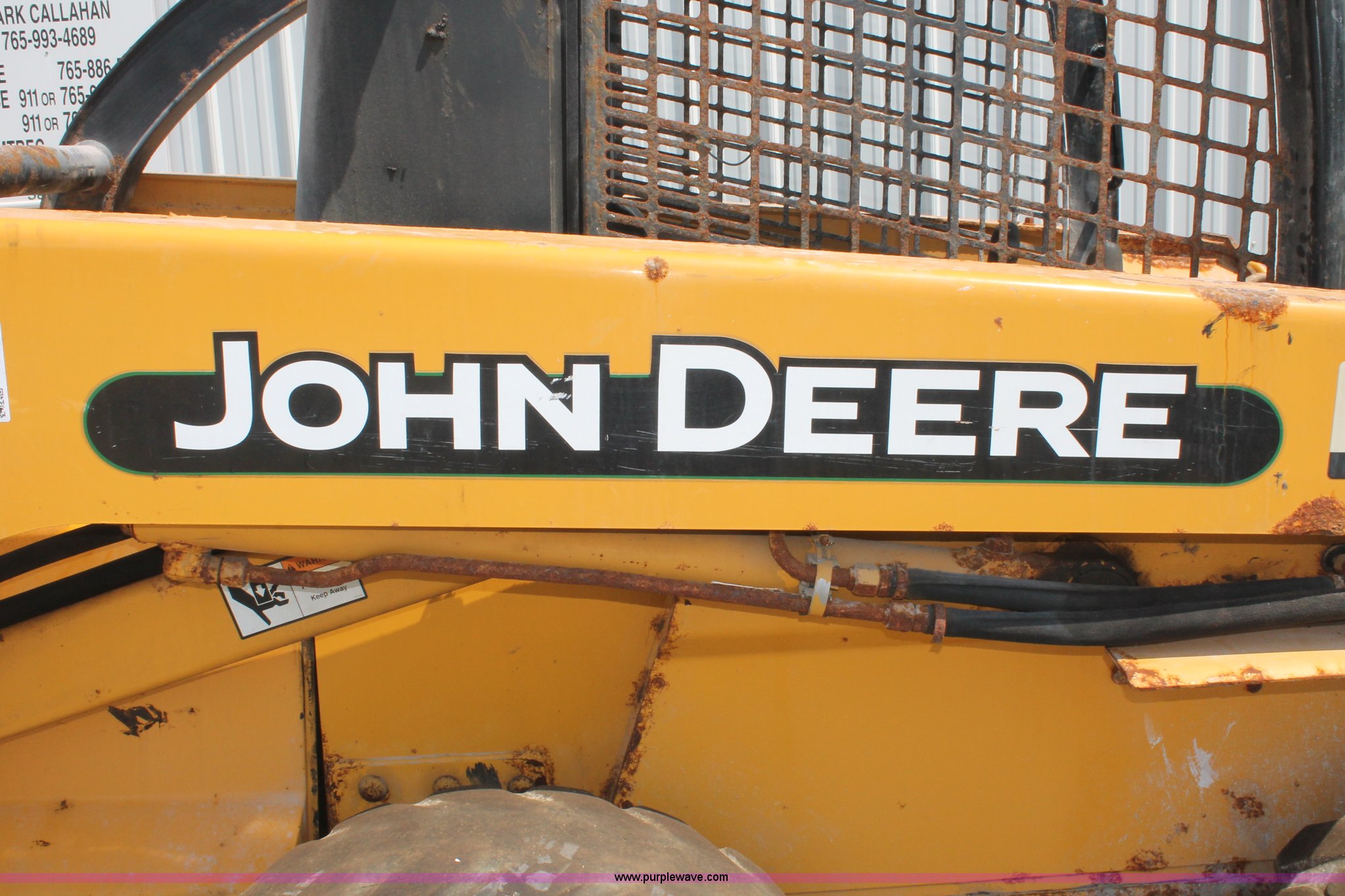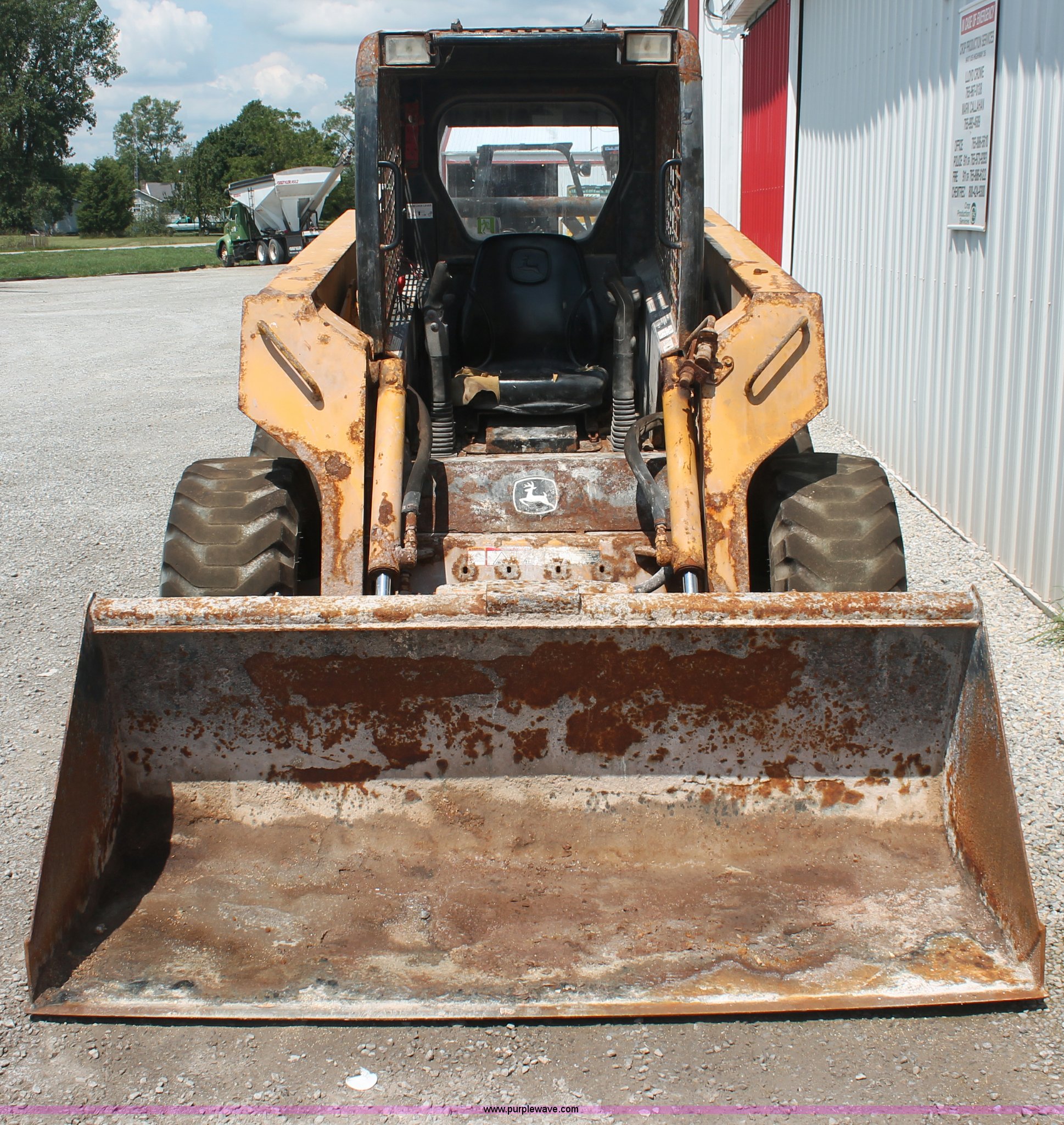 Purple Wave is selling a used Skid Steer Loader in Indiana. This item is a 2000 John Deere 260 Series II skid steer with the following: 1,749 hours on meter, John Deere four cylinder diesel engine, Two speed transmission, OROPS, Work lights, Auxiliary hydraulics, 76"W smooth edge bucket, 14-17.5NHS tires, Electric over hydraulic valve inoperable, Possible safety switch issue, Starts and idles, Does not move