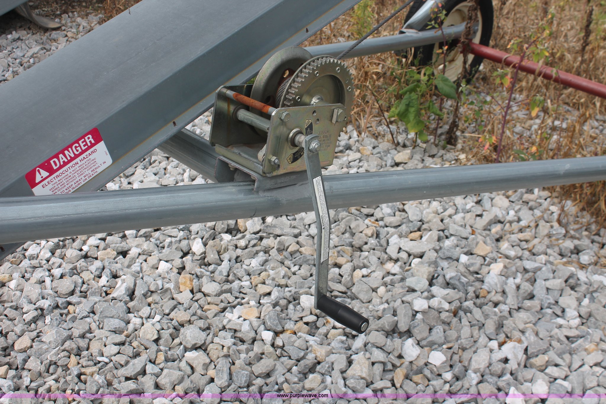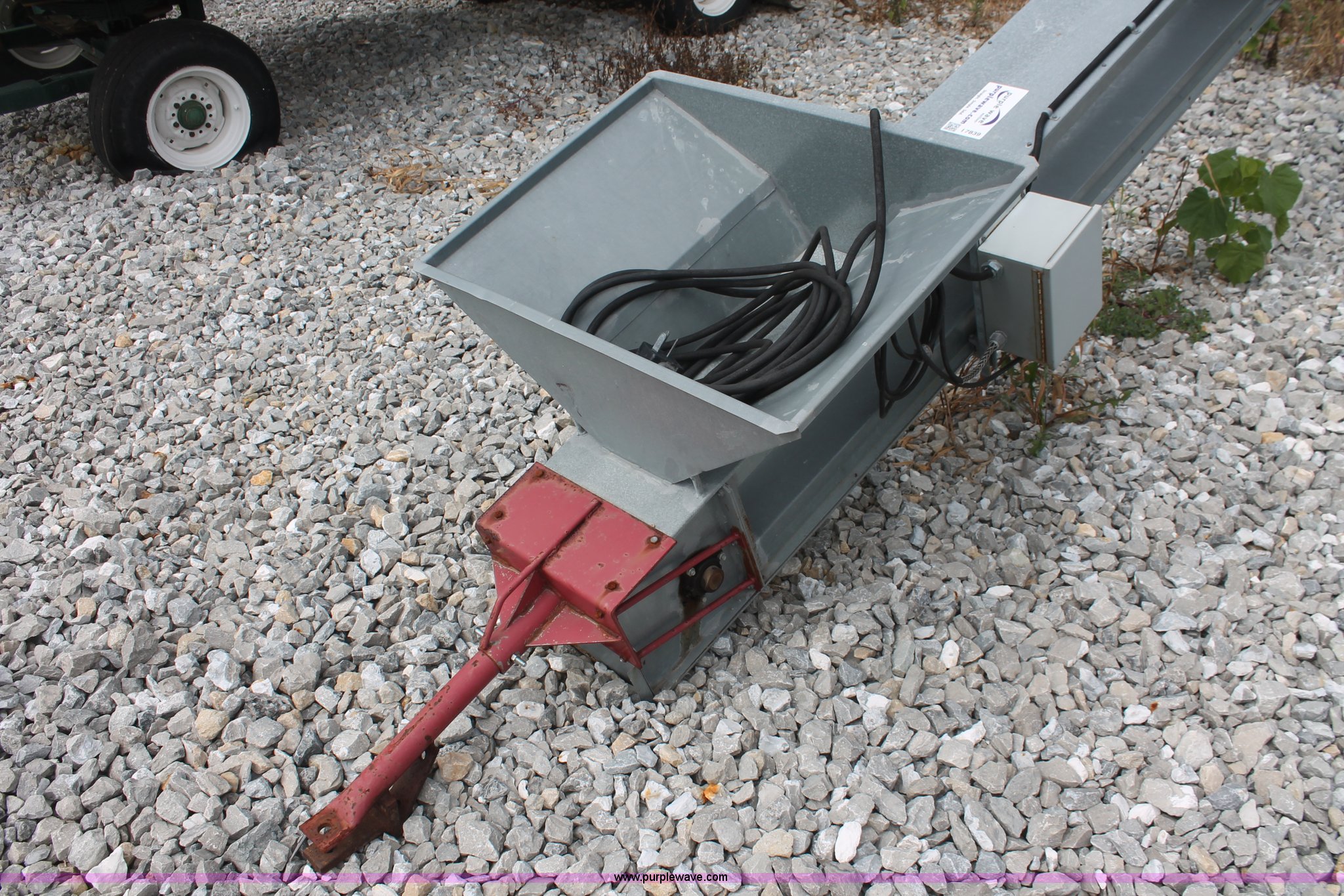 Purple Wave is selling a used Auger or Conveyor in Ohio. This item is a Cardinal BC10 seed conveyor with the following: 25'L, 32" x 24" hopper, 12"W belt, Electric motor, Start/stop toggle switch, Manual winch, Pin hitch, 195/65R16 tires, Approx. 1,000 processed rounds, Serial 447