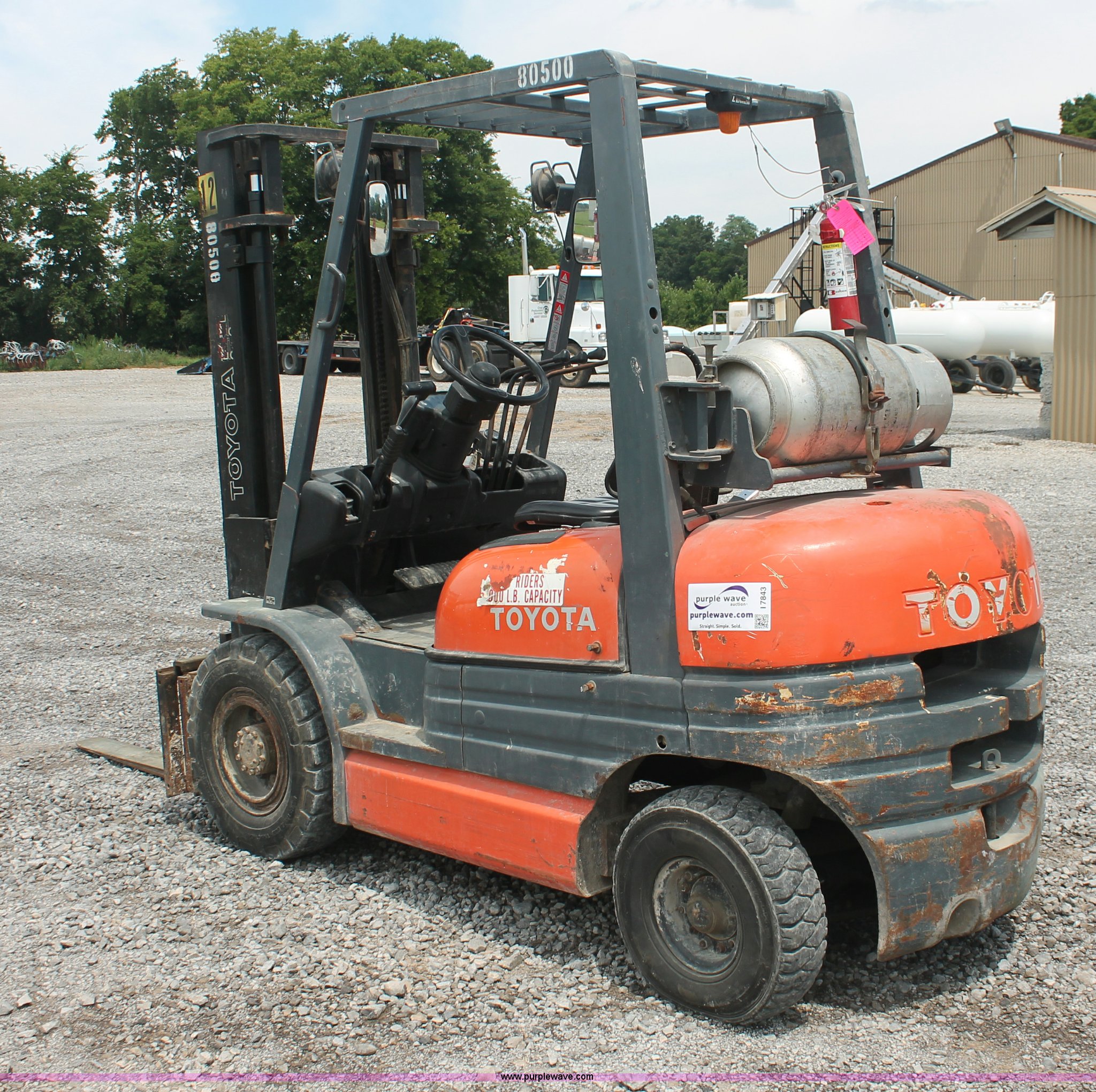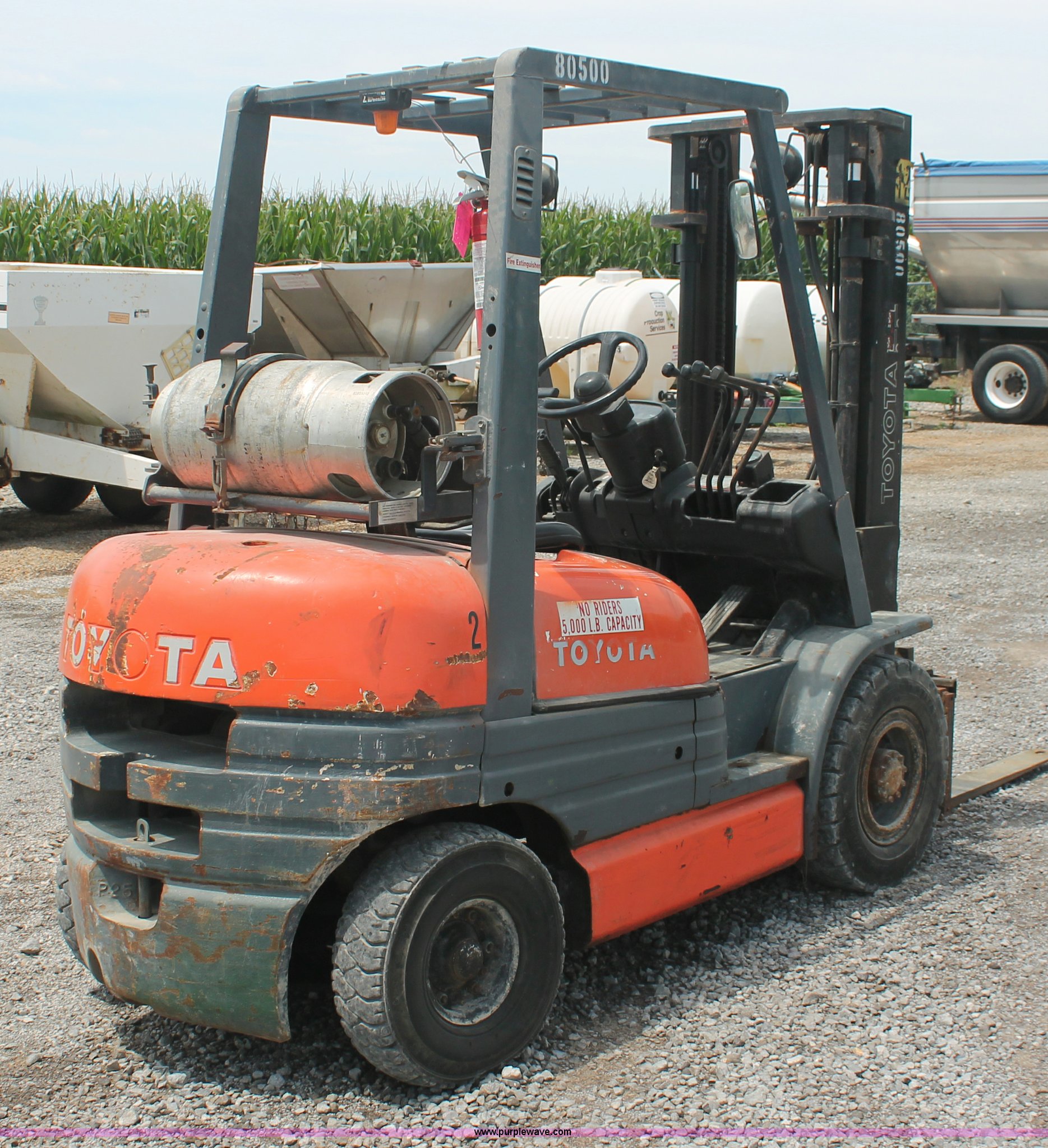 Take a look at this used Toyota 42 forklift being sold on August 27th, 2013 in the SOLD! August 27 Crop Production Services Auction made by Toyota. Take a look at all of the item information below or take a look at similar auctions for Cushion Tire or Pneumatic Forklift.