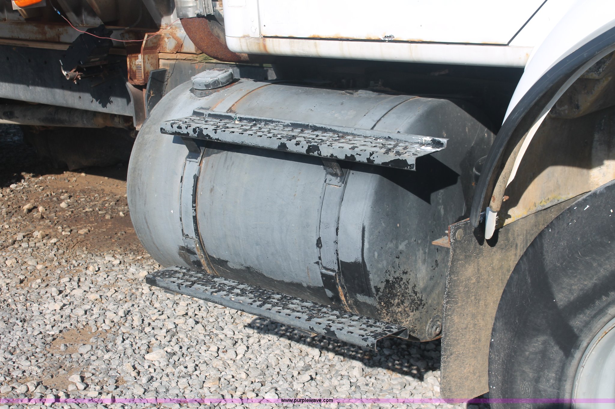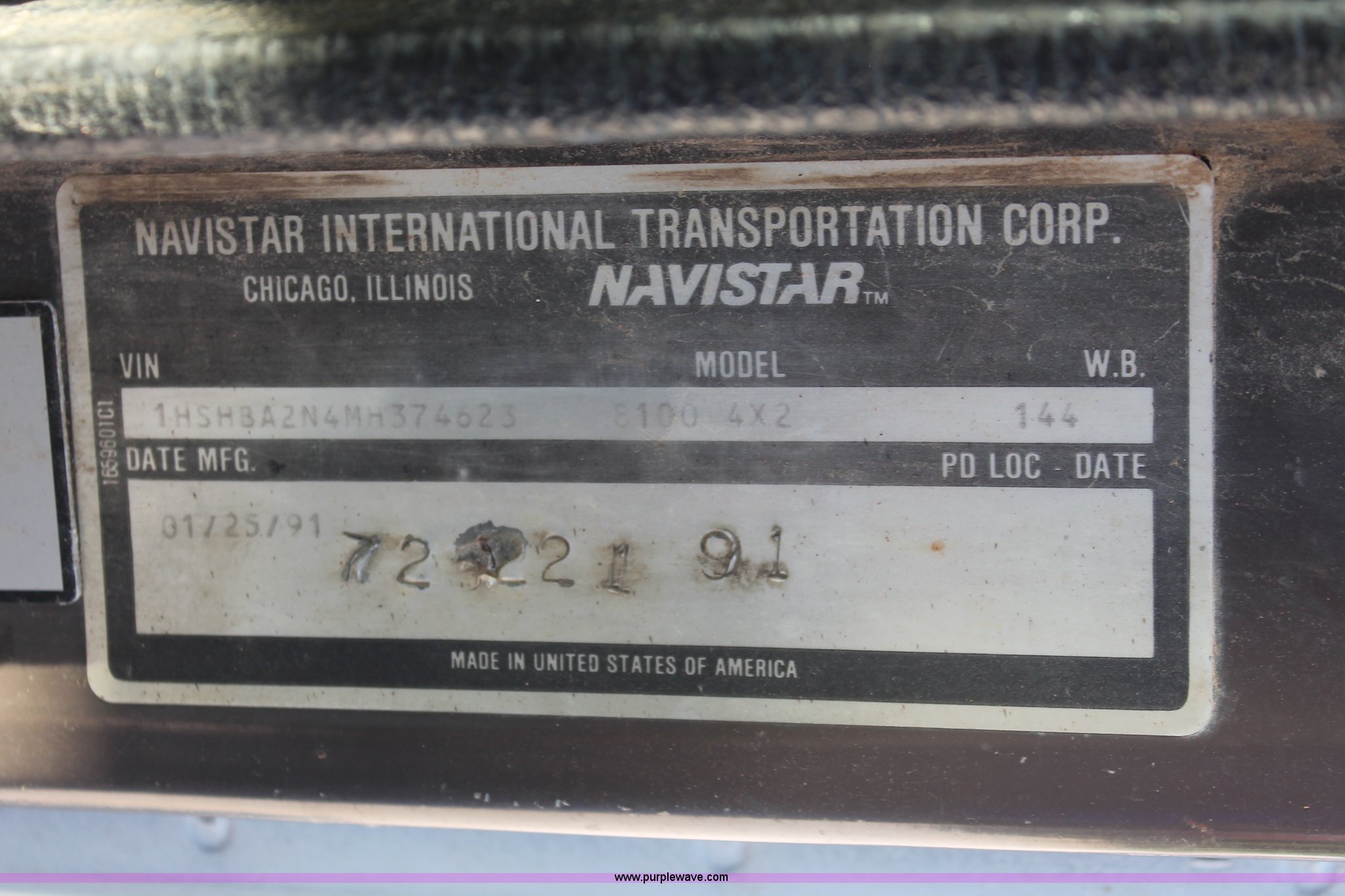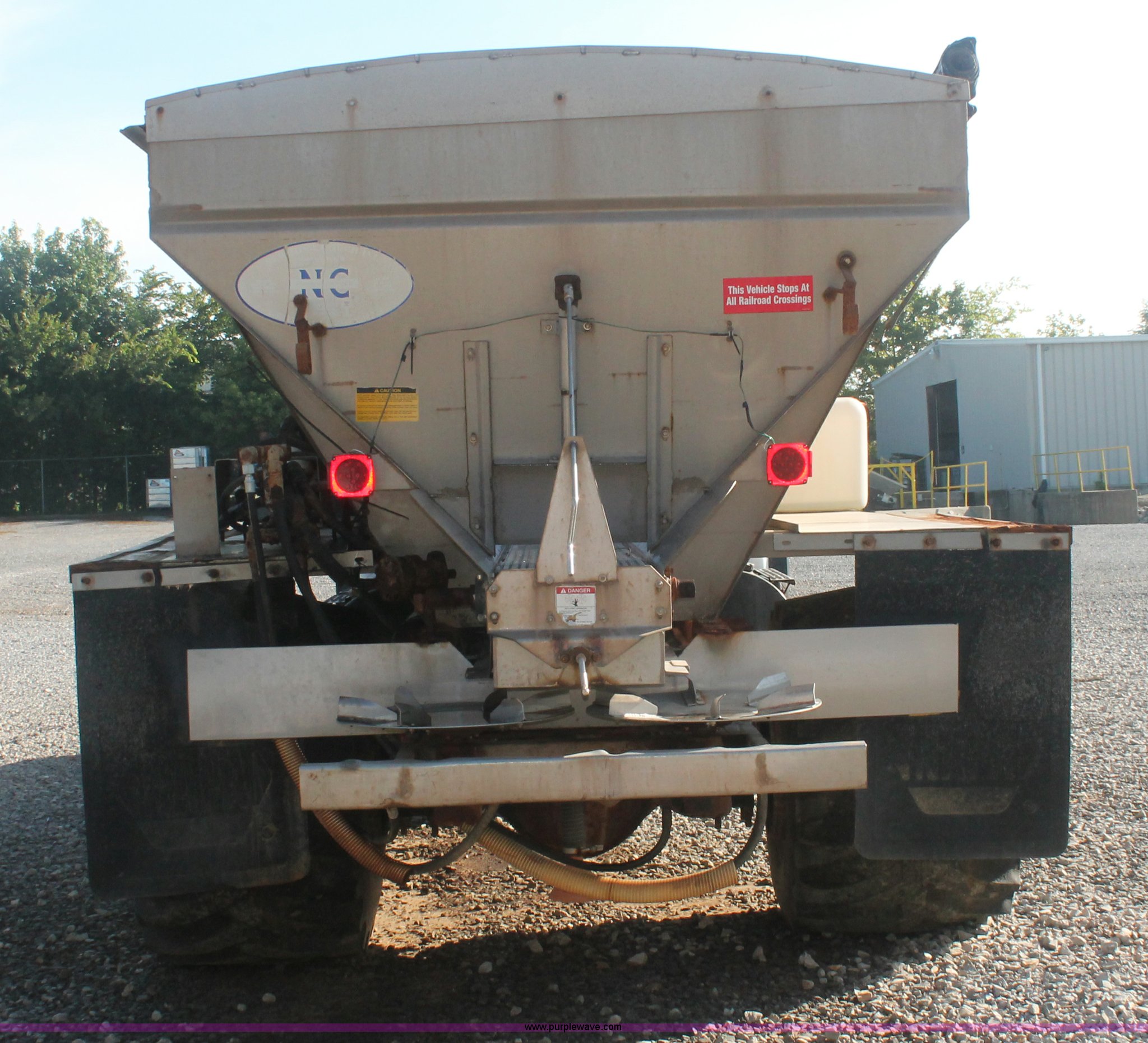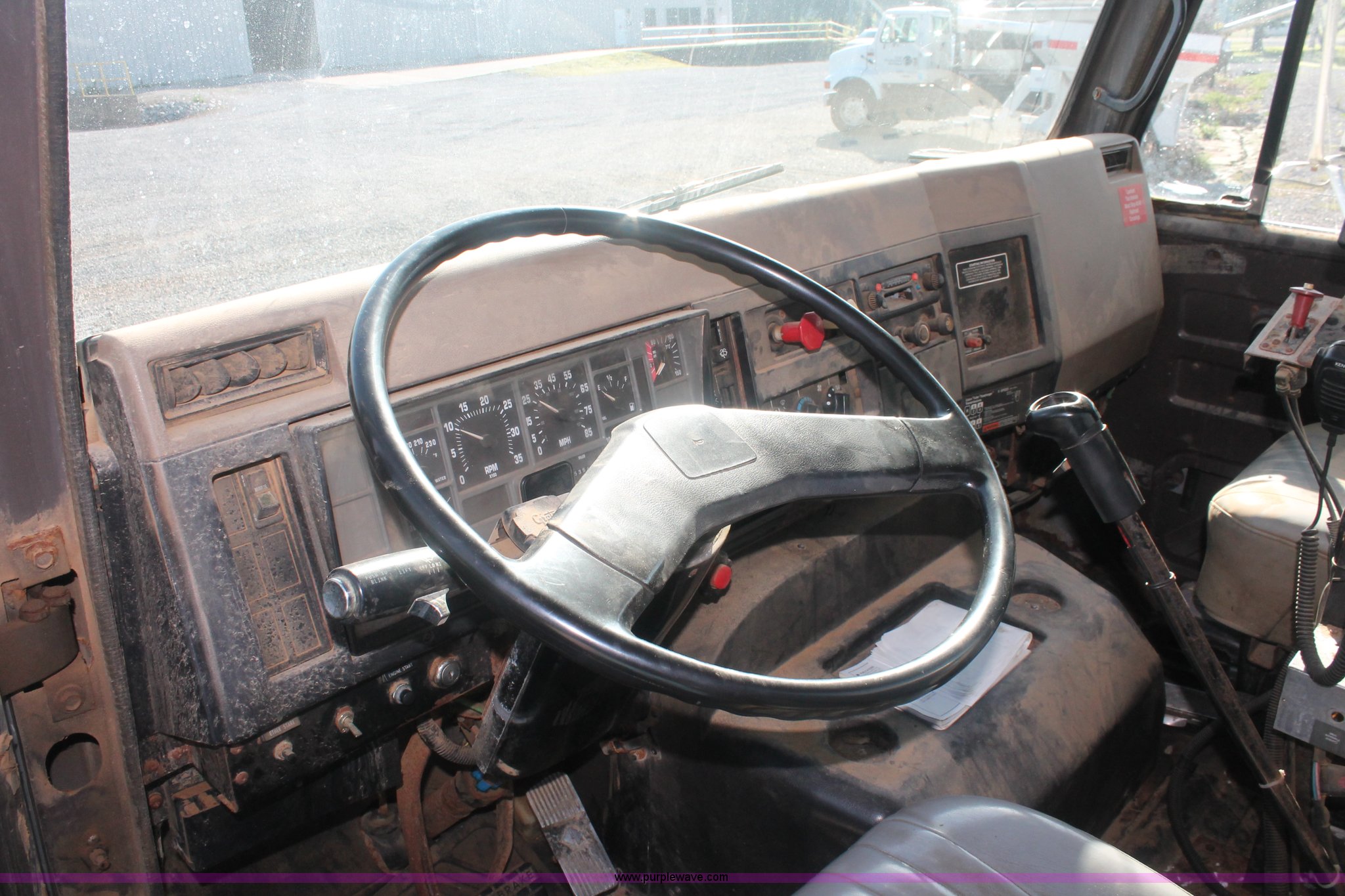 Purple Wave is selling a used Applicator Truck in Tennessee. This item is a 1991 International 8100 spreader truck with the following: 53,540 miles on odometer, Cummins L10 10.0L L6 diesel engine, Eaton Fuller Road Ranger nine speed manual transmission, Heat, AM/FM/cassette, Kenwood CB radio, Mid-Tech ARC-6000 automatic rate controller, Newton Crouch stainless steel spreader bed, Dual spinners, 16" diameter chain linked conveyor, Volume adjustable discharge chute, Rollover tarp, Block heater, Dual fuel tanks, Single rear exhaust stack, PTO, Wet kit, Spring suspension, Air brakes, 204" wheelbase, 385/85R22.5 front tires, 48x31.00-20 rear tires, GVWR 32,000 lbs, FAWR 12,000 lbs, RAWR 20,000 lbs, Weak battery, Unit# 22023