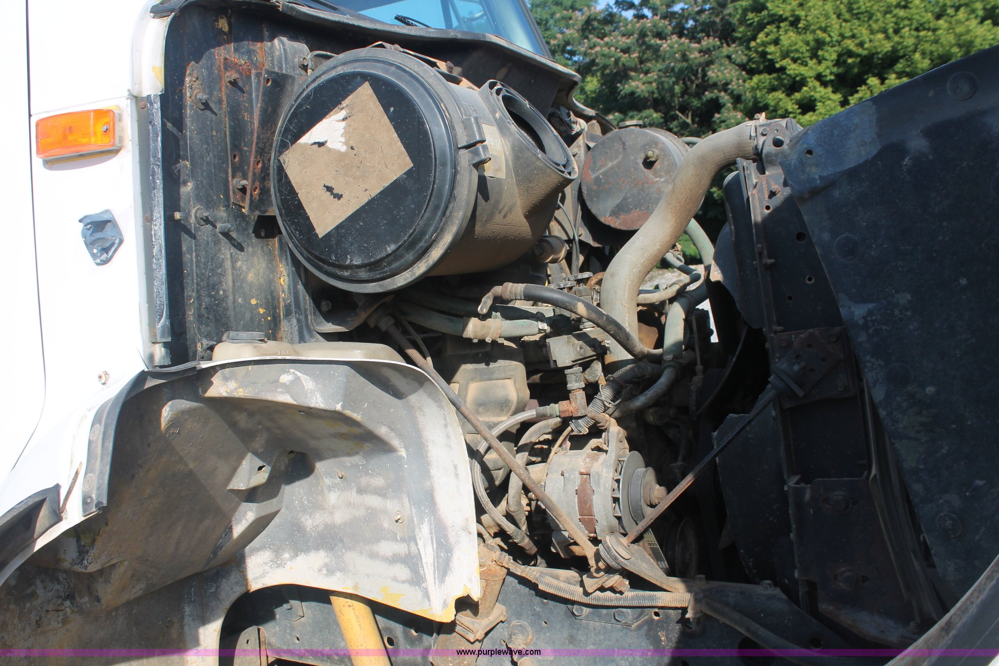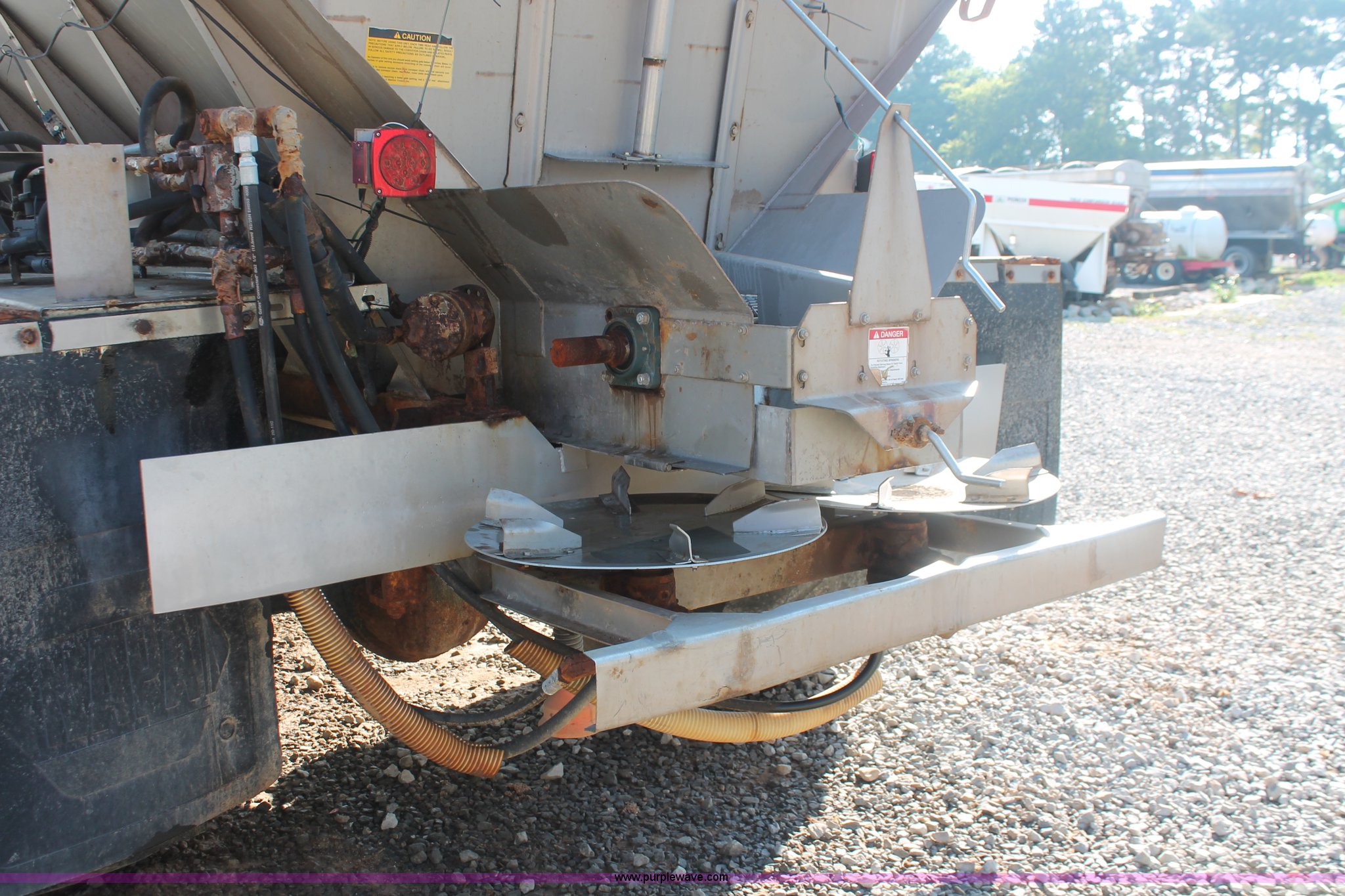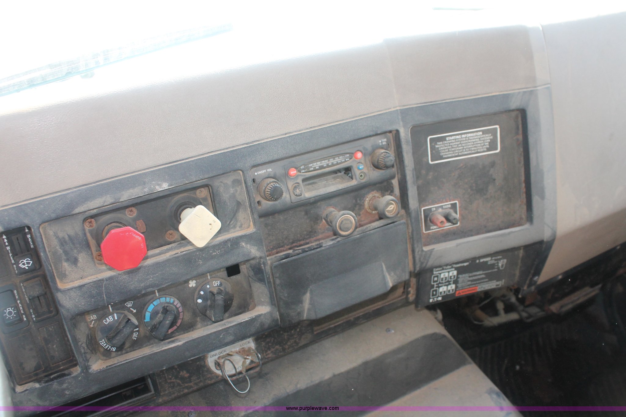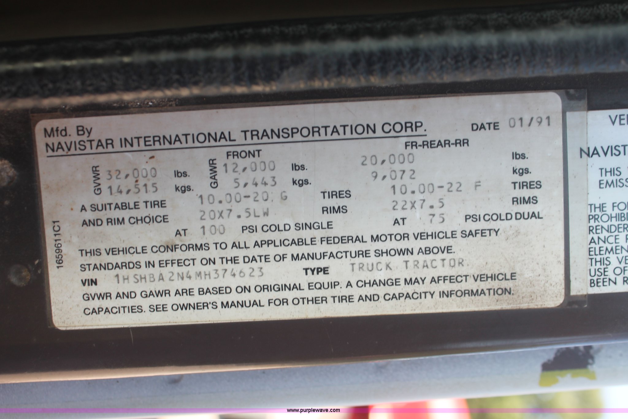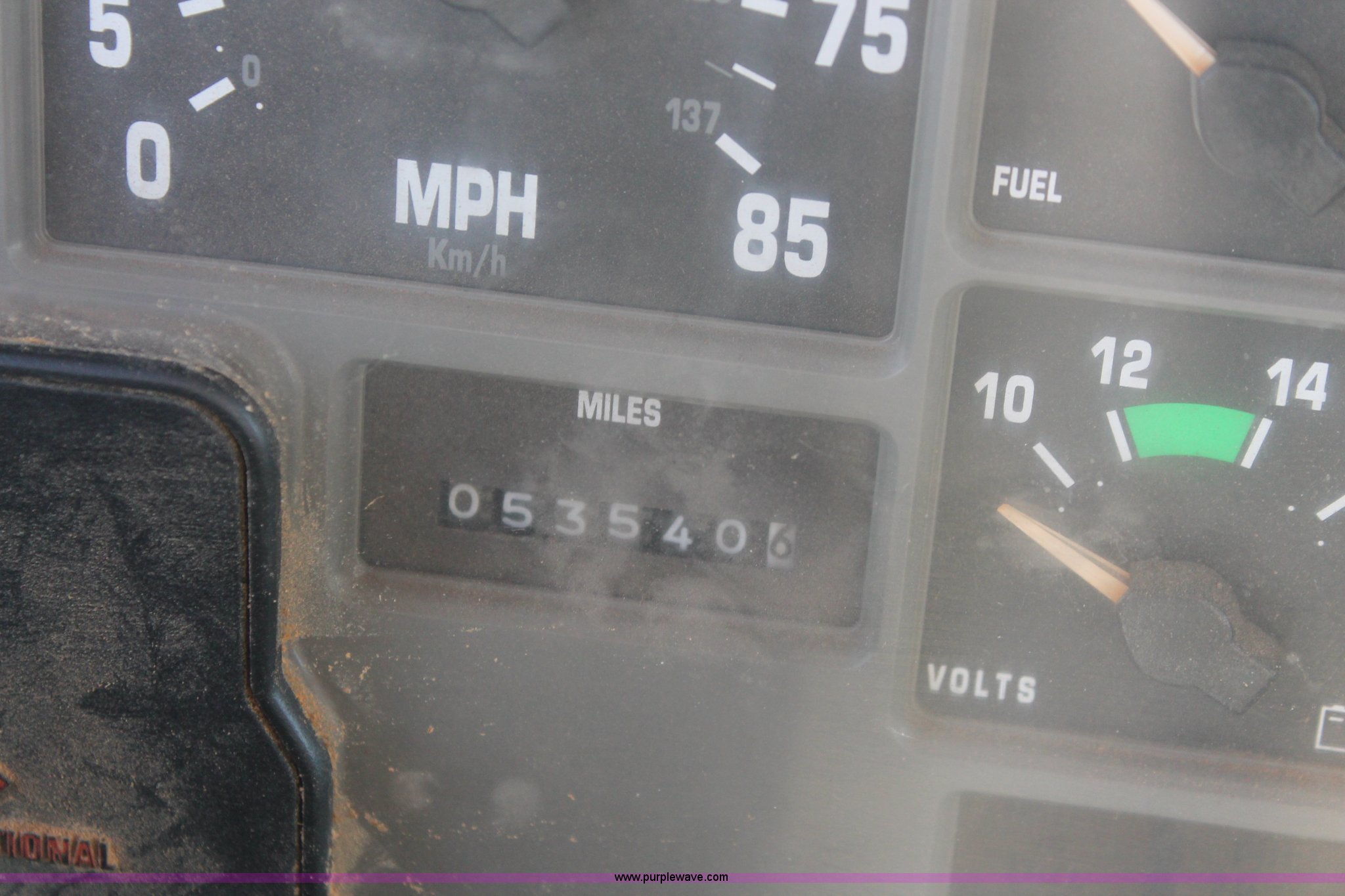 Purple Wave is selling a used Applicator Truck in Tennessee. This item is a 1991 International 8100 spreader truck with the following: 53,540 miles on odometer, Cummins L10 10.0L L6 diesel engine, Eaton Fuller Road Ranger nine speed manual transmission, Heat, AM/FM/cassette, Kenwood CB radio, Mid-Tech ARC-6000 automatic rate controller, Newton Crouch stainless steel spreader bed, Dual spinners, 16" diameter chain linked conveyor, Volume adjustable discharge chute, Rollover tarp, Block heater, Dual fuel tanks, Single rear exhaust stack, PTO, Wet kit, Spring suspension, Air brakes, 204" wheelbase, 385/85R22.5 front tires, 48x31.00-20 rear tires, GVWR 32,000 lbs, FAWR 12,000 lbs, RAWR 20,000 lbs, Weak battery, Unit# 22023