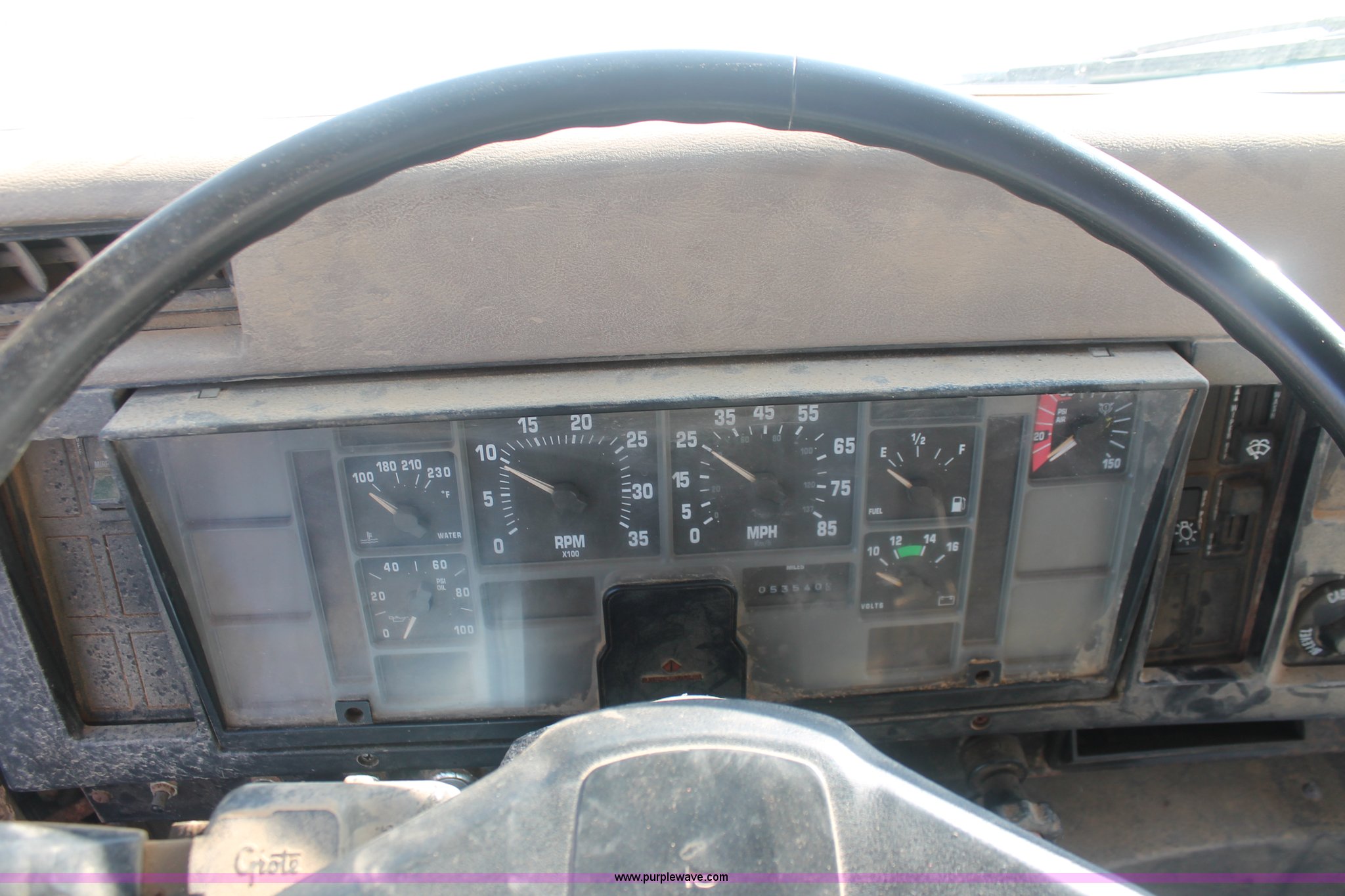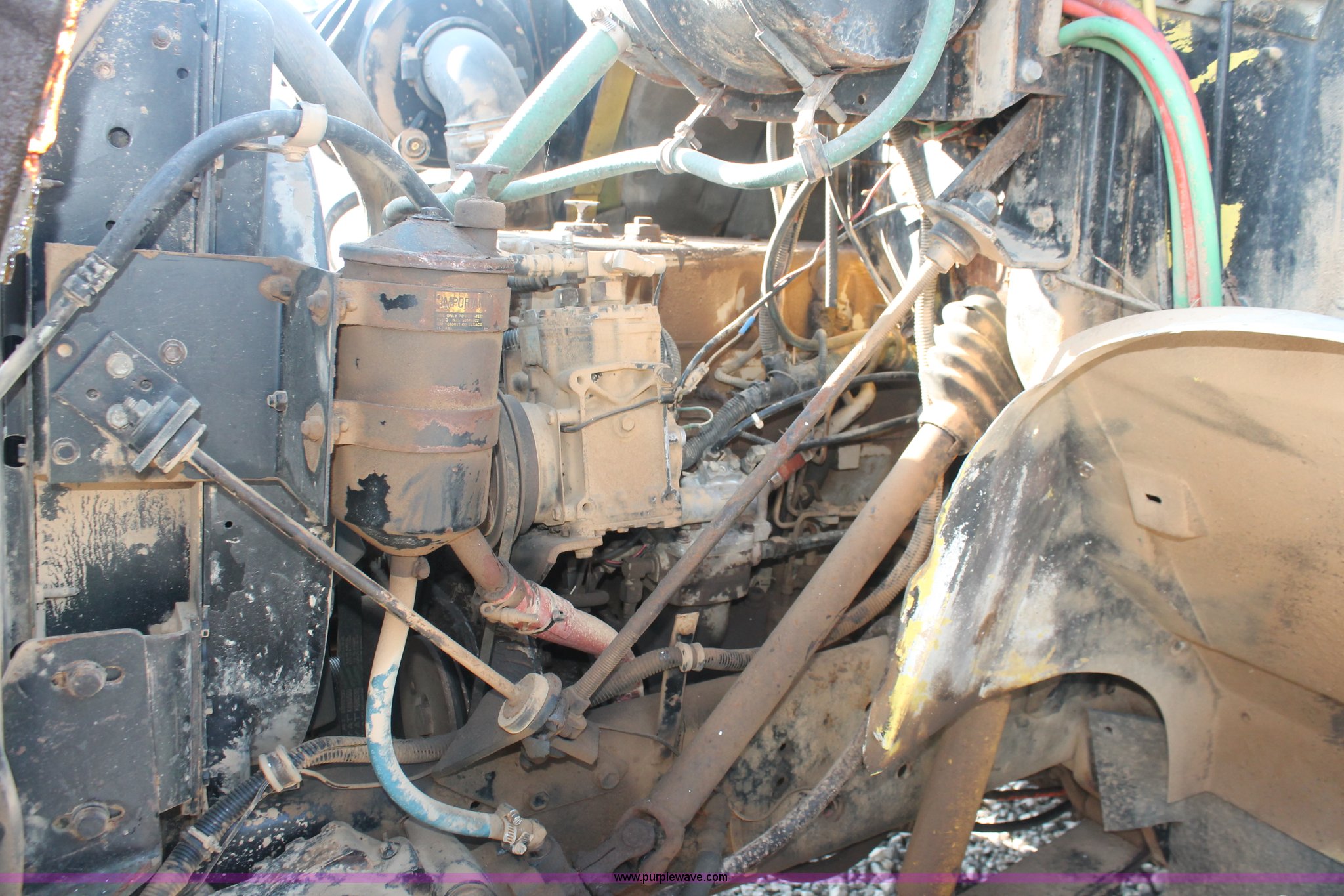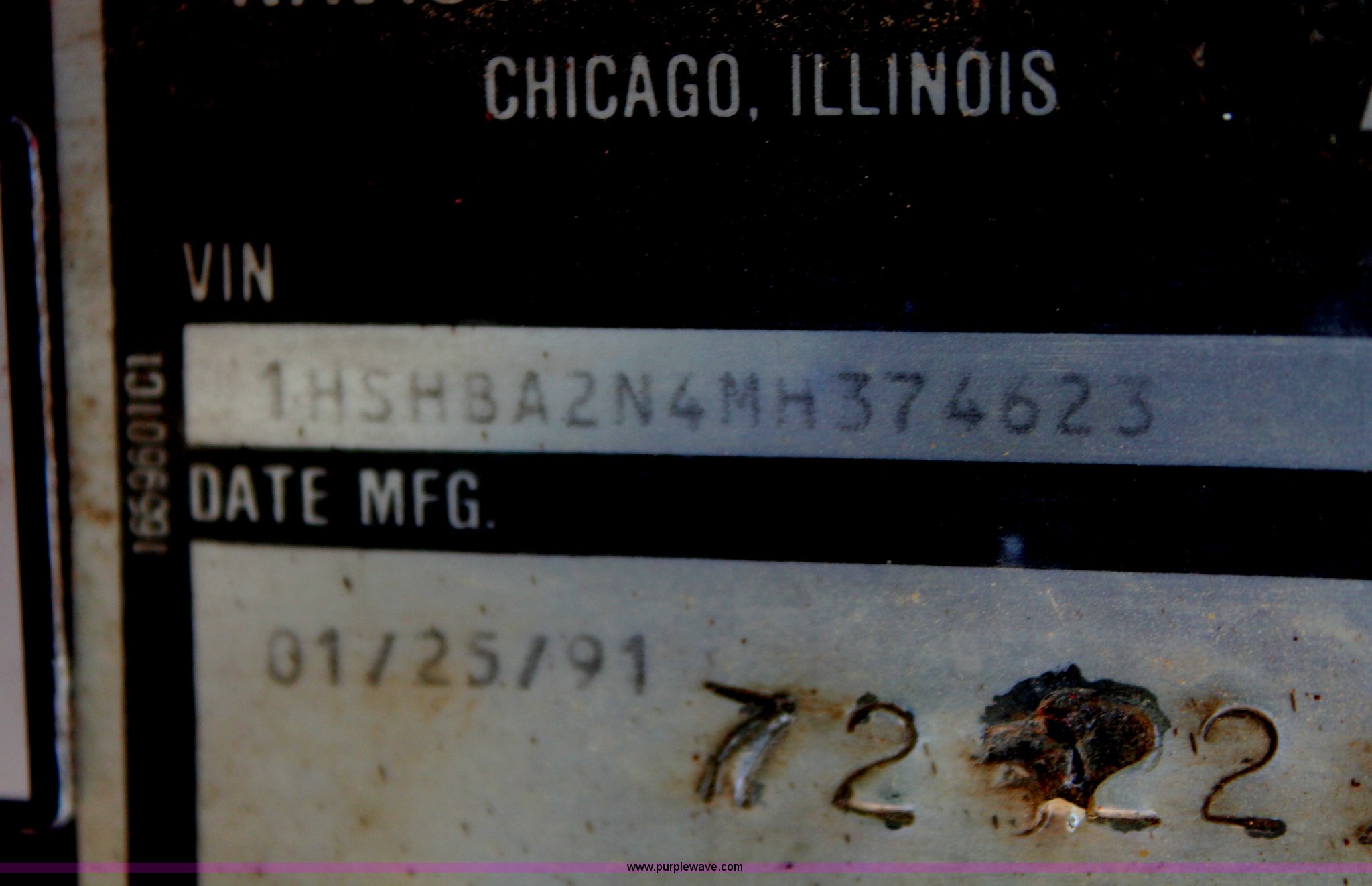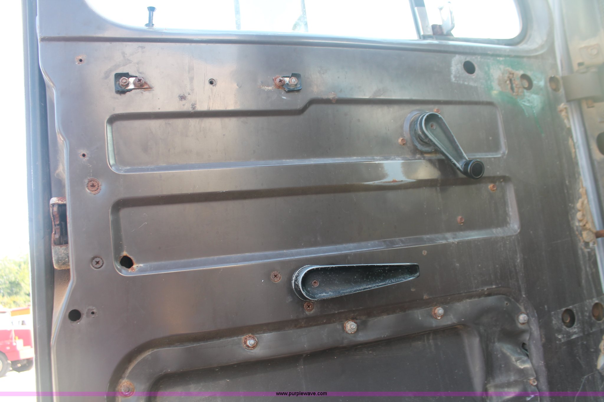 Purple Wave is selling a used Applicator Truck in Tennessee. This item is a 1991 International 8100 spreader truck with the following: 53,540 miles on odometer, Cummins L10 10.0L L6 diesel engine, Eaton Fuller Road Ranger nine speed manual transmission, Heat, AM/FM/cassette, Kenwood CB radio, Mid-Tech ARC-6000 automatic rate controller, Newton Crouch stainless steel spreader bed, Dual spinners, 16" diameter chain linked conveyor, Volume adjustable discharge chute, Rollover tarp, Block heater, Dual fuel tanks, Single rear exhaust stack, PTO, Wet kit, Spring suspension, Air brakes, 204" wheelbase, 385/85R22.5 front tires, 48x31.00-20 rear tires, GVWR 32,000 lbs, FAWR 12,000 lbs, RAWR 20,000 lbs, Weak battery, Unit# 22023