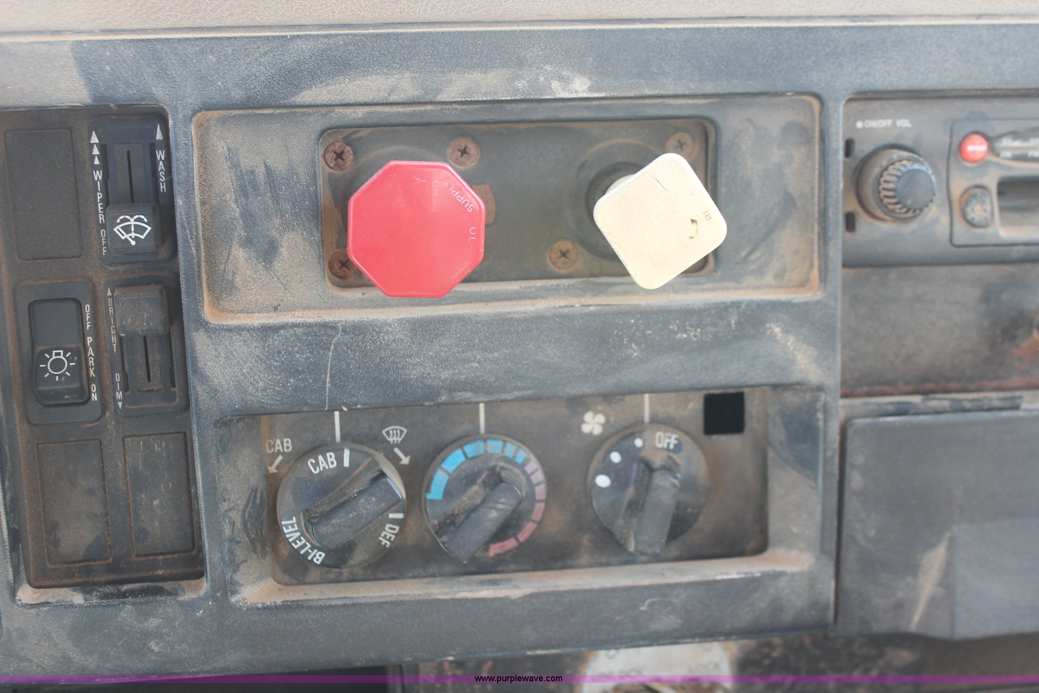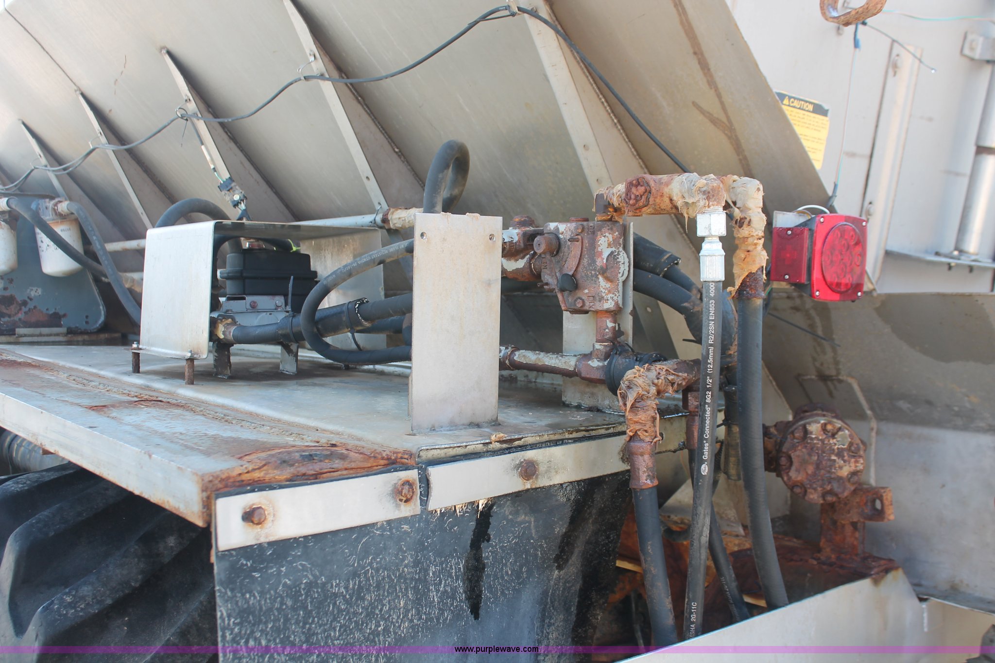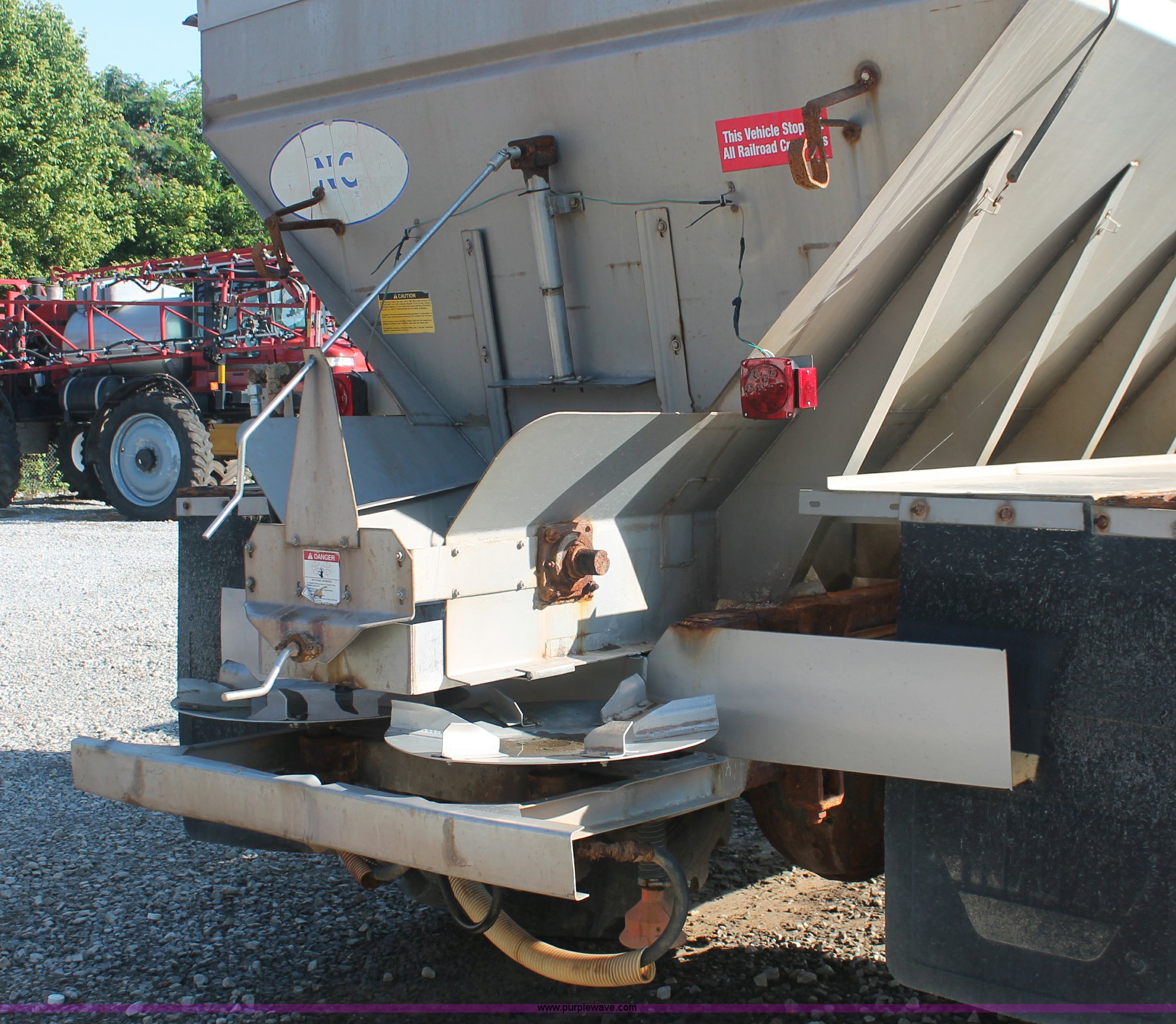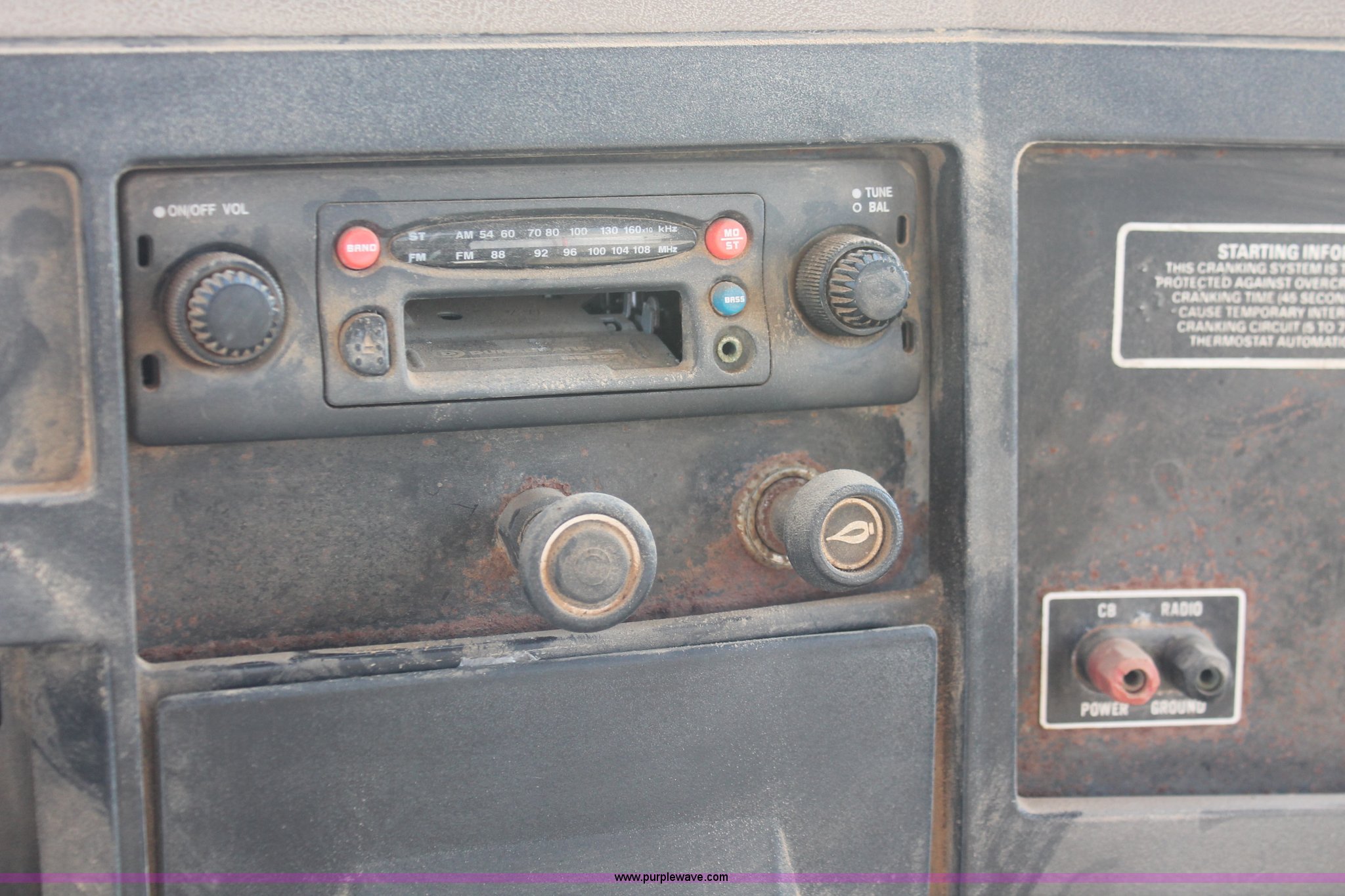 Purple Wave is selling a used Applicator Truck in Tennessee. This item is a 1991 International 8100 spreader truck with the following: 53,540 miles on odometer, Cummins L10 10.0L L6 diesel engine, Eaton Fuller Road Ranger nine speed manual transmission, Heat, AM/FM/cassette, Kenwood CB radio, Mid-Tech ARC-6000 automatic rate controller, Newton Crouch stainless steel spreader bed, Dual spinners, 16" diameter chain linked conveyor, Volume adjustable discharge chute, Rollover tarp, Block heater, Dual fuel tanks, Single rear exhaust stack, PTO, Wet kit, Spring suspension, Air brakes, 204" wheelbase, 385/85R22.5 front tires, 48x31.00-20 rear tires, GVWR 32,000 lbs, FAWR 12,000 lbs, RAWR 20,000 lbs, Weak battery, Unit# 22023