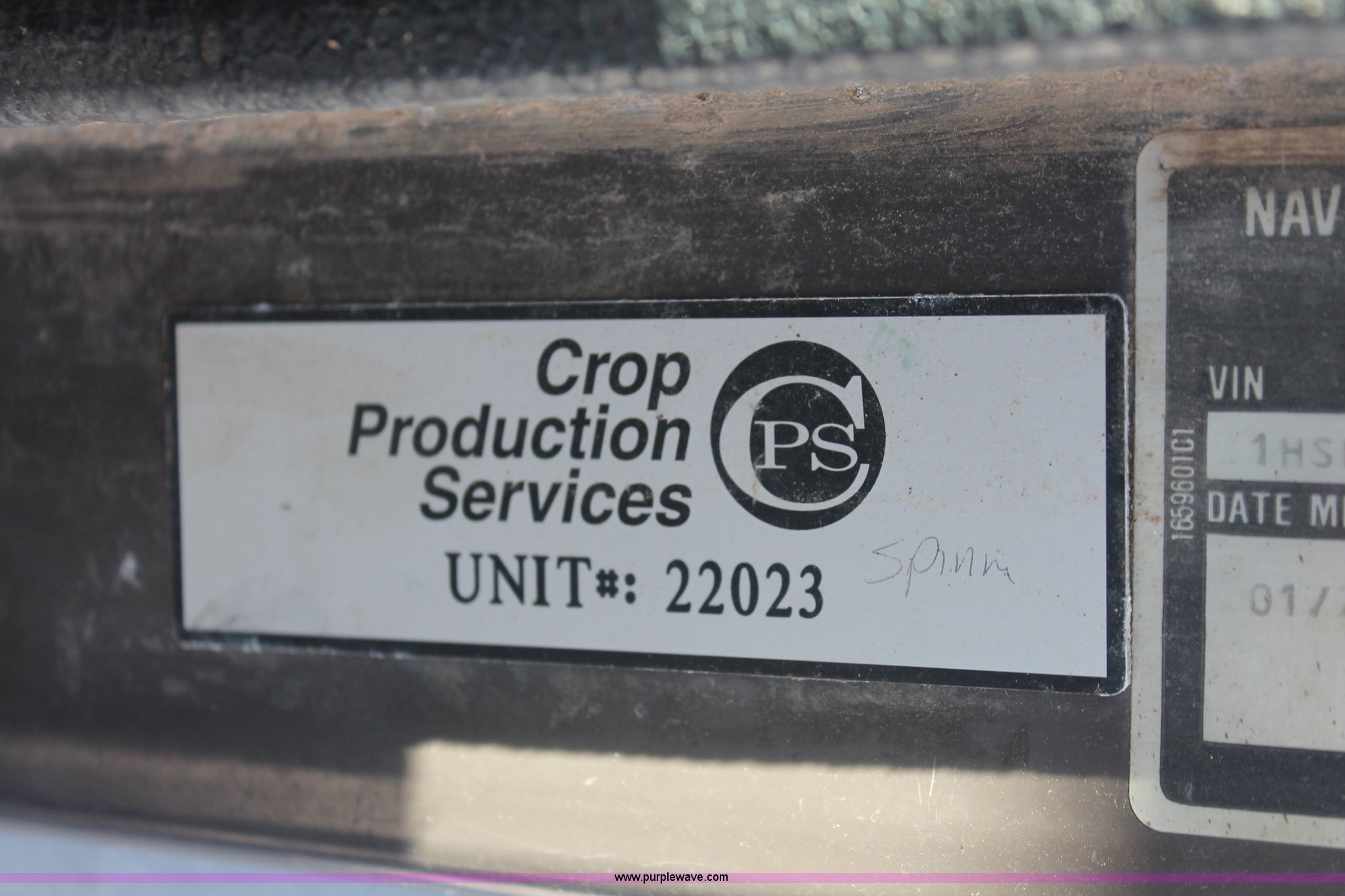 1991 International 8100 spreader truck. 53,540 miles on odometer, Cummins L10 10.0L L6 diesel engine, Eaton Fuller Road Ranger nine speed manual transmission, Heat, AM/FM/cassette, Kenwood CB radio, Mid-Tech ARC-6000 automatic rate controller, Newton Crouch stainless steel spreader bed Dual spinners, 16" diameter chain linked conveyor, Volume adjustable discharge chute, Rollover tarp, Block heater, Dual fuel tanks, Single rear exhaust stack, PTO, Wet kit, Spring suspension, Air brakes, 204" wheelbase, 385/85R22.5 front tires, 48x31.00-20 rear tires, GVWR 32,000 lbs, FAWR 12,000 lbs, RAWR 20,000 lbs, Weak battery, Unit# 22023. Title distribution may be delayed up to 30 days from verification of funds. 1HSHBA2N4MH374623. Shipping quotes available. Crop Production Services - Franklin. 5519 Hwy 31 W. Portland, TN 37148