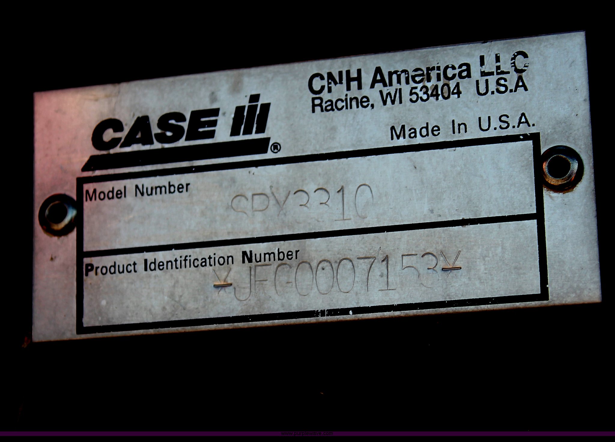 2005 Case IH SPX3310 Patriot self-propelled sprayer. 2,981 hours on meter, Case 6TA-590 5.9L six cylinder diesel engine 200 HP, Serial 46457020, Hydrostatic transmission 3F-3R gears, Four wheel drive, 1,000 gallon stainless steel solution tank, Poly rinse tank, Spray control system, 60/90'W boom (5) boom sections, TeeJet QJ360 five-way and Case five-way nozzle bodies, 20" nozzle spacing, Hydraulic height adjust, Hydraulic boom fold, 55 gallon foam marker tank, AC and heat, JVC AM/FM/cassette, Suspension seat, Raven Starlink GPS, Smartrax auto-steer, Viper 2 field monitor, RGL 600 light bar, Glare shade, Front windshield wiper, Work lights, Manuals, Hydraulic axle width adjust, Steel fenders, Goodyear Dyna Torque 380/85R46 radial tires, Serial JFG0007153, Unit# 14713. View equipment video. Shipping quotes available. Crop Production Services - Portland. 5519 Hwy 31 W. Portland, TN 37148