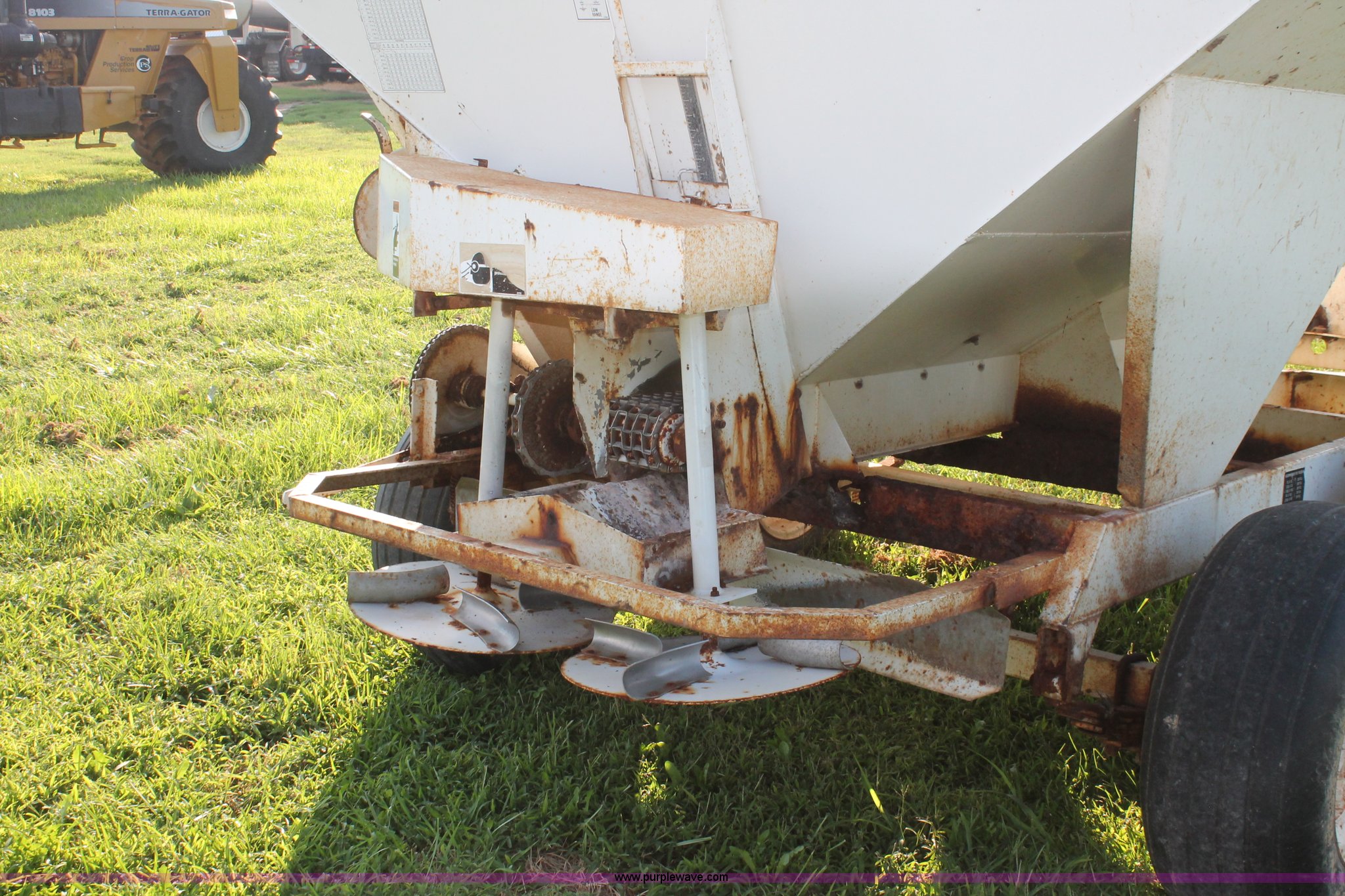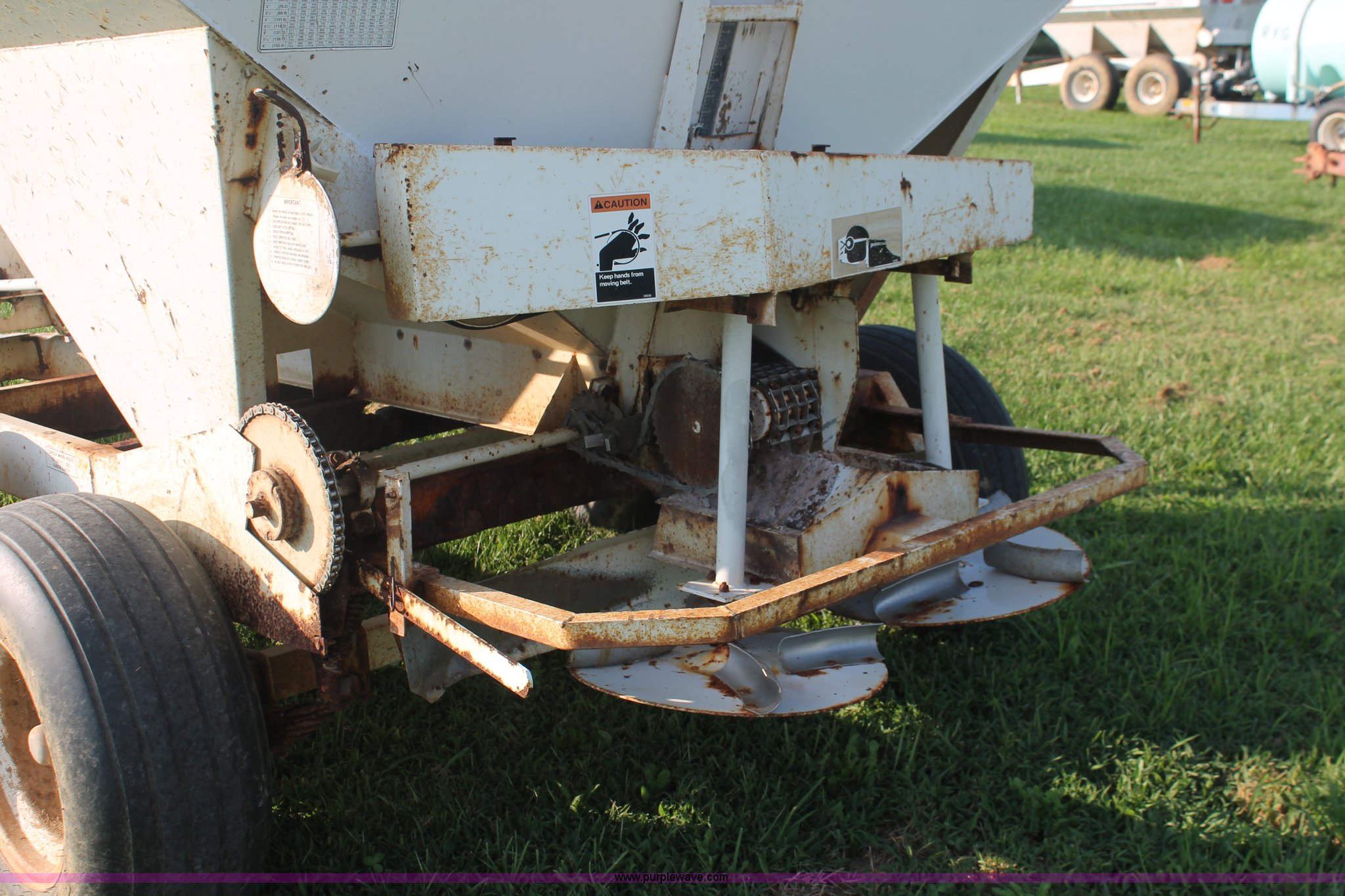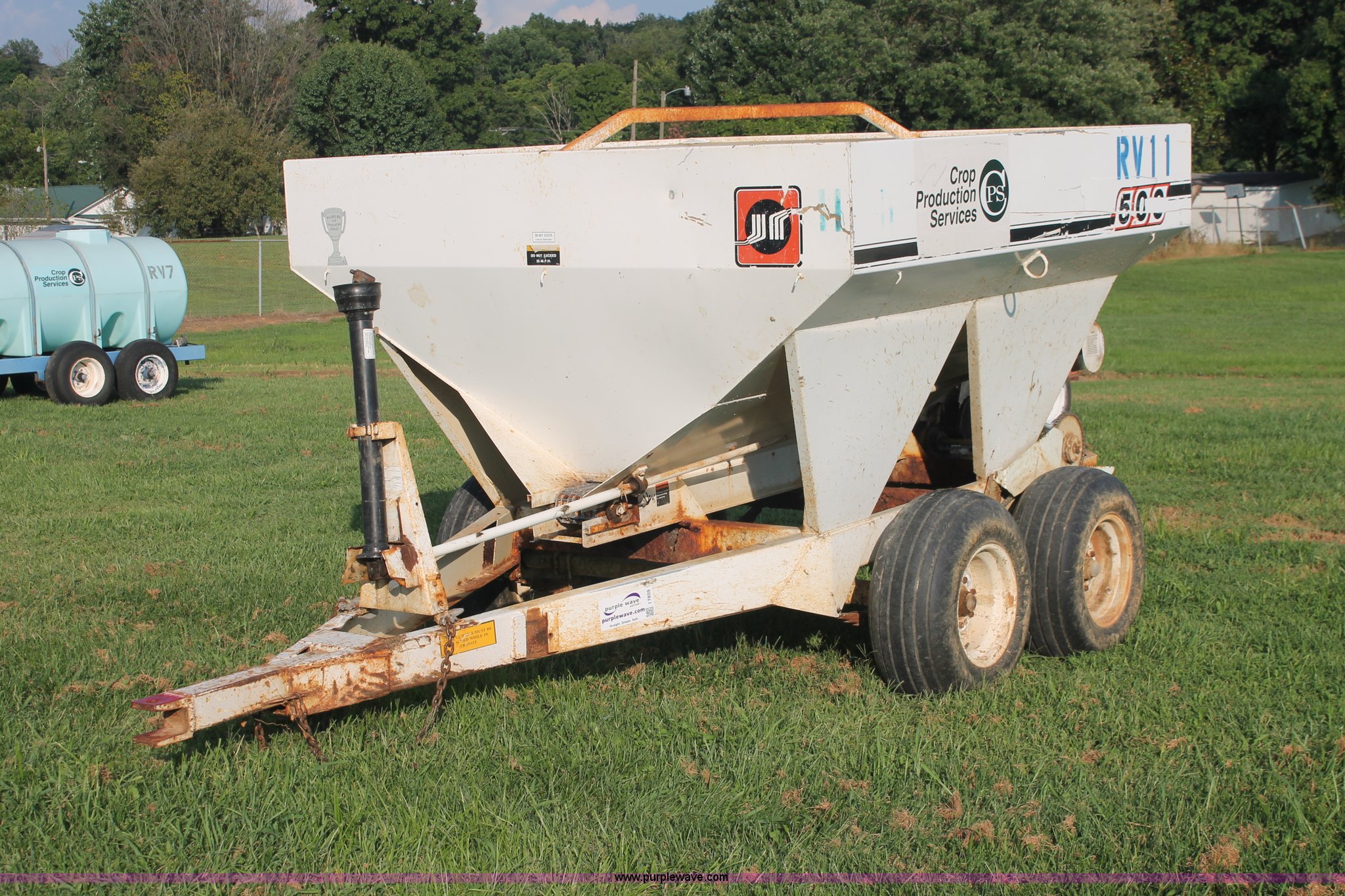 Purple Wave is selling a used Applicator Pull Type in Kentucky. This item is a Willmar 500 dry spreader with the following: Five ton capacity, Dual spinners, 8"W linked conveyor, Volume adjustable discharge chute, 540 PTO, Pin hitch, 11L-15 tires, ID# RV11, Serial 0010207854S, Unit# 22986