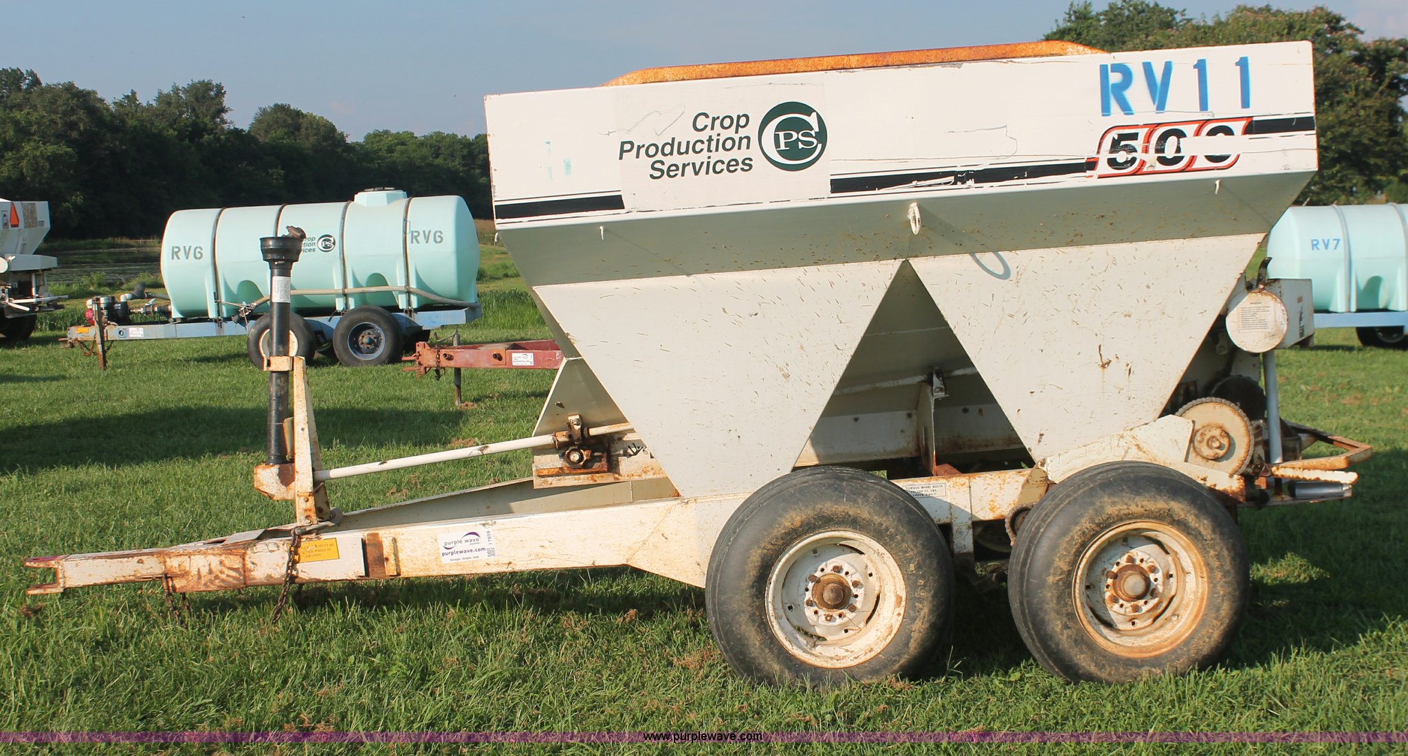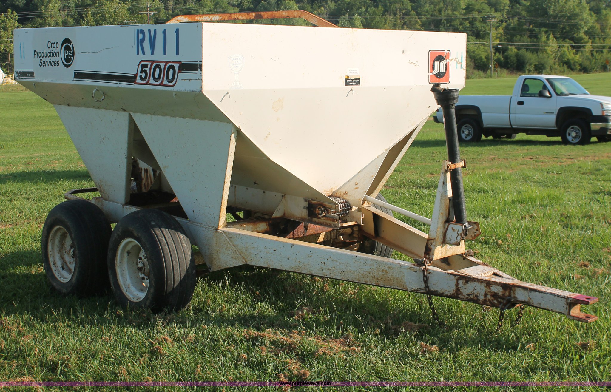 Willmar 500 dry spreader. Five ton capacity, Dual spinners, 8"W linked conveyor, Volume adjustable discharge chute, 540 PTO, Pin hitch, 11L-15 tires, ID# RV11, Serial 0010207854S, Unit# 22986. Shipping quotes available. Crop Production Services - Russellville. 485 Payton St. Russellville, KY 42276