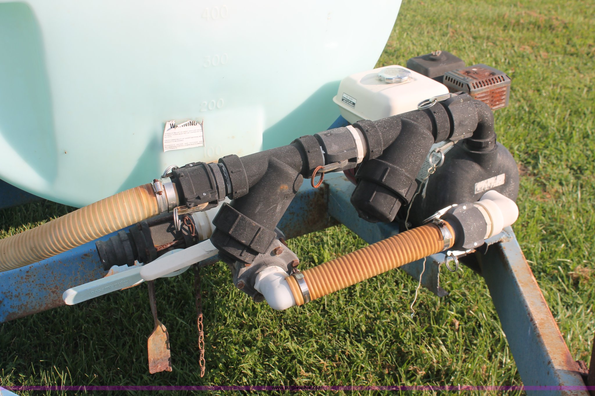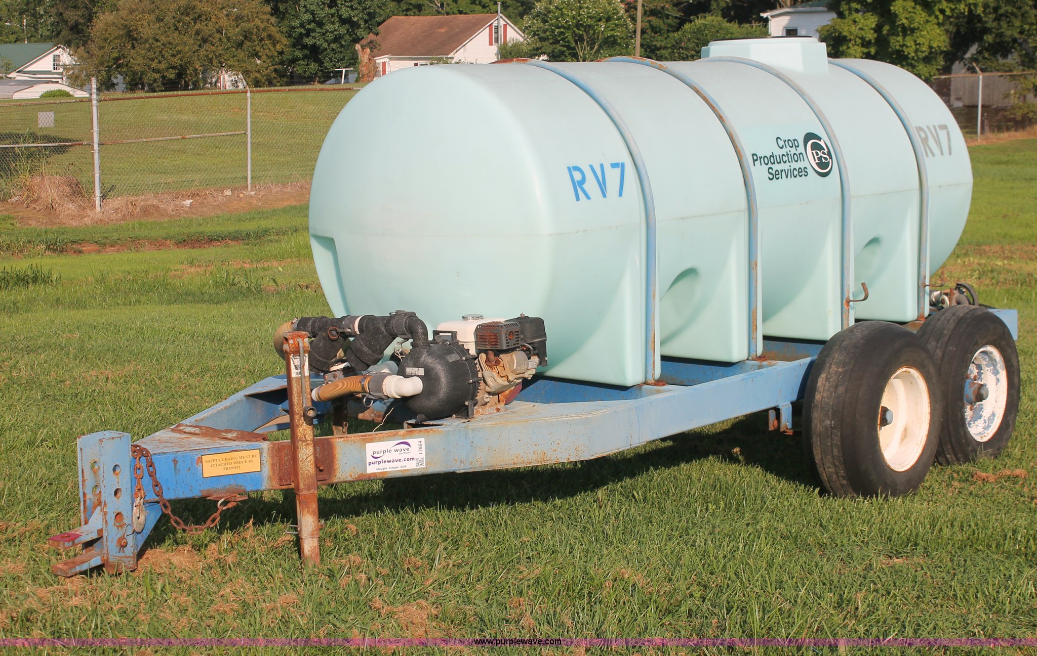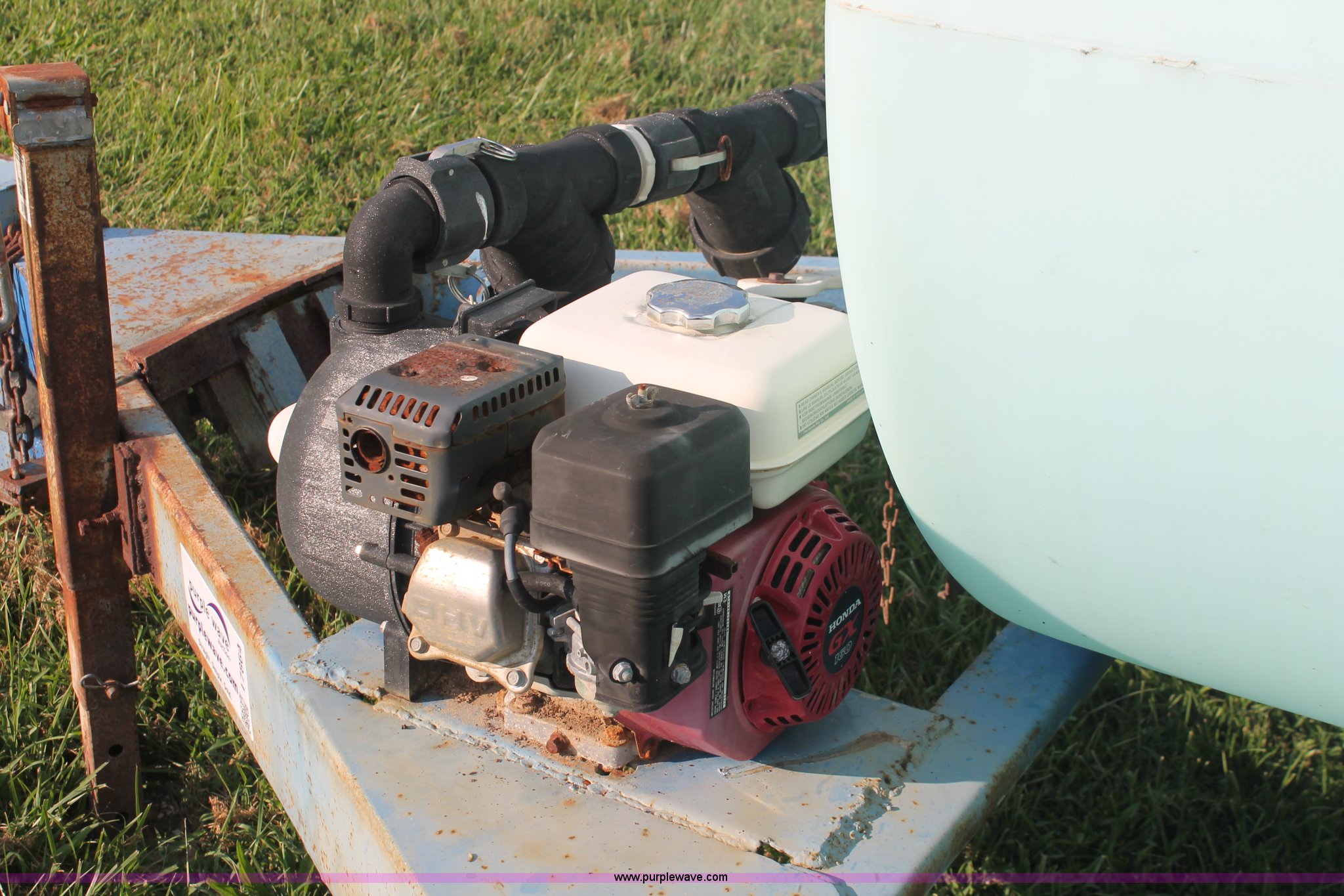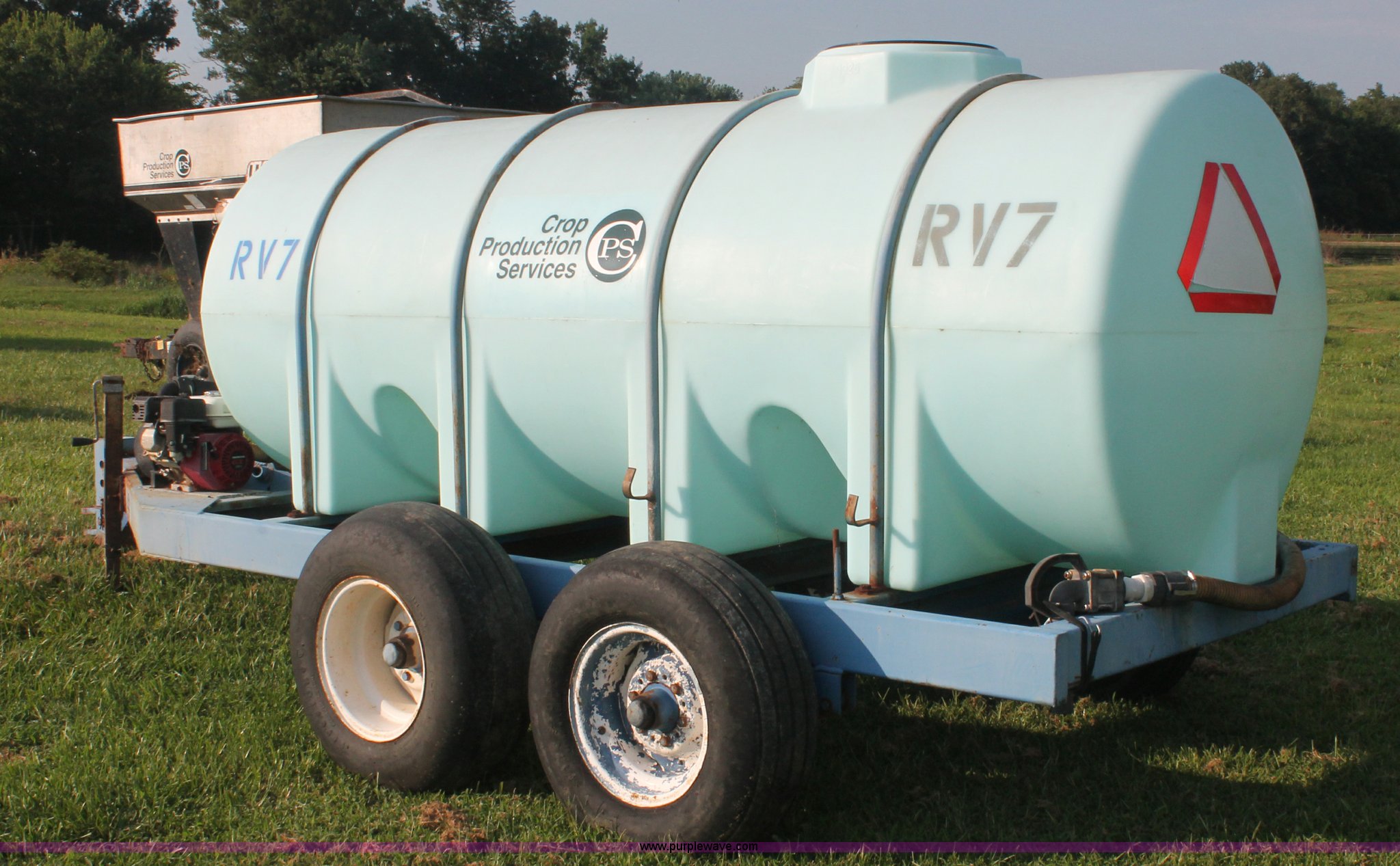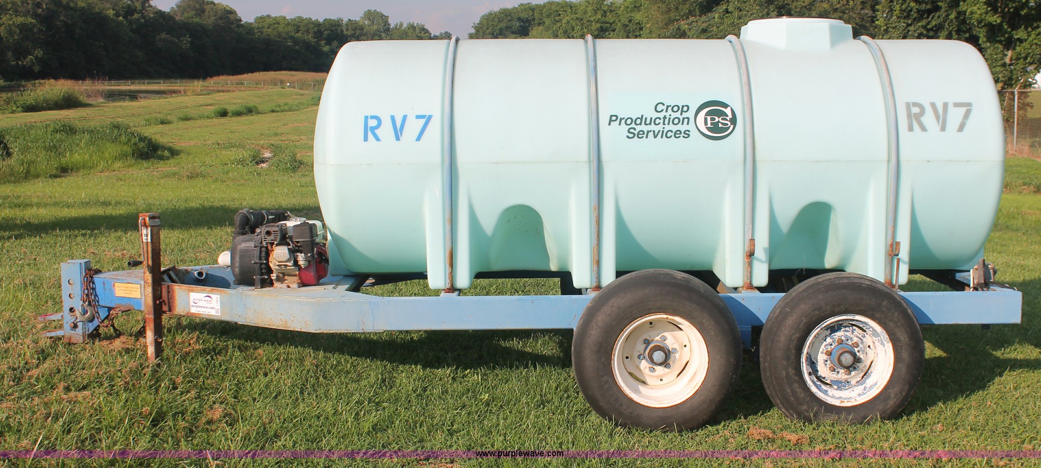Purple Wave is selling a used Tank Trailer in Kentucky. This item is a 1,000 gallon liquid nurse trailer with the following: Poly tank, Honda GX160 5.5 HP gas engine, Pacer pump, 2" plumbing, Shut-off valves, 11L-15 tires, Nozzle assembly included, ID# RV7, Unit# 76031