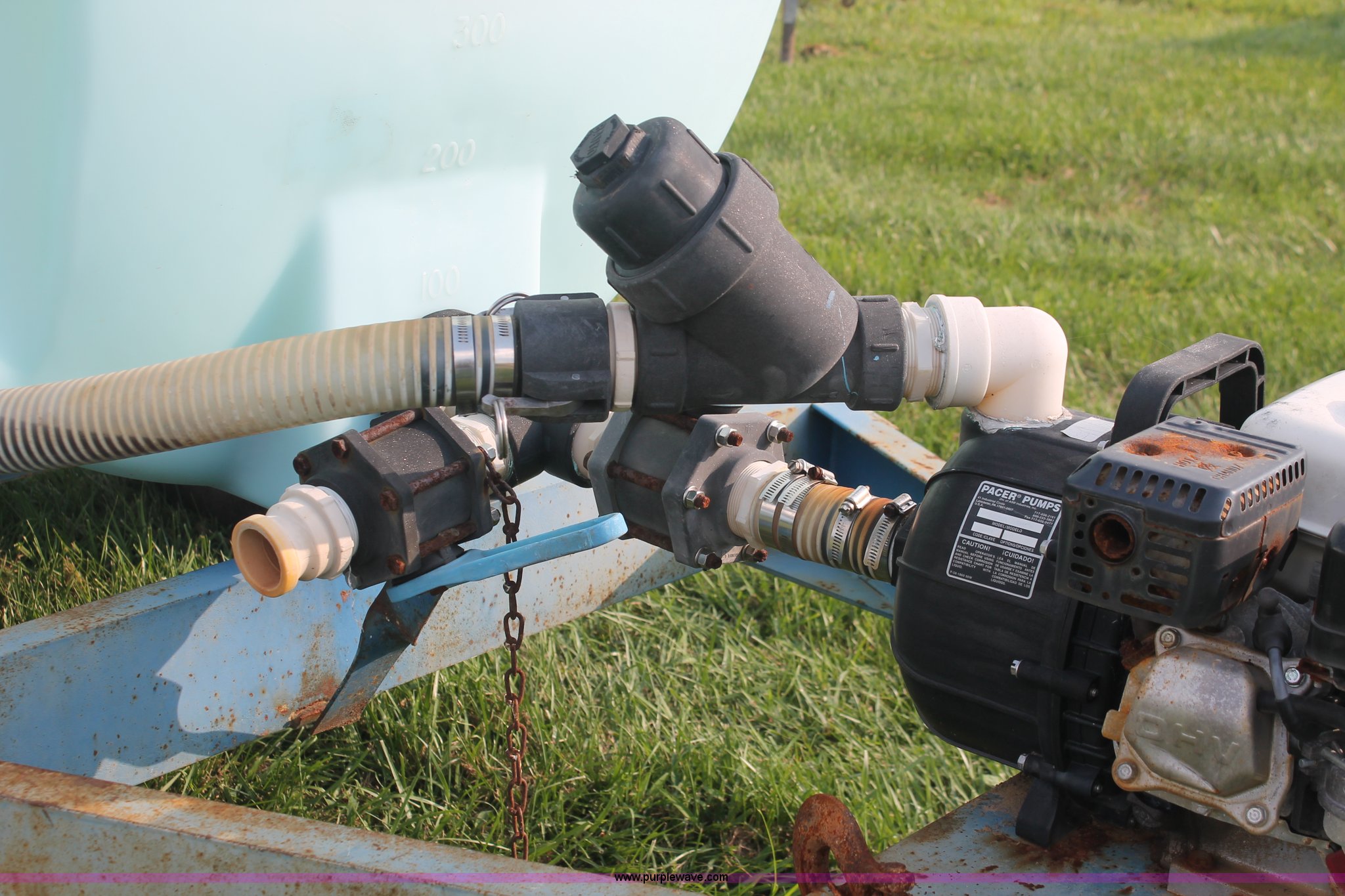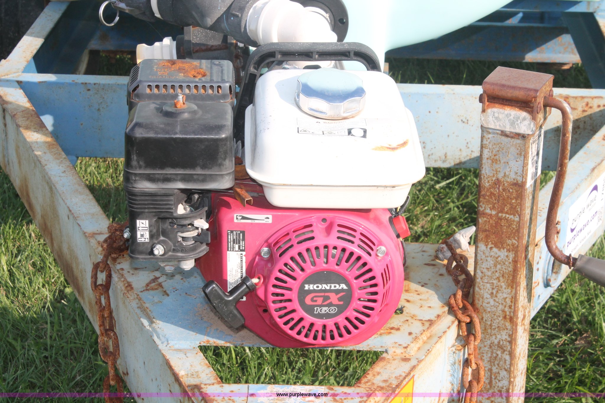 1,000 gallon liquid nurse trailer. Poly tank, Honda GX160 5.5 HP gas engine, Pacer pump, 2" plumbing, Shut-off valves, Pin hitch, 11L-15 tires, ID# RV6, Unit# 76029. Shipping quotes available. Crop Production Services - Russellville. 485 Payton St. Russellville, KY 42276