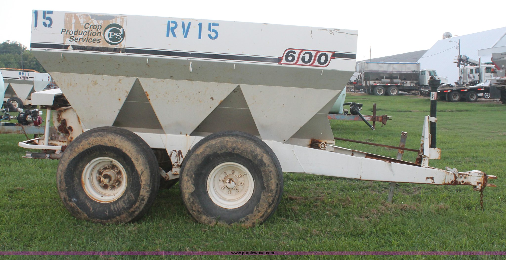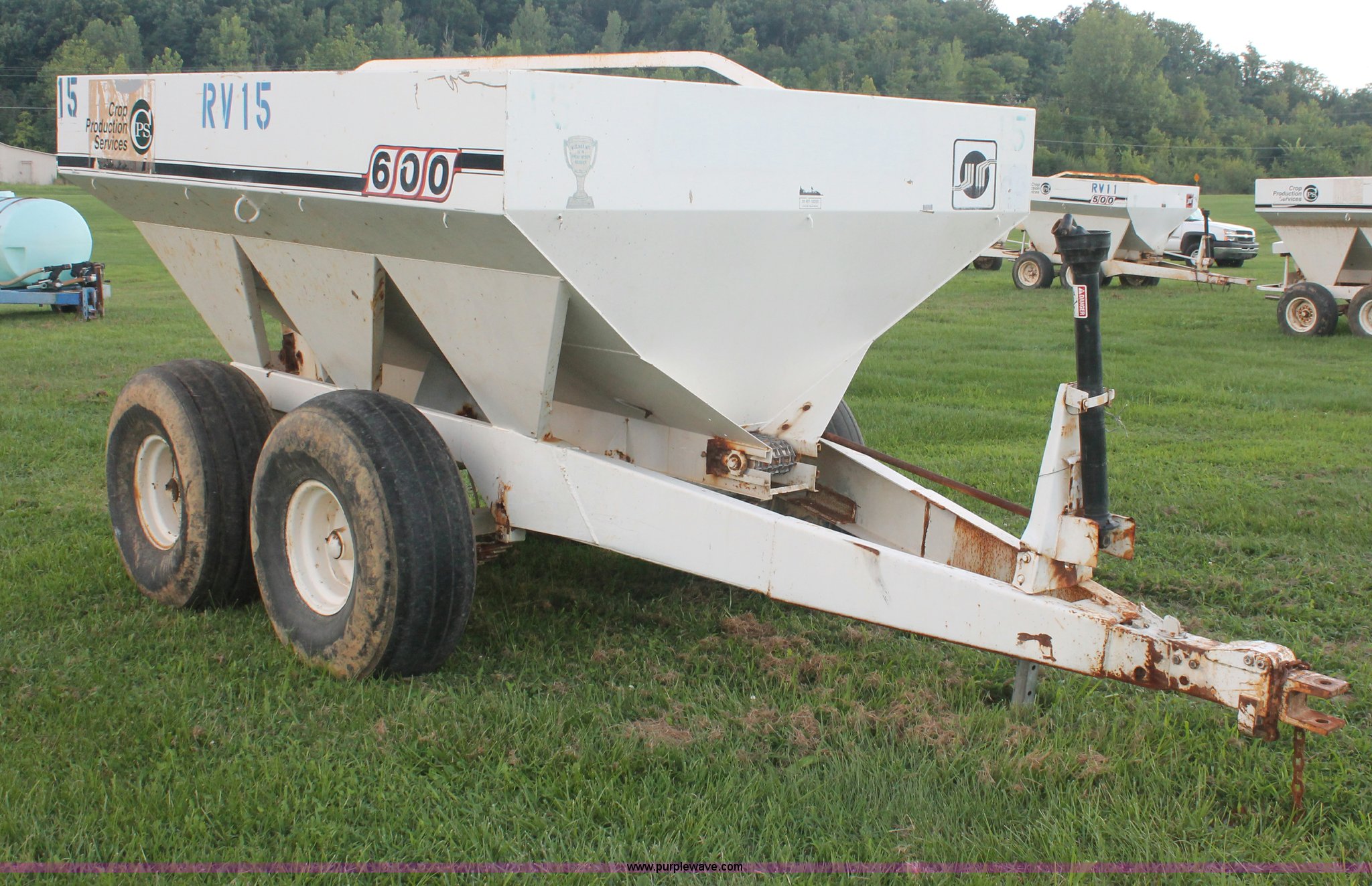 Willmar 600 dry spreader. Six ton capacity, Dual spinners, 8"W linked conveyor, Volume adjustable discharge chute, 540 PTO, Pin hitch, 16.5L-16.1SL tires, ID# RV15, Unit# 22978. Shipping quotes available. Crop Production Services - Russellville. 485 Payton St. Russellville, KY 42276