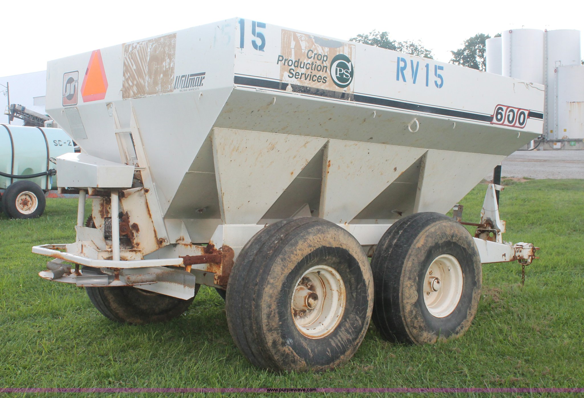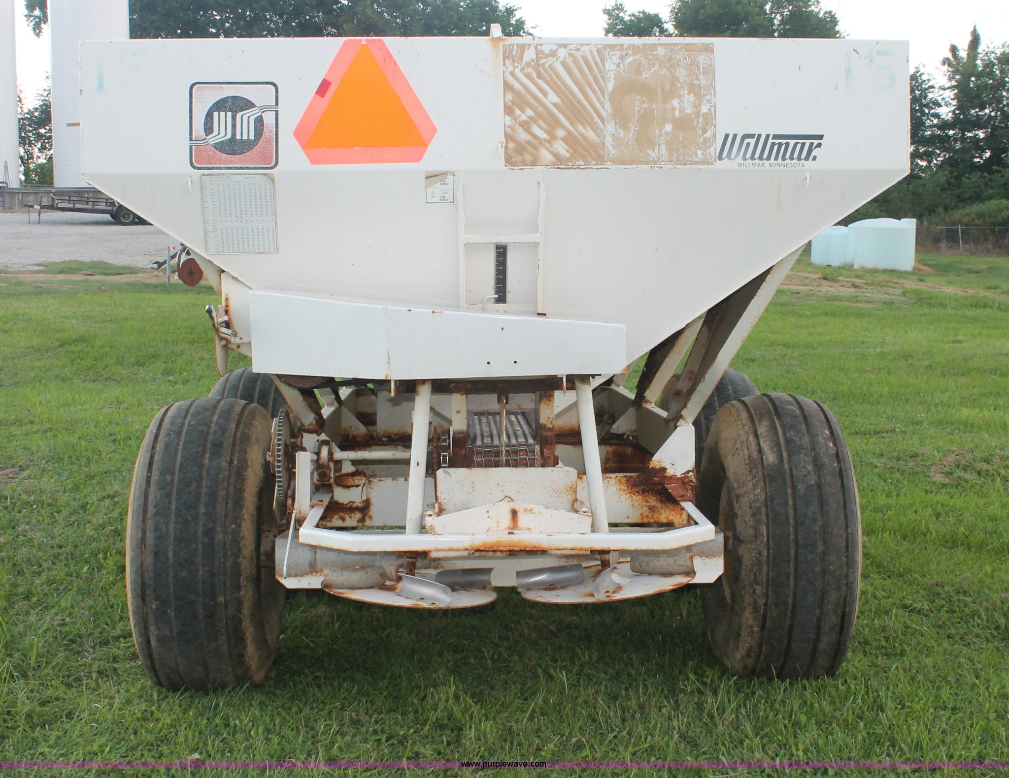 Purple Wave is selling a used Applicator Pull Type in Kentucky. This item is a Willmar 600 dry spreader with the following: Six ton capacity, Dual spinners, 8"W linked conveyor, Volume adjustable discharge chute, 540 PTO, Pin hitch, 16.5L-16.1SL tires, ID# RV15, Unit# 22978