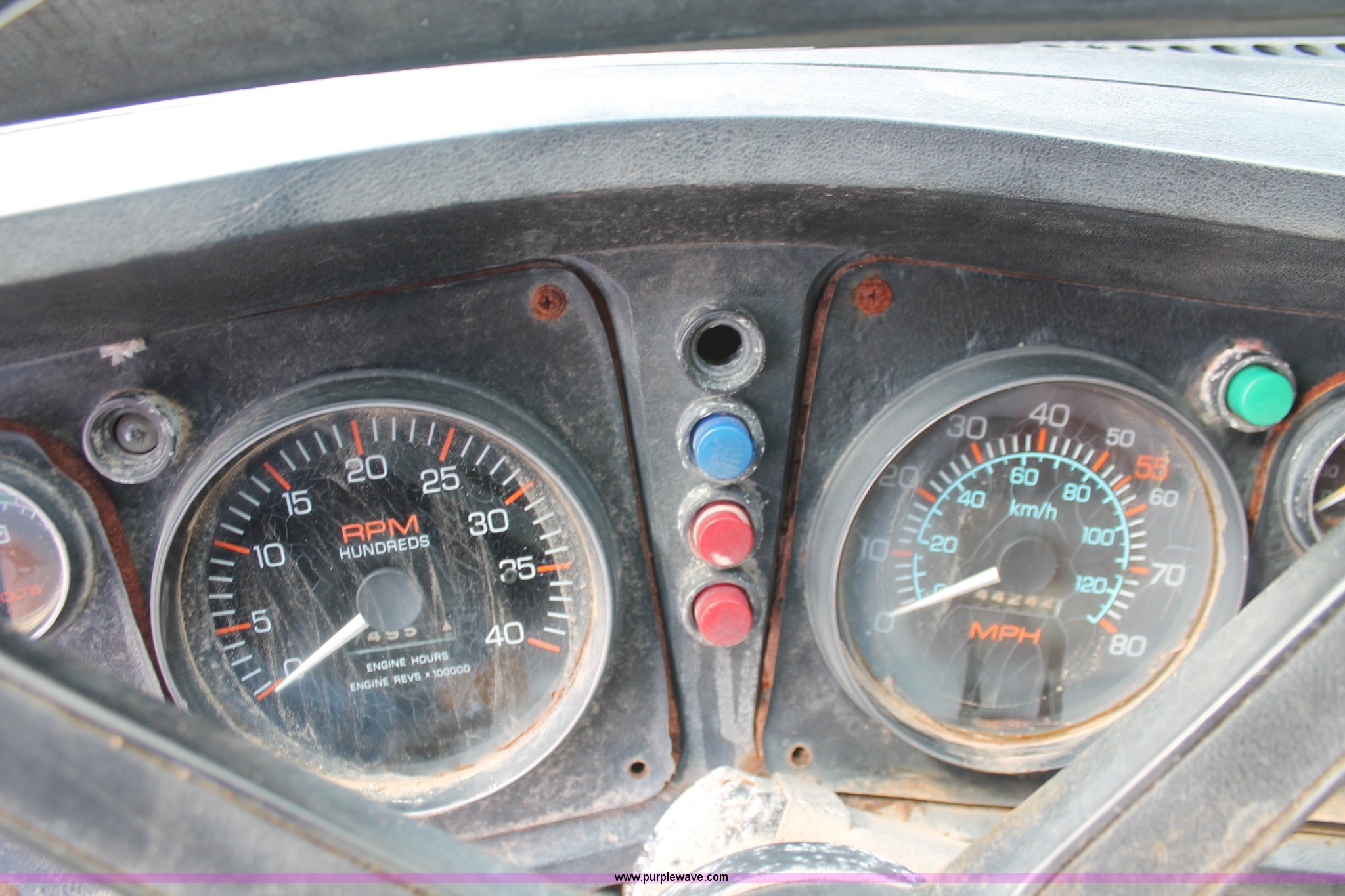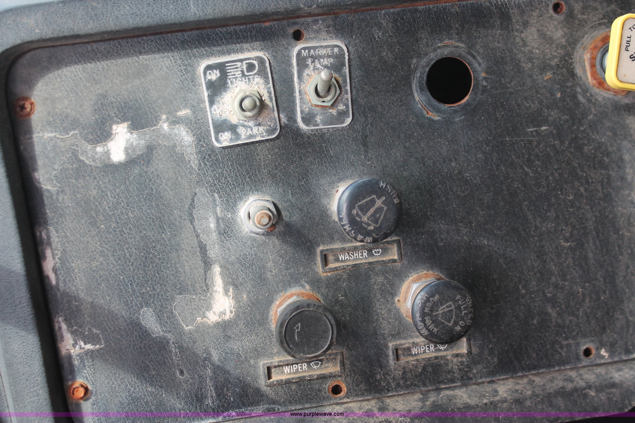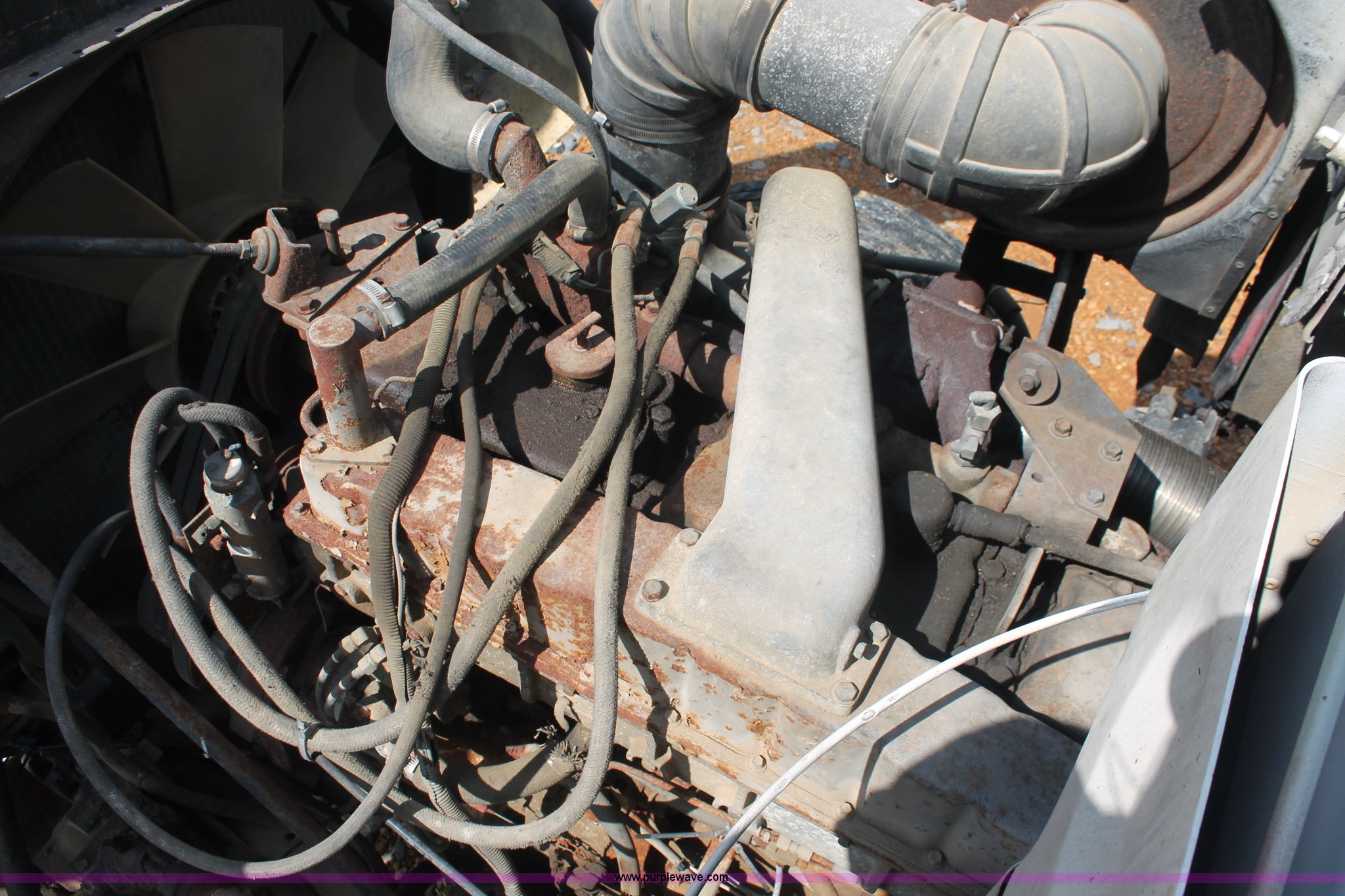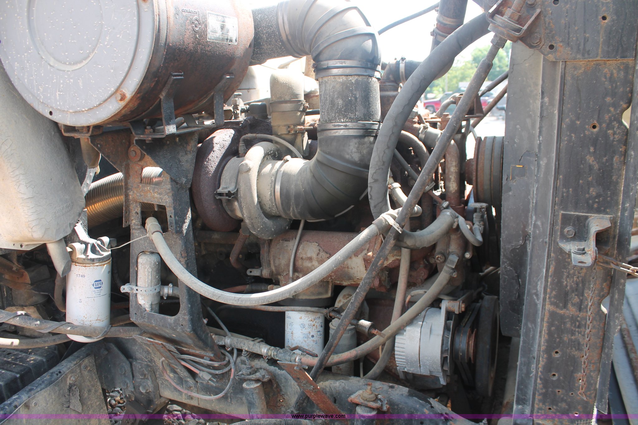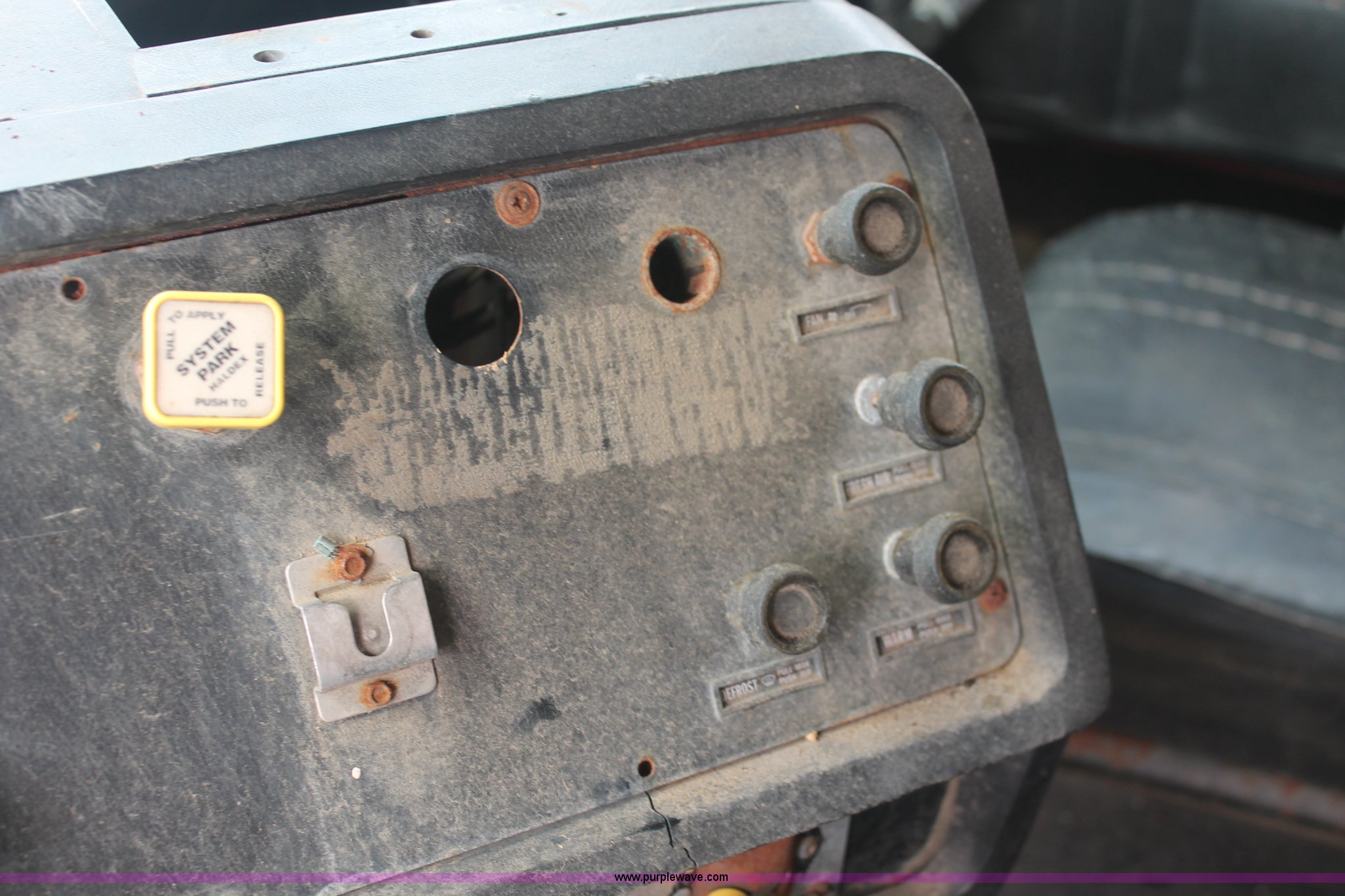 Purple Wave is selling a used Fertilizer or Feed Delivery Truck in Kentucky. This item is a 1982 White tender truck with the following: 144,242 miles on odometer, 7,495 hours on meter, 14.0L L6 diesel engine, Eaton Fuller Road Ranger nine speed manual transmission, Interdiffertial lock, Chandler tender bed, 16 ton capacity, Single spool control valve, 10" diameter discharge auger, Hydraulic lift, Dual access ladders, Two compartment, Manual slide hopper doors, Serial 9135, Dual fuel tanks, Single rear exhaust stack, PTO, Wet kit, Spring suspension, Air brakes, 192" wheelbase, 295/75R22.5 tires, Missing driver's side window glass, Unit# 51729