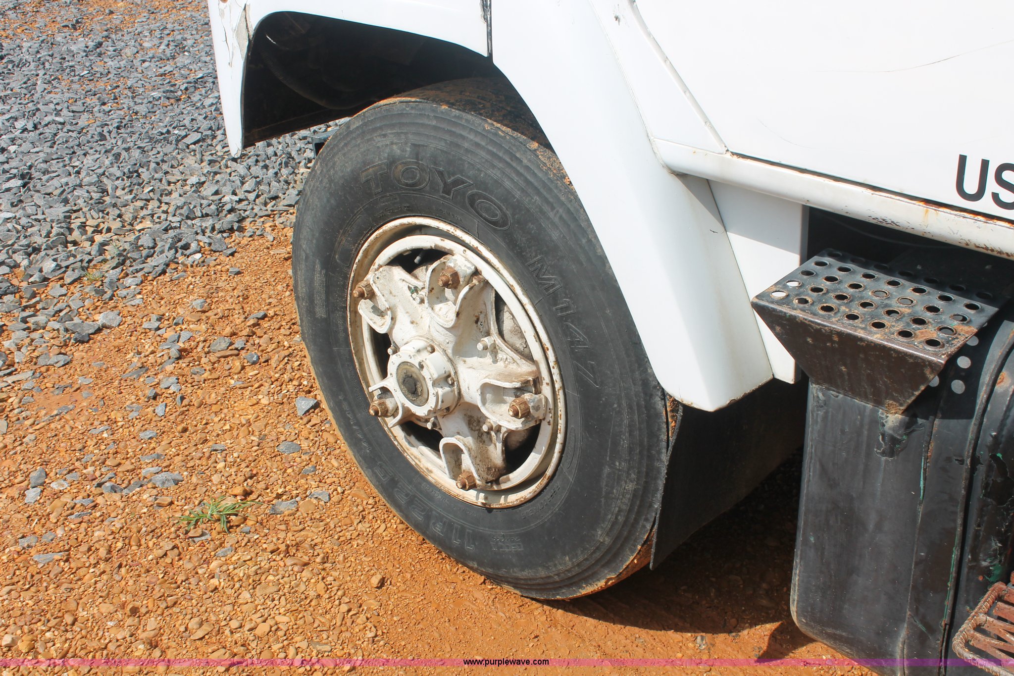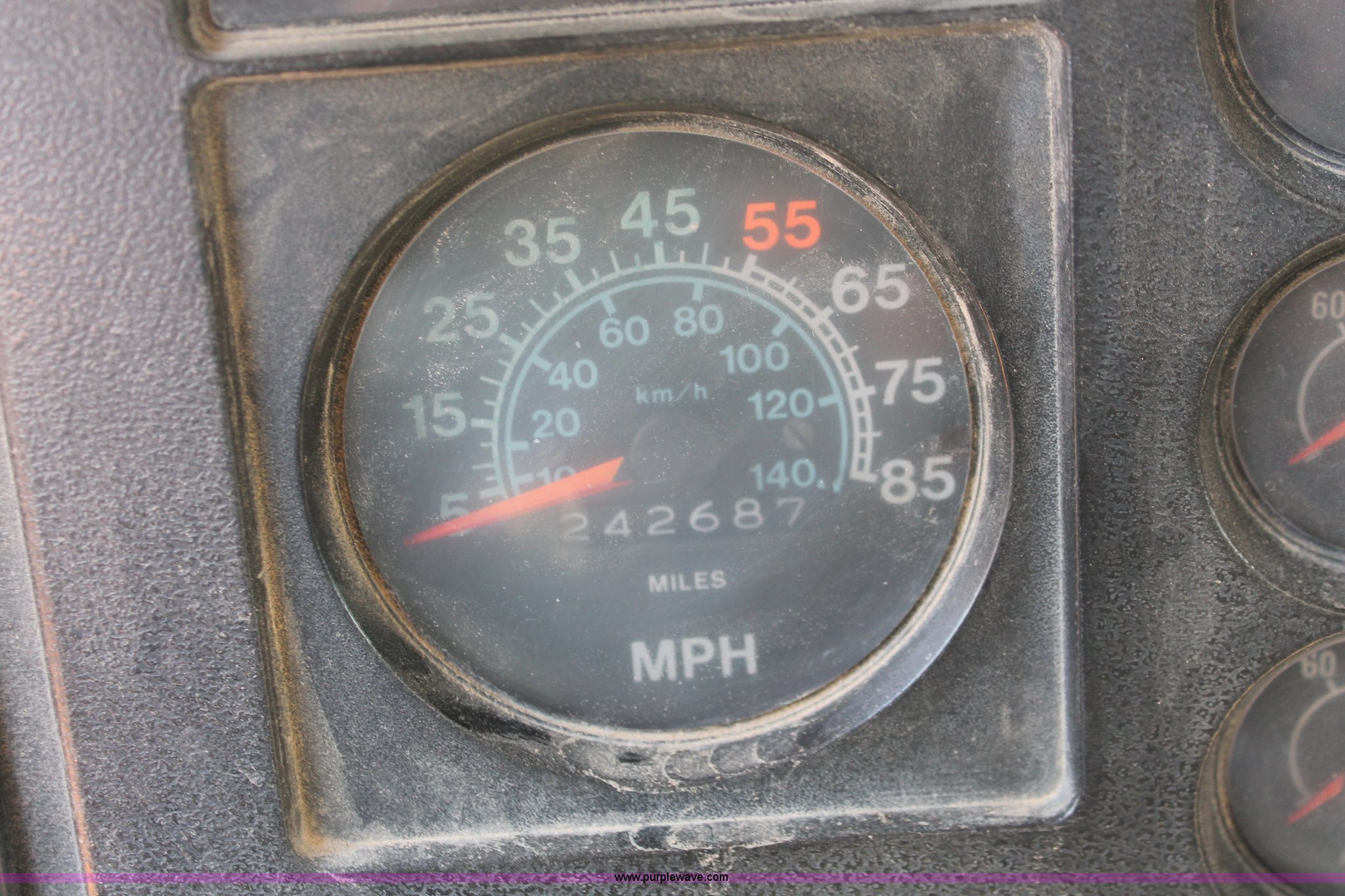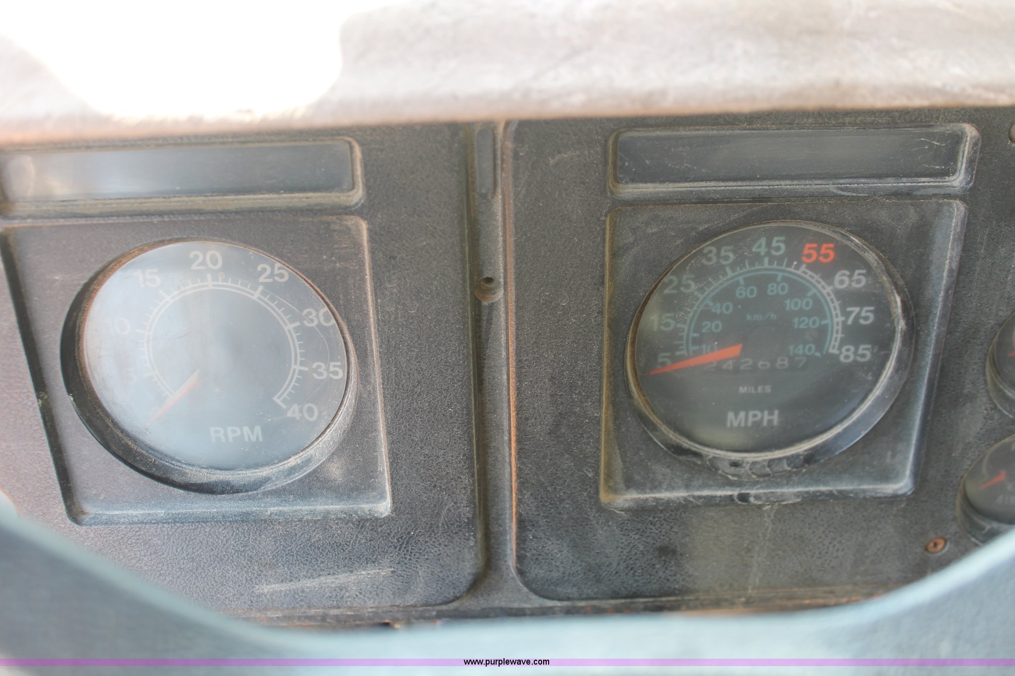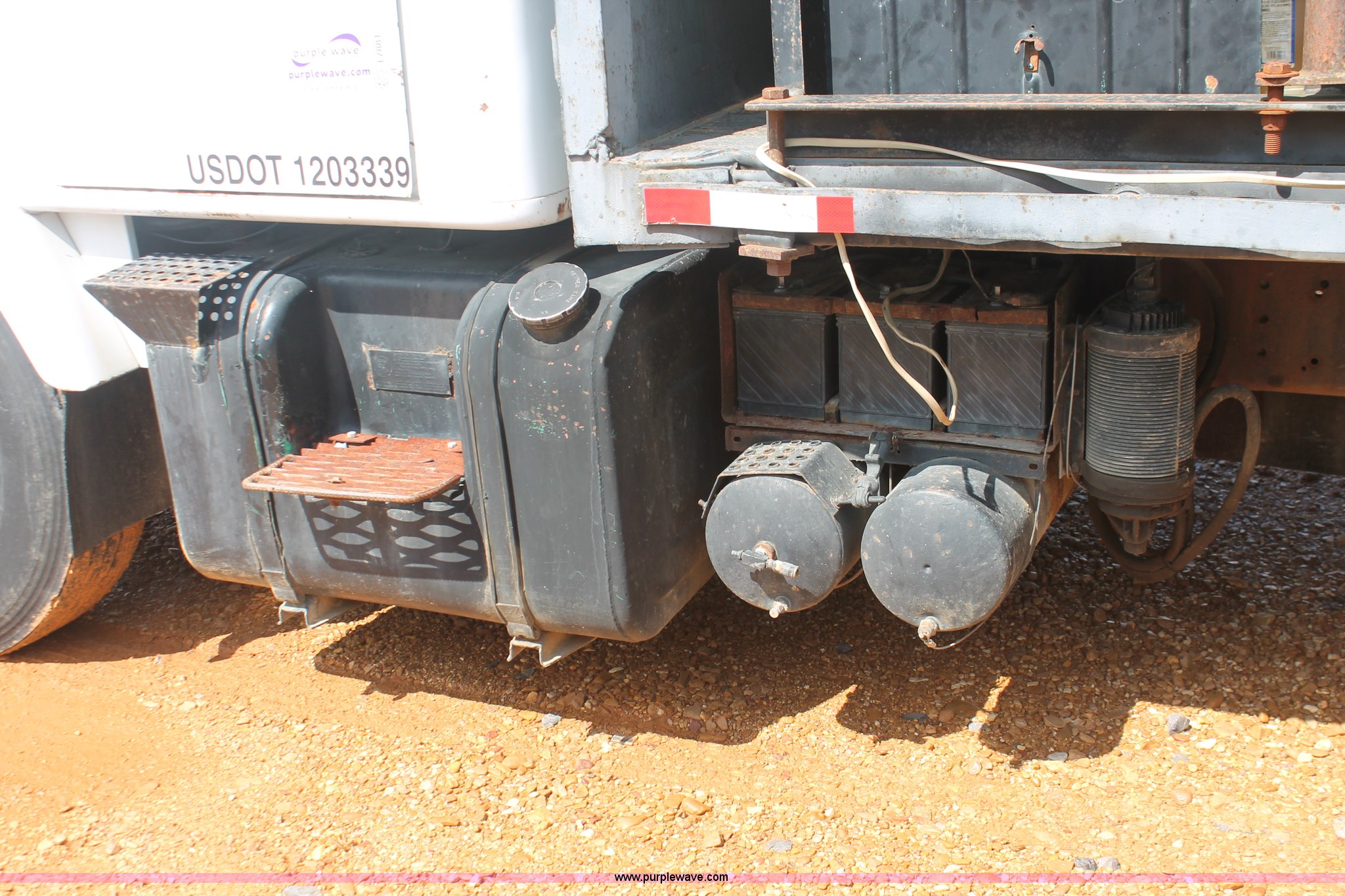 1982 International F2275 flatbed liquid nurse truck. 242,687 miles on odometer, Cummins diesel engine, Fuller Road Ranger RT-9509 nine speed manual transmission, Power divider lock, Fifth wheel lock, AC and heat Unknown operating condition, 22' flatbed 3,000 gallon poly tank, 95 gallon induction tank, 55 gallon induction tank, 2" plumbing, Shut-off valves, Honda GX160 5.5 HP gas engine, Lifan 5.5 HP gas engine, Steel frame with wood decking, Spring suspension, Air brakes, 192" wheelbase, 295/75R22.5 tires, Unit# 45719. Title distribution may be delayed up to 30 days from verification of funds. 1HTDF2272CGB10717. Shipping quotes available. Crop Production Services - Sedalia. 1680 Kentucky 339 East. Sedalia, KY 42079