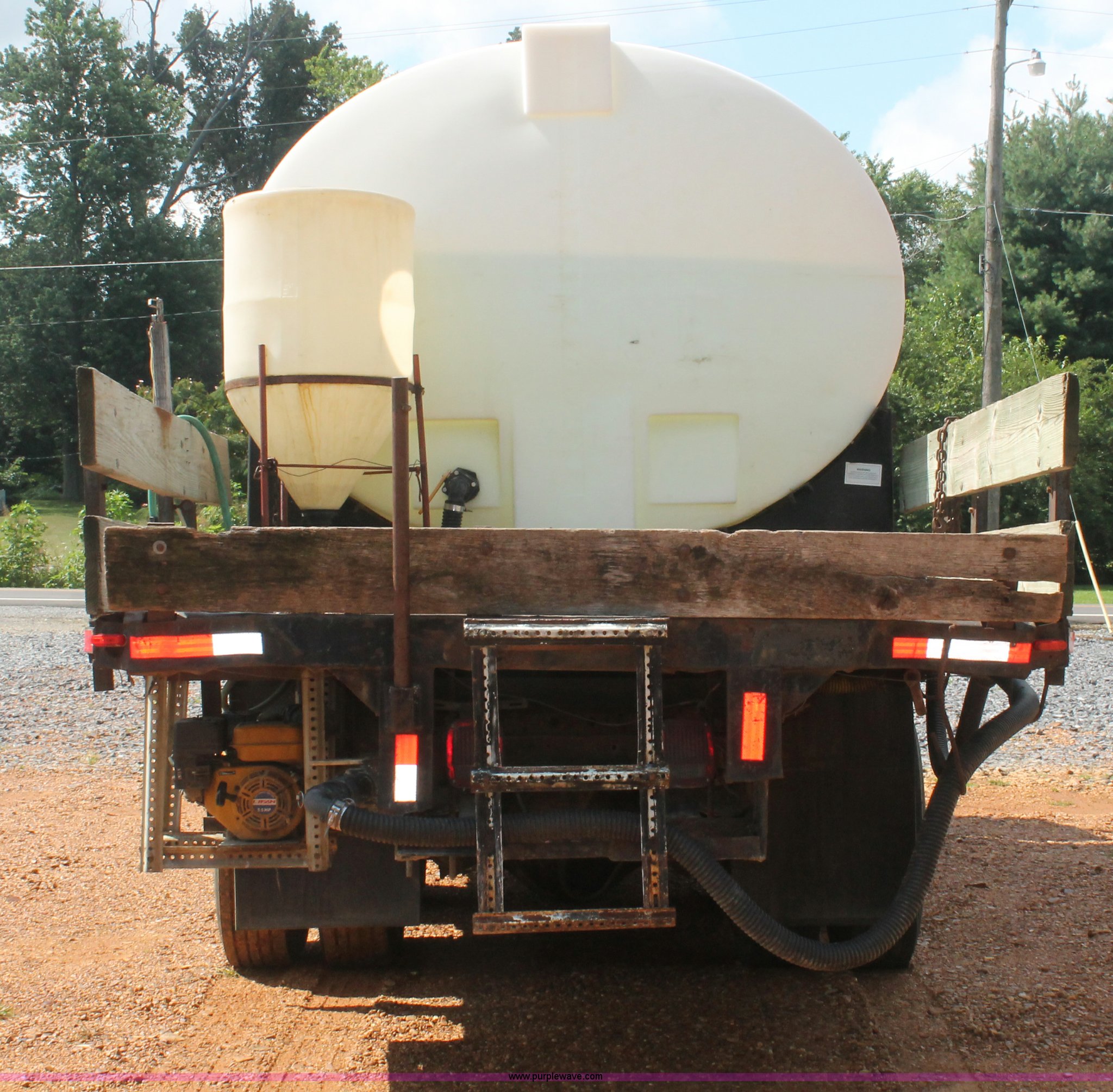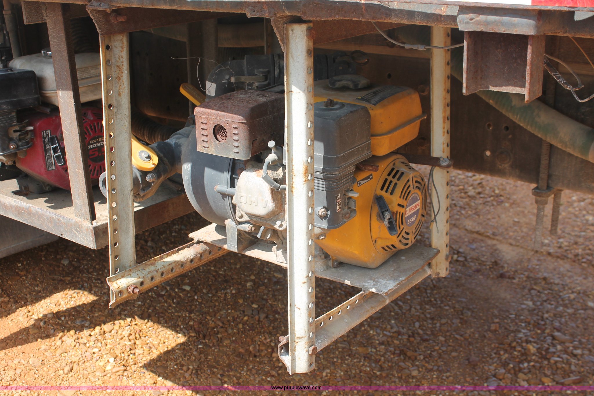 Purple Wave is selling a used Tank Truck or Water Truck in Kentucky. This item is a 1982 International F2275 flatbed liquid nurse truck with the following: 242,687 miles on odometer, Cummins diesel engine, Fuller Road Ranger RT-9509 nine speed manual transmission, Power divider lock, Fifth wheel lock, AC and heat, Unknown operating condition, 22' flatbed, 3,000 gallon poly tank, 95 gallon induction tank, 55 gallon induction tank, 2" plumbing, Shut-off valves, Honda GX160 5.5 HP gas engine, Lifan 5.5 HP gas engine, Steel frame with wood decking, Spring suspension, Air brakes, 192" wheelbase, 295/75R22.5 tires, Unit# 45719