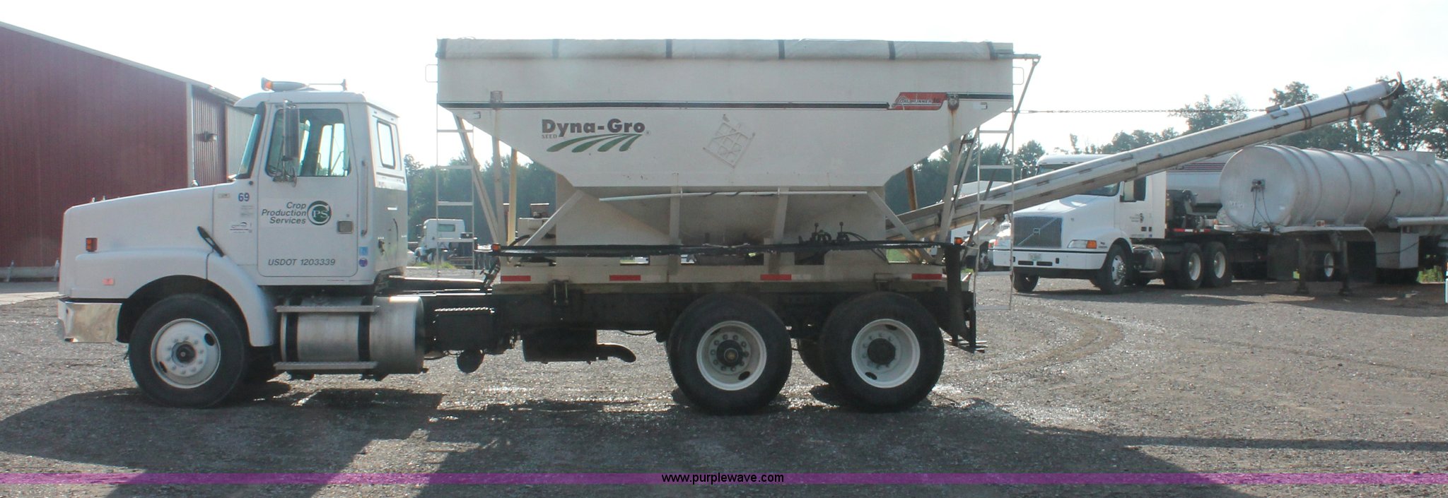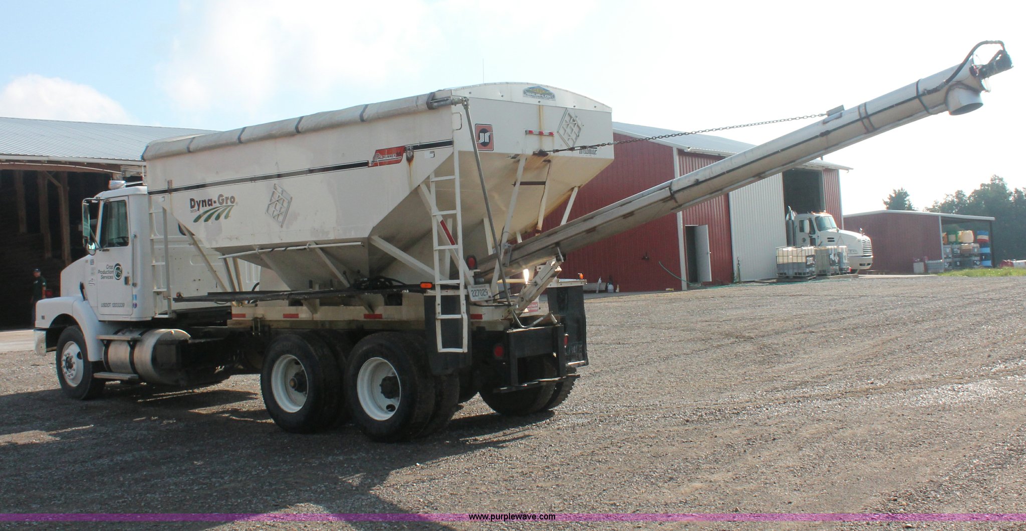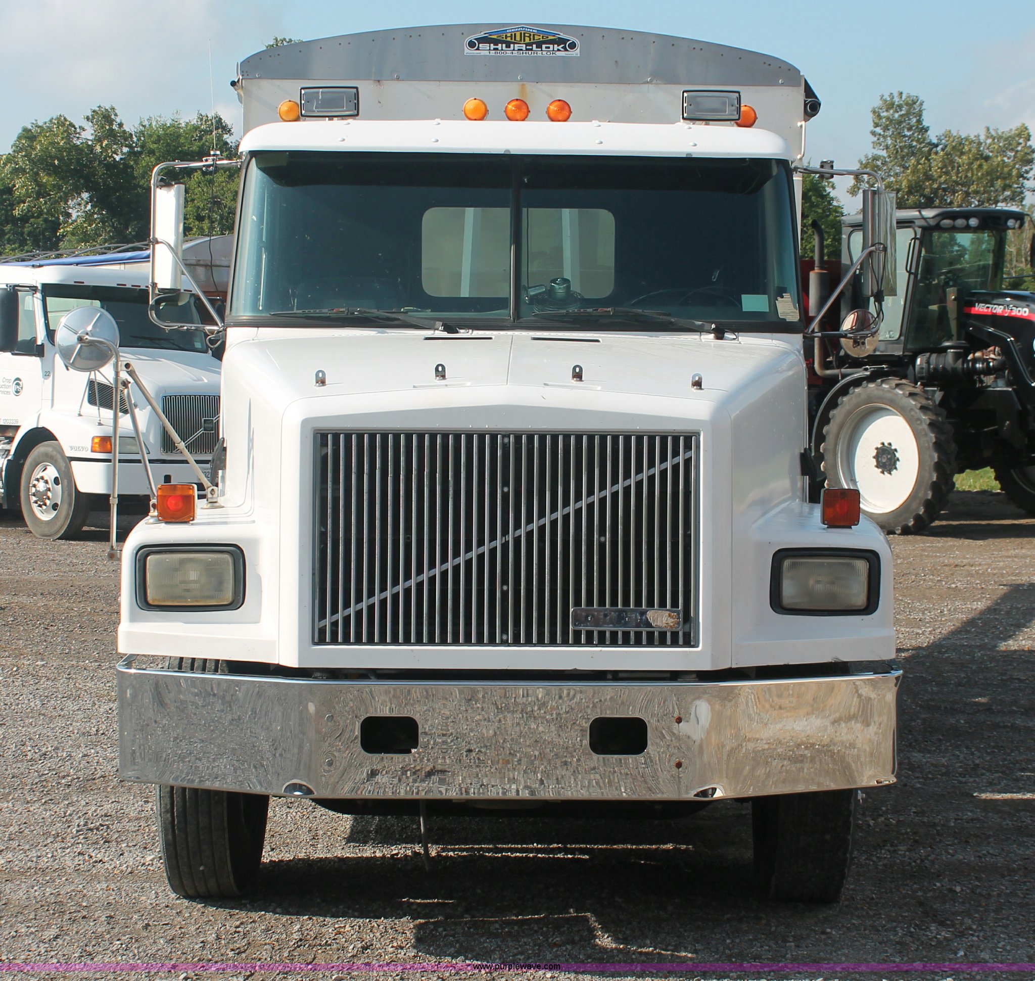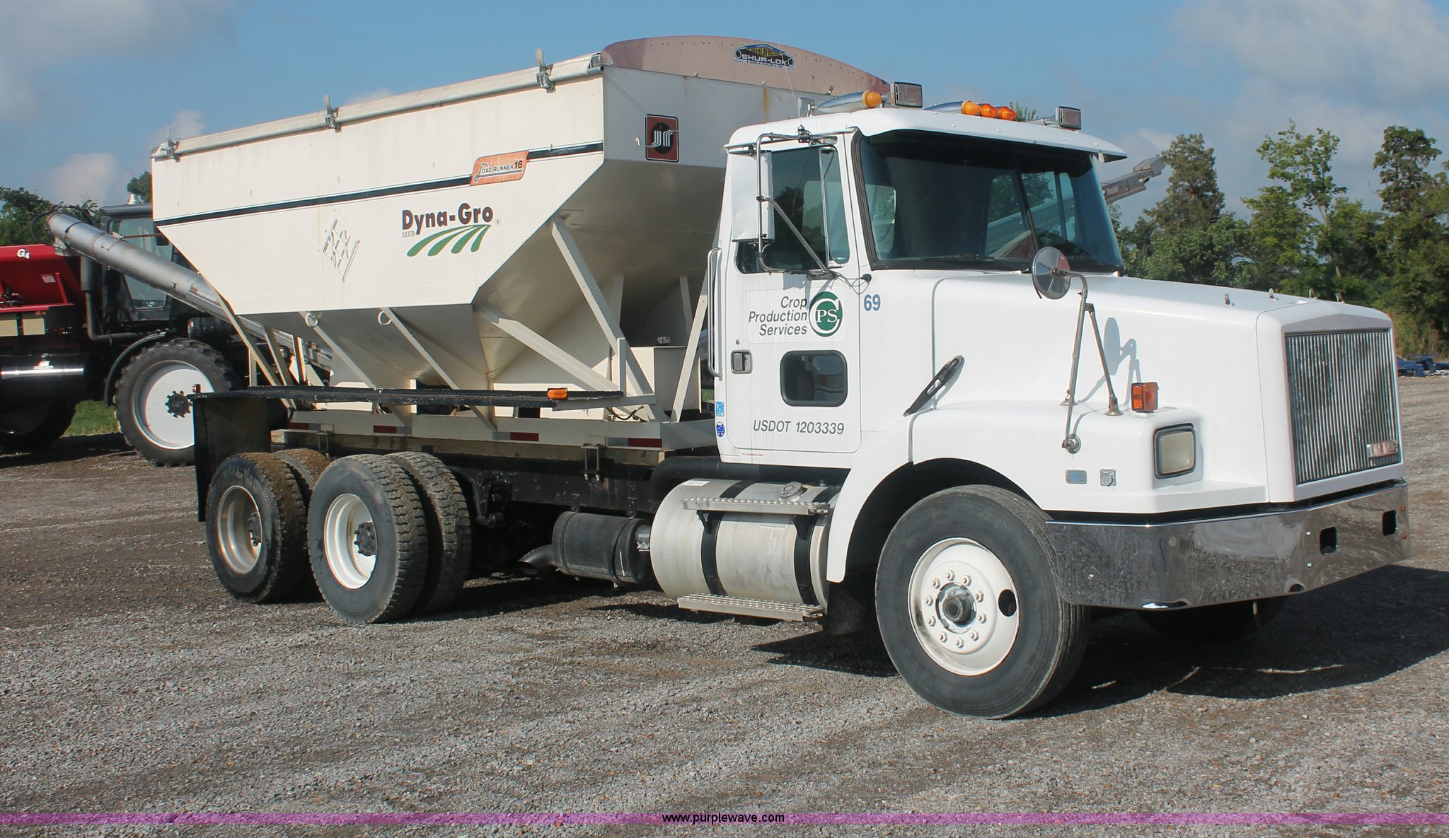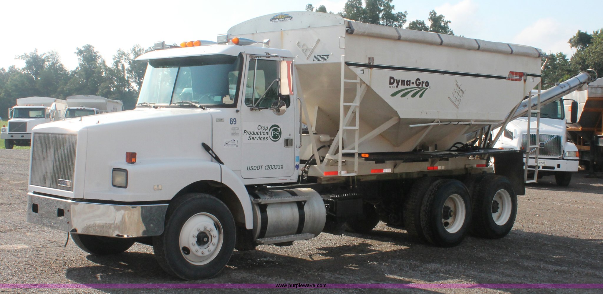 Purple Wave is selling a used Fertilizer or Feed Delivery Truck in Kentucky. This item is a 1992 Volvo WG tender truck with the following: 771,772 miles on odometer, Cummins N14-330P 14.0L L6 diesel engine, 330 HP, Serial 11639224, Eaton Fuller Road Ranger Performance nine speed manual transmission, Differential lock, Fifth wheel lock, AC and heat, AM/FM/cassette, Passenger daylight door, Air suspension seat, Passer power window, Heated mirrors, Motorola CM200 CB radio, Throttle control, Willmar Load Runner 16 tender bed, 16 ton capacity, Tho-Spool control valve, 10" diameter discharge auger, Hydraulic lift, Shur-Lok manual rollover tarp, Dual access ladders, Two compartment, Manual slide hopper doors, Serial 00163026985, Visor, Block heater, Dual 100 gallon fuel tanks, PTO, Wet kit, Spring suspension, Air brakes, 208" wheelbase, 11R22.5 tires, GVWR 50,000 lbs, FAWR 12,000 lbs, IAWR 19,000 lbs, RAWR 19,000 lbs, Unit# 45592