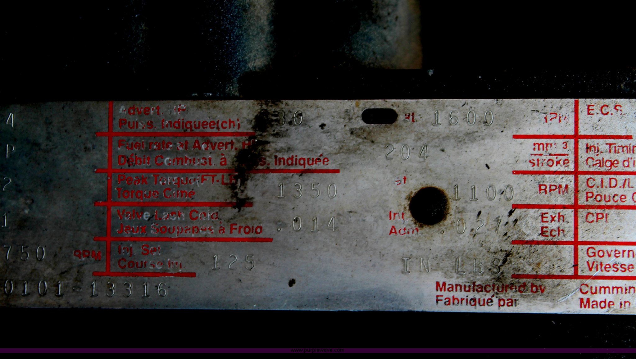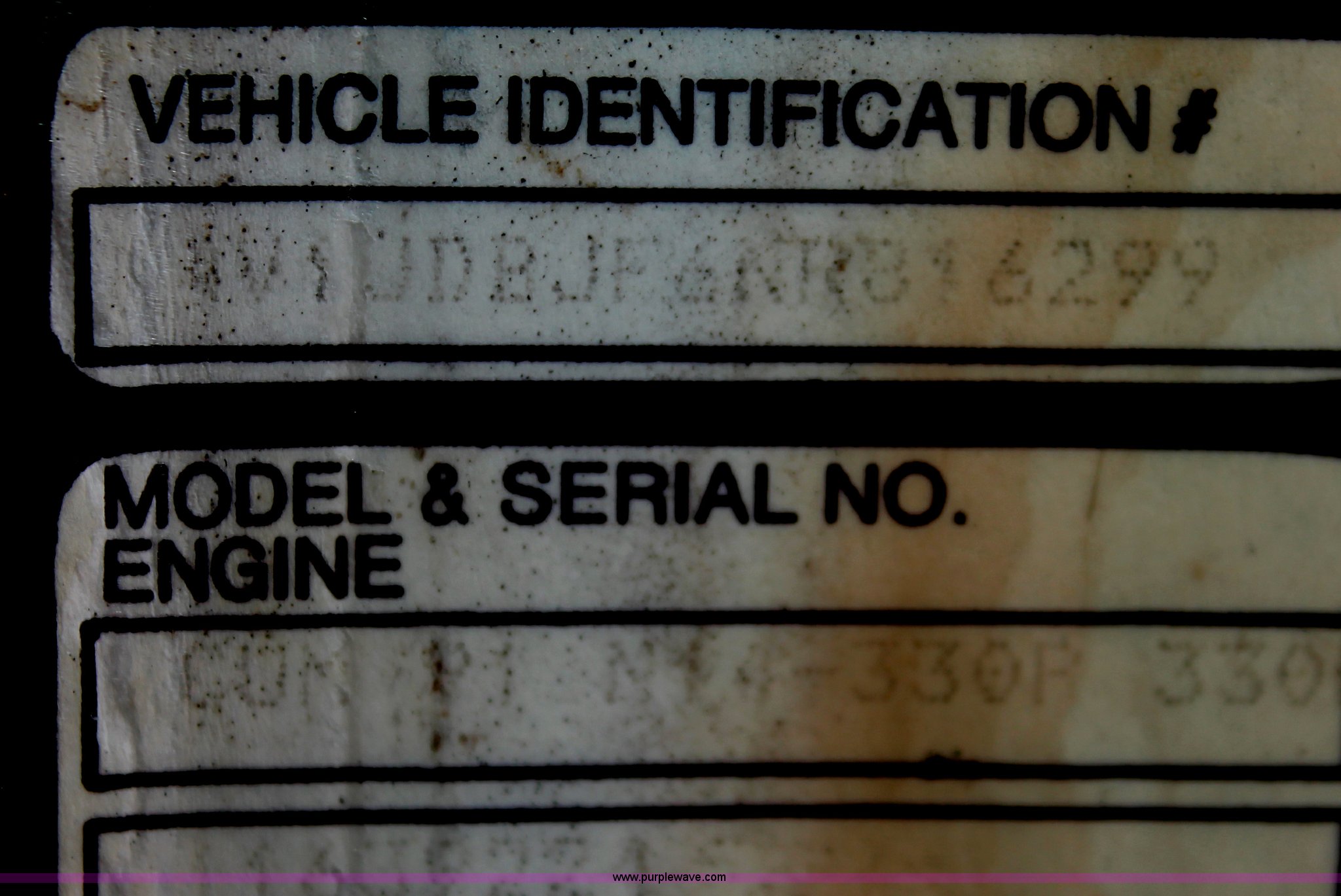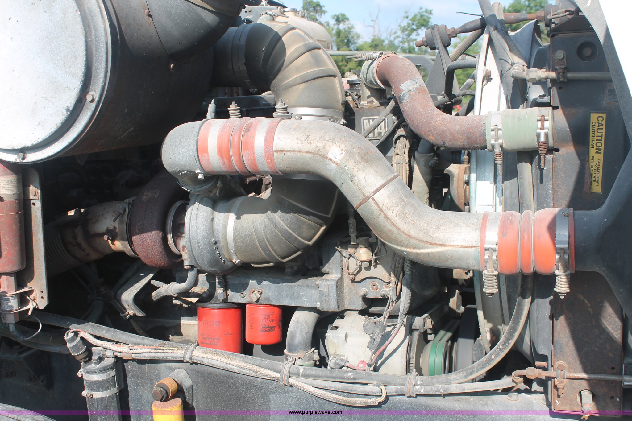 1992 Volvo WG tender truck. 771,772 miles on odometer, Cummins N14-330P 14.0L L6 diesel engine 330 HP, Serial 11639224, Eaton Fuller Road Ranger Performance nine speed manual transmission, Differential lock, Fifth wheel lock, AC and heat, AM/FM/cassette, Passenger daylight door, Air suspension seat, Passer power window, Heated mirrors, Motorola CM200 CB radio, Throttle control, Willmar Load Runner 16 tender bed 16 ton capacity, Tho-Spool control valve, 10" diameter discharge auger, Hydraulic lift, Shur-Lok manual rollover tarp, Dual access ladders, Two compartment, Manual slide hopper doors, Serial 00163026985, Visor, Block heater, Dual 100 gallon fuel tanks, PTO, Wet kit, Spring suspension, Air brakes, 208" wheelbase, 11R22.5 tires, GVWR 50,000 lbs, FAWR 12,000 lbs, IAWR 19,000 lbs, RAWR 19,000 lbs, Unit# 45592. Title distribution may be delayed up to 30 days from verification of funds. 4V1JDBJF6NR816299. Shipping quotes available. Crop Production Services - Fancy Farm. 10693 Kentucky 121 N. Fancy Farm, KY 42039