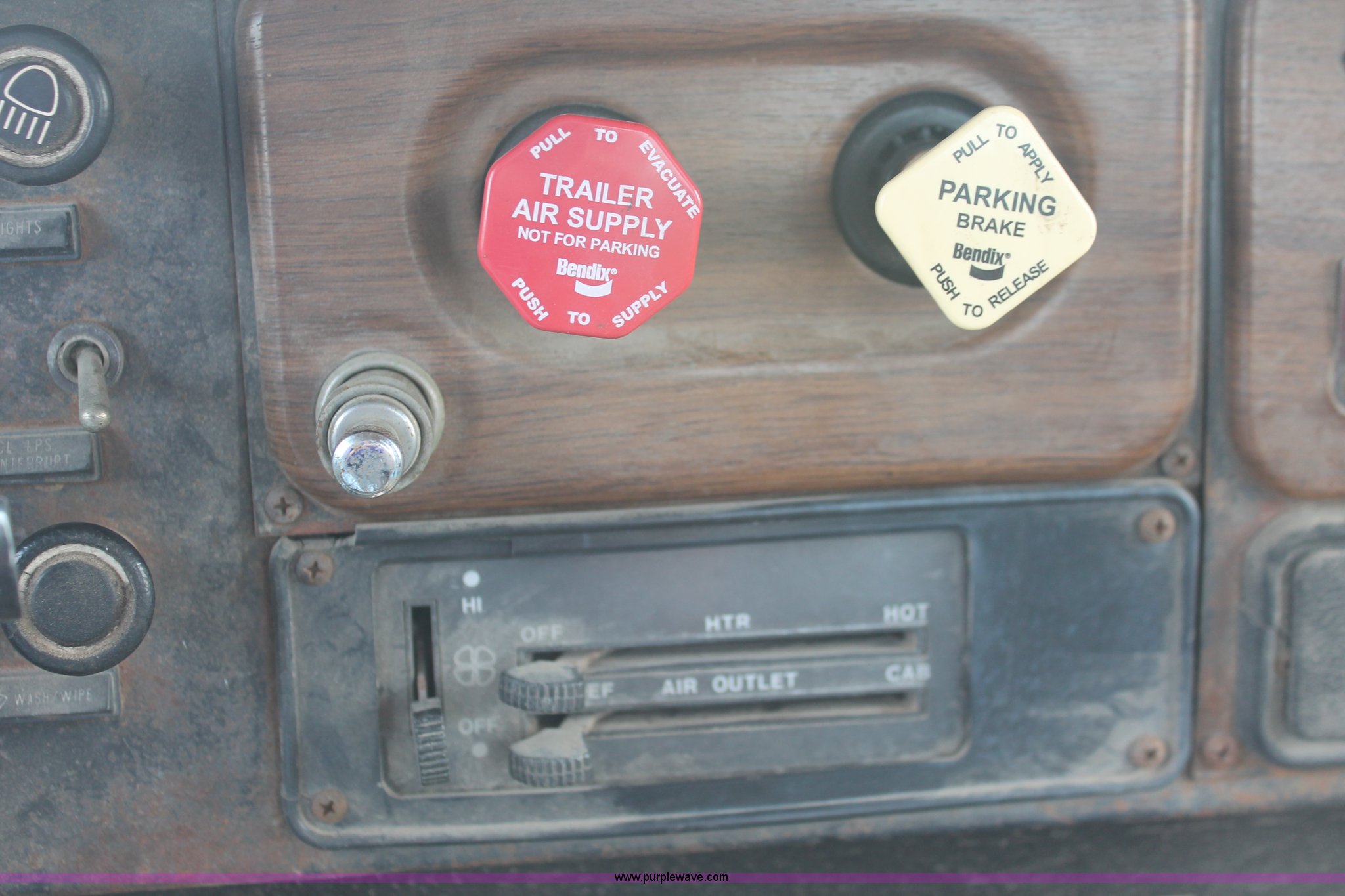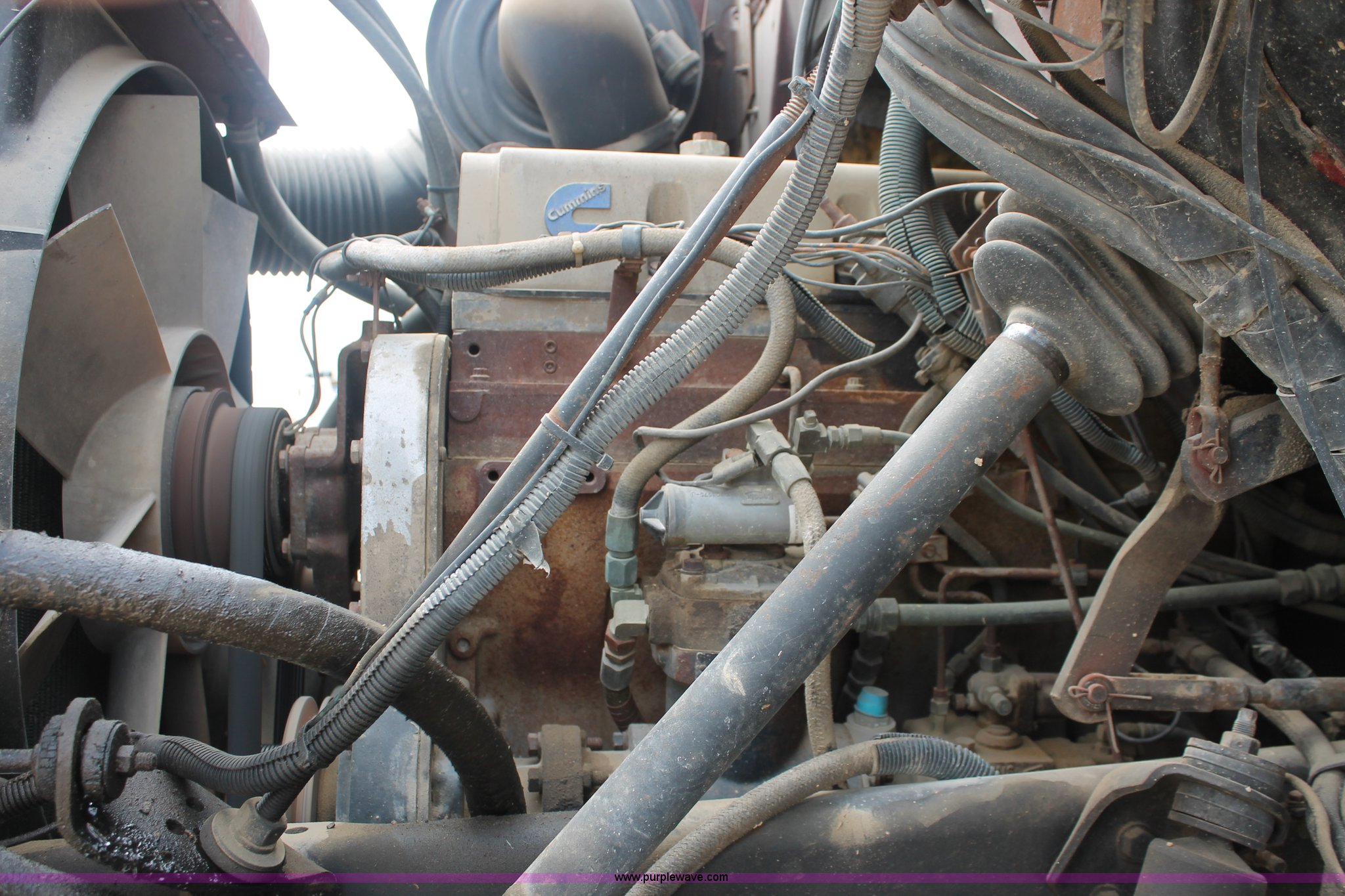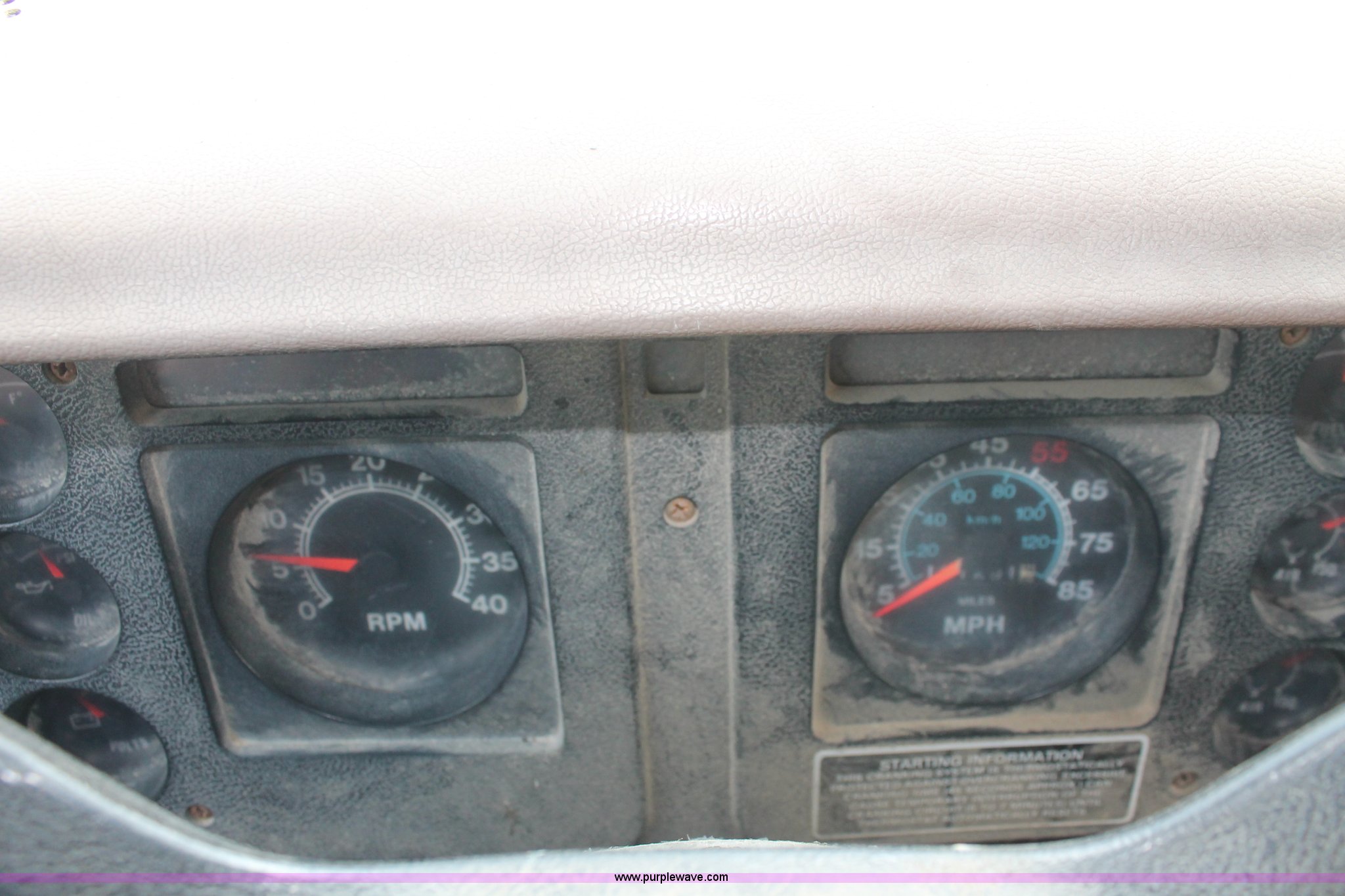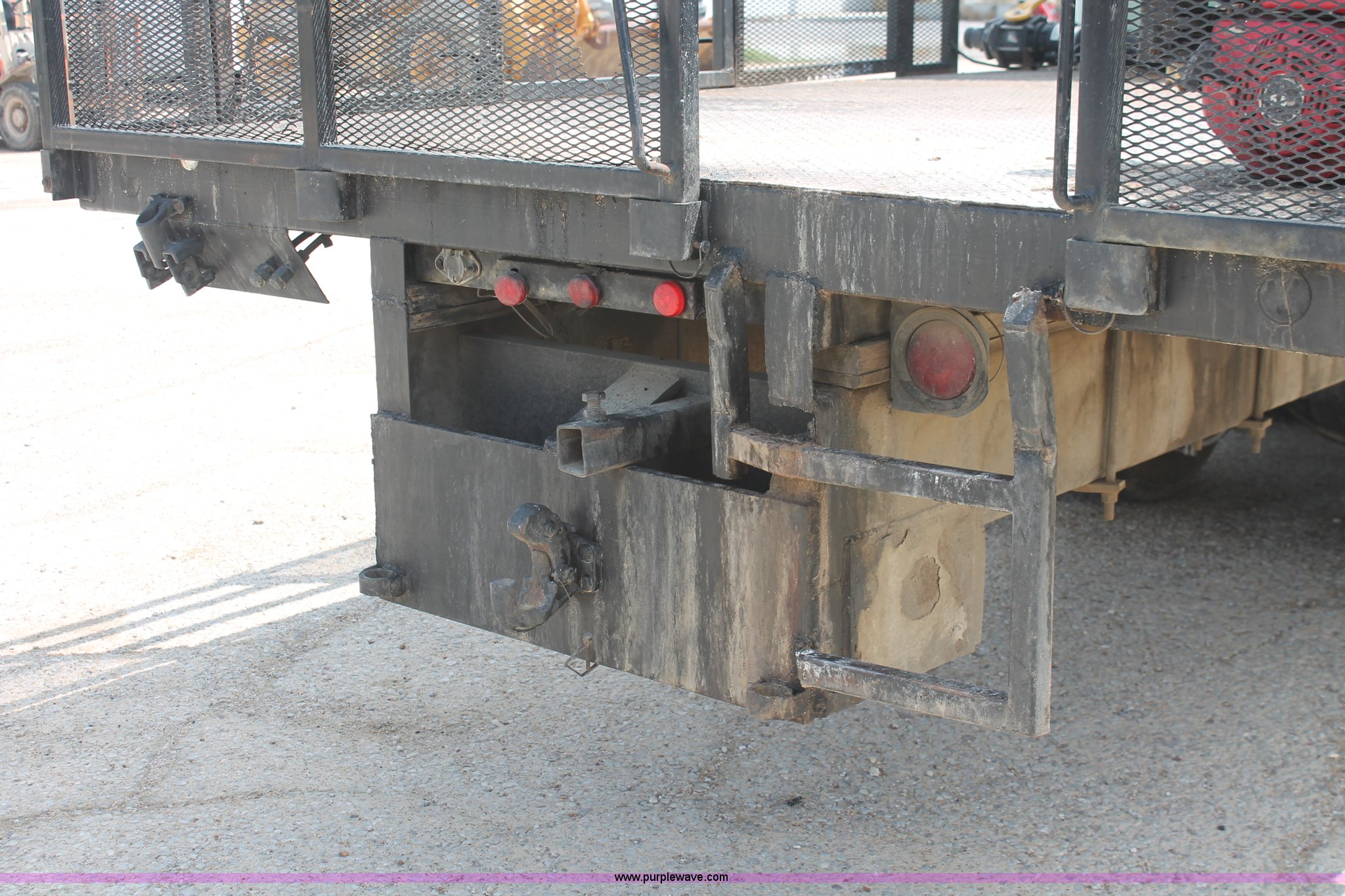 Purple Wave is selling a used Flat Bed Truck in Tennessee. This item is a 1988 International F-2375 flatbed water truck with the following: 101,291 miles on odometer, Cummins L10 10.0L L6 diesel engine, Manual transmission, Heat, Radius CB radio, 25'L x 96"W flatbed, 3,500 gallon poly tank, 60 gallon induction tank, 5.5 HP water pump, 3.5" plumbing, 3'H mess gate, Dual fuel tanks, Single rear exhaust stack, Pintle hitch, Trailer wiring, Spring suspension, Air brakes, 220" wheelbase, 295/75R22.5 tires, GVWR 52,000 lbs, FAWR 12,000 lbs, IAWR 20,000 lbs, RAWR 20,000 lbs, Windshield cracked, Unit# 51089