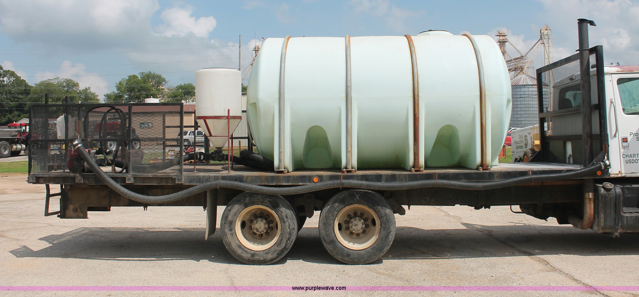 1988 International F-2375 flatbed water truck. 101,291 miles on odometer, Cummins L10 10.0L L6 diesel engine, Manual transmission, Heat, Radius CB radio, 25'L x 96"W flatbed 3,500 gallon poly tank, 60 gallon induction tank, 5.5 HP water pump, 3.5" plumbing, 3'H mess gate, Dual fuel tanks, Single rear exhaust stack, Pintle hitch, Trailer wiring, Spring suspension, Air brakes, 220" wheelbase, 295/75R22.5 tires, GVWR 52,000 lbs, FAWR 12,000 lbs, IAWR 20,000 lbs, RAWR 20,000 lbs, Windshield cracked, Unit# 51089. Title distribution may be delayed up to 30 days from verification of funds. 1HSZEGGR4JH531914. Shipping quotes available. Crop Production Services - Union City. 530 N 5th Street. Union City, TN 38261