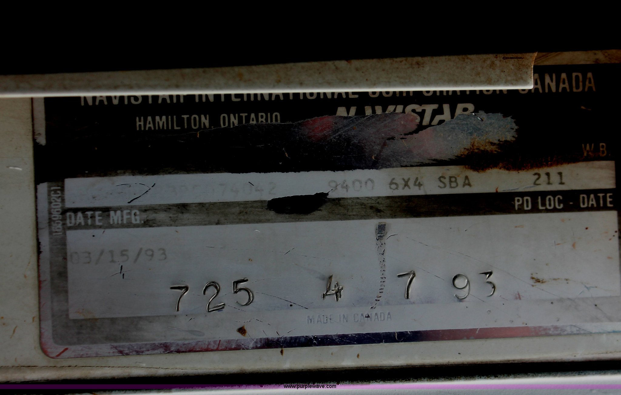 1993 International 9400 semi truck has sold in Whiteville, Tennessee for $6600. Item I7898 sold on August 27th, 2013.