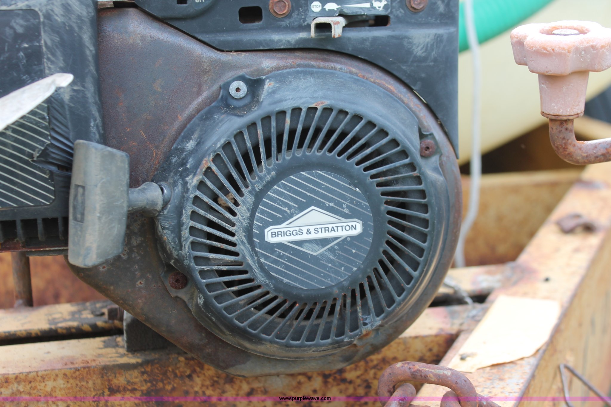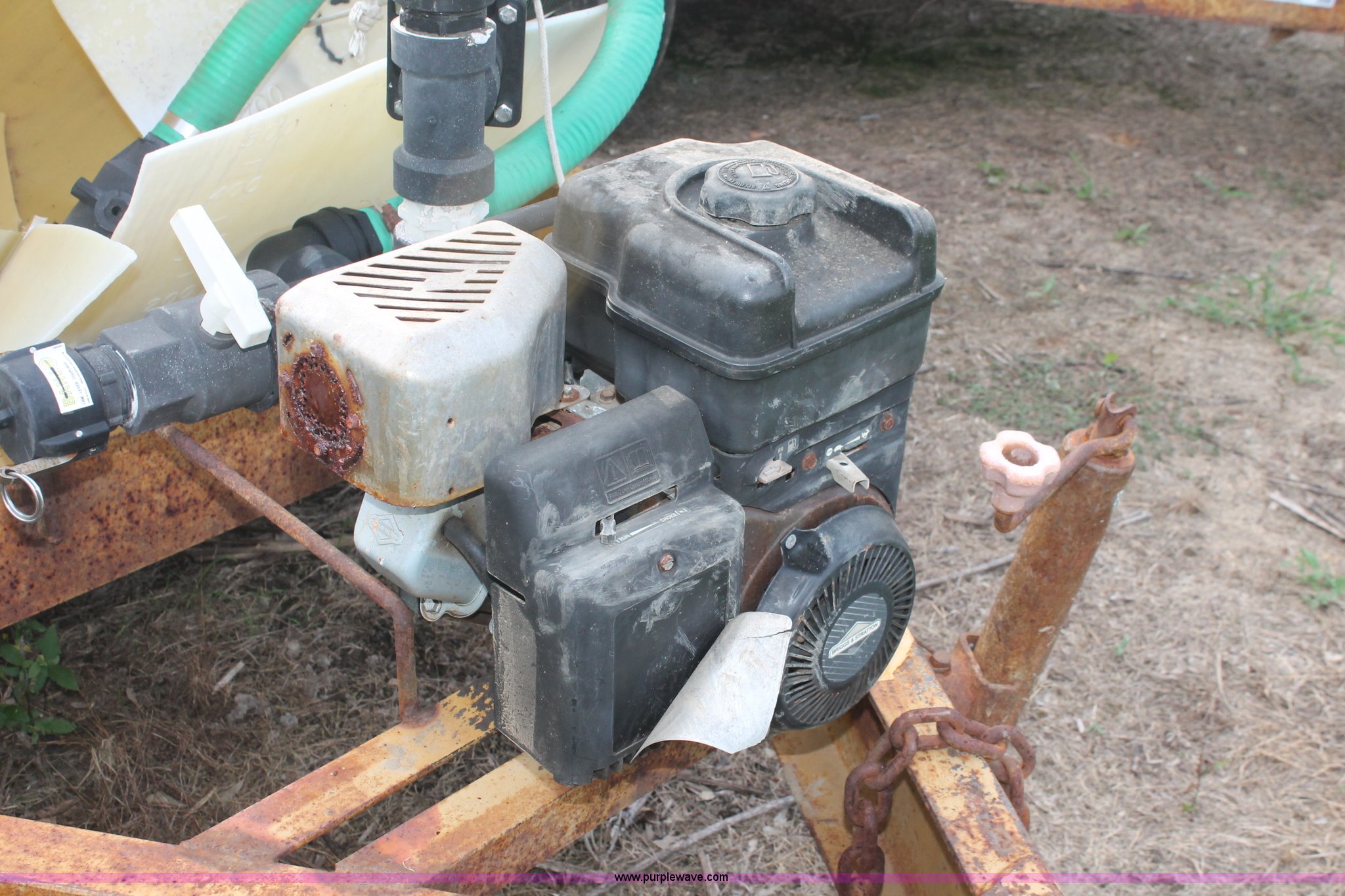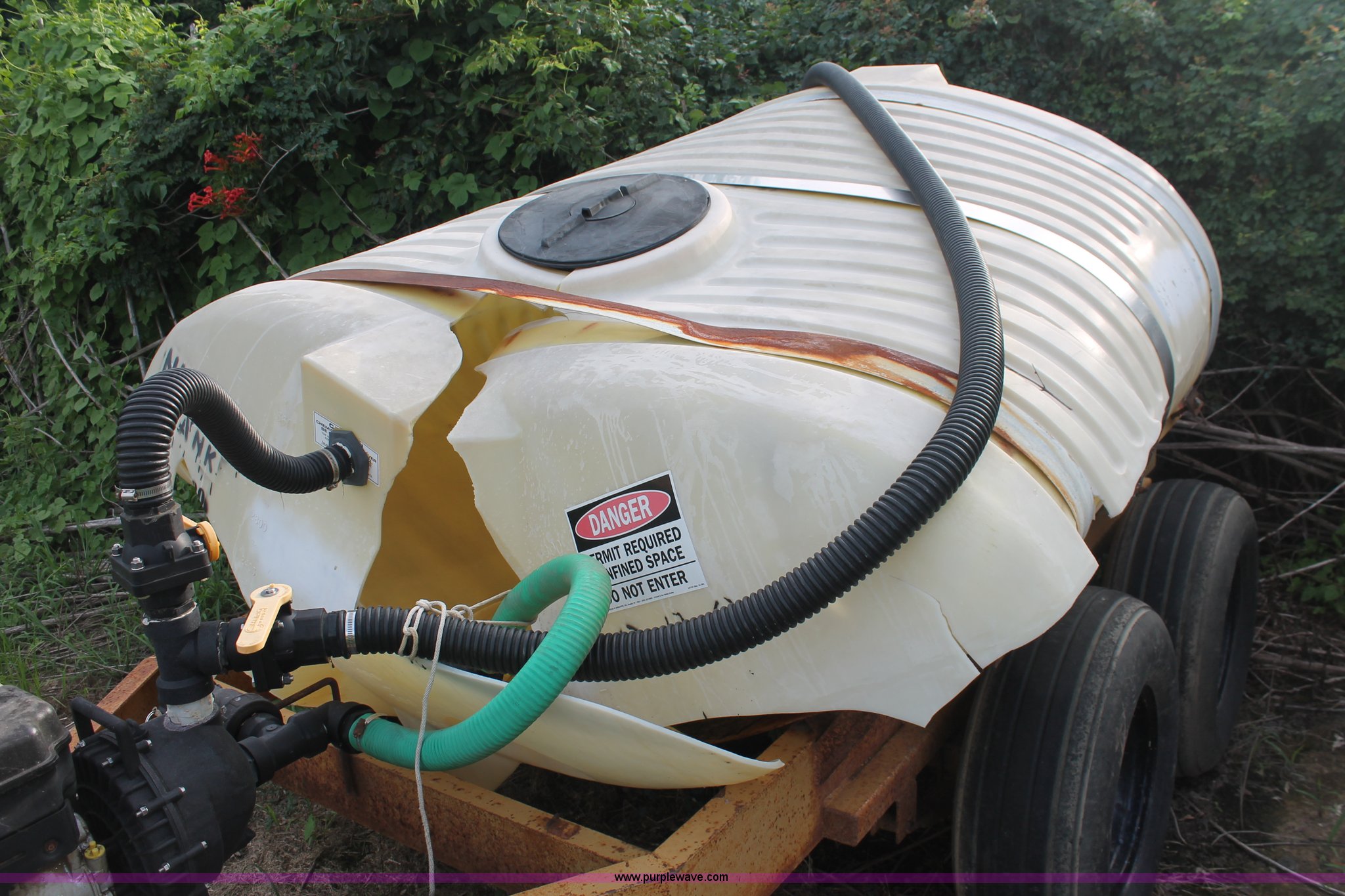 Purple Wave is selling a used Tank Trailer in Louisiana. This item is a 1,000 gallon liquid nurse trailer with the following: Briggs & Stratton 5.5 HP gas engine, Poly tank, 2" plumbing, Shut-off valves, Height adjustable pin hitch, 11L-15 tires, Tank is cracked, Unit# 86240