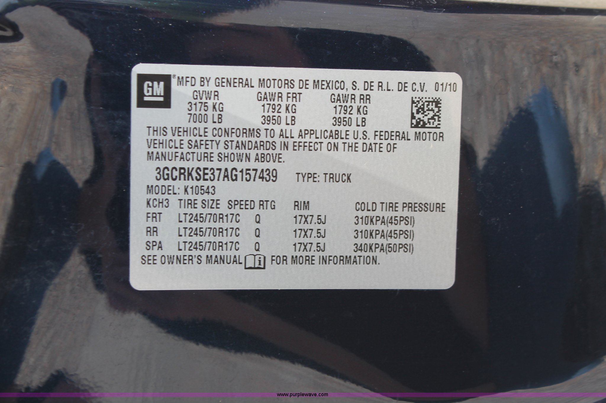 Purple Wave is selling a used 1/2 Ton Pickup or Van in Louisiana. This item is a 2010 Chevrolet Silverado 1500 LT Crew Cab pickup truck with the following: 101,755 miles on odometer, 5.3L V8 OHV 16V FFV gas engine, Automatic transmission, Four wheel drive, AC and heat, Tilt, Cruise, AM/FM/CD, Auxiliary audio input, Power windows, locks, and mirrors, Cloth interior, Stabilitrak traction control, Foot pedal adjustment, Front tow hooks, Rubber bed mat, Receiver hitch, Trailer wiring, Firestone Transforce AT LT245/70R17 tires, Traction control, stabilitrak, and park assist function service light on, Unit# 16726