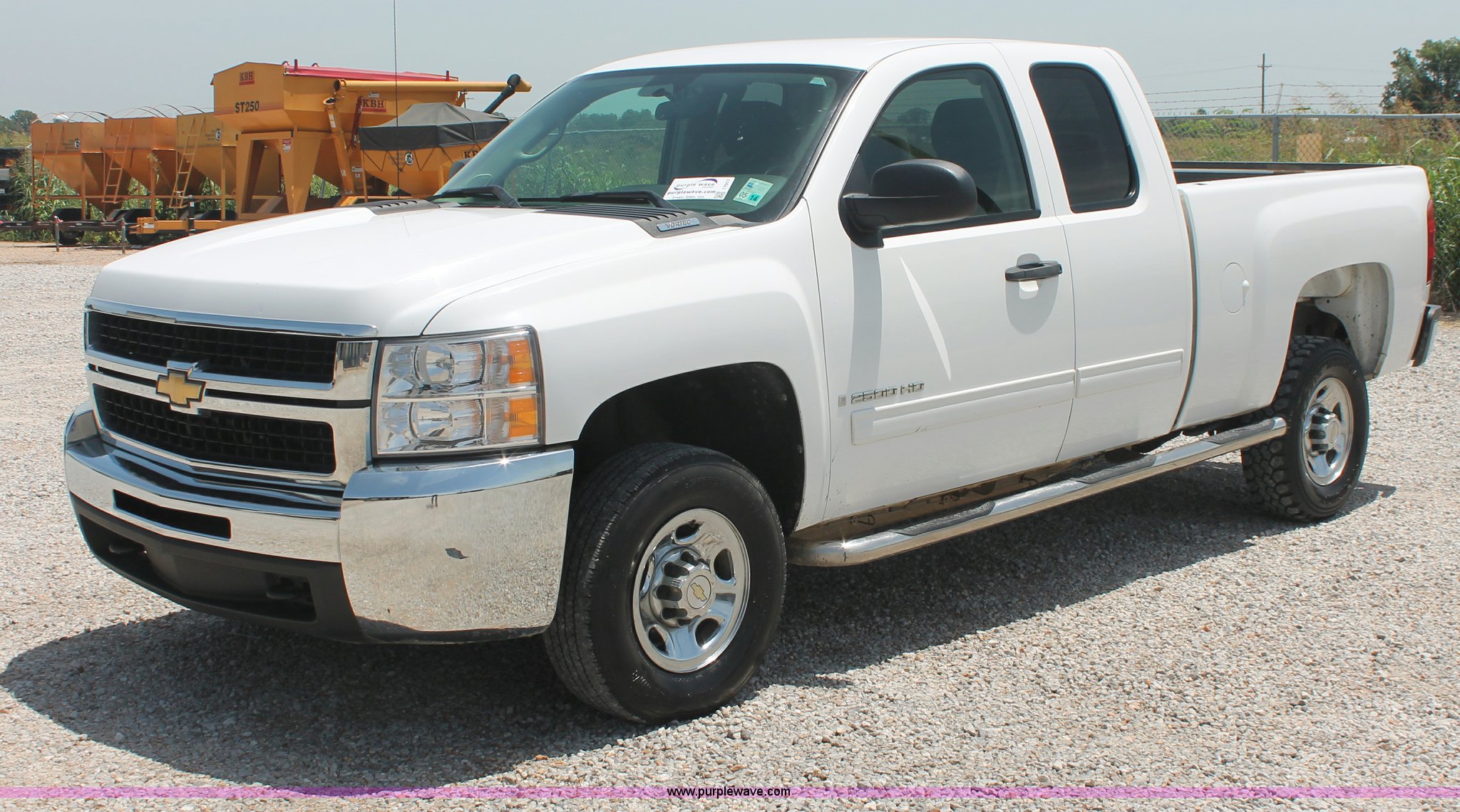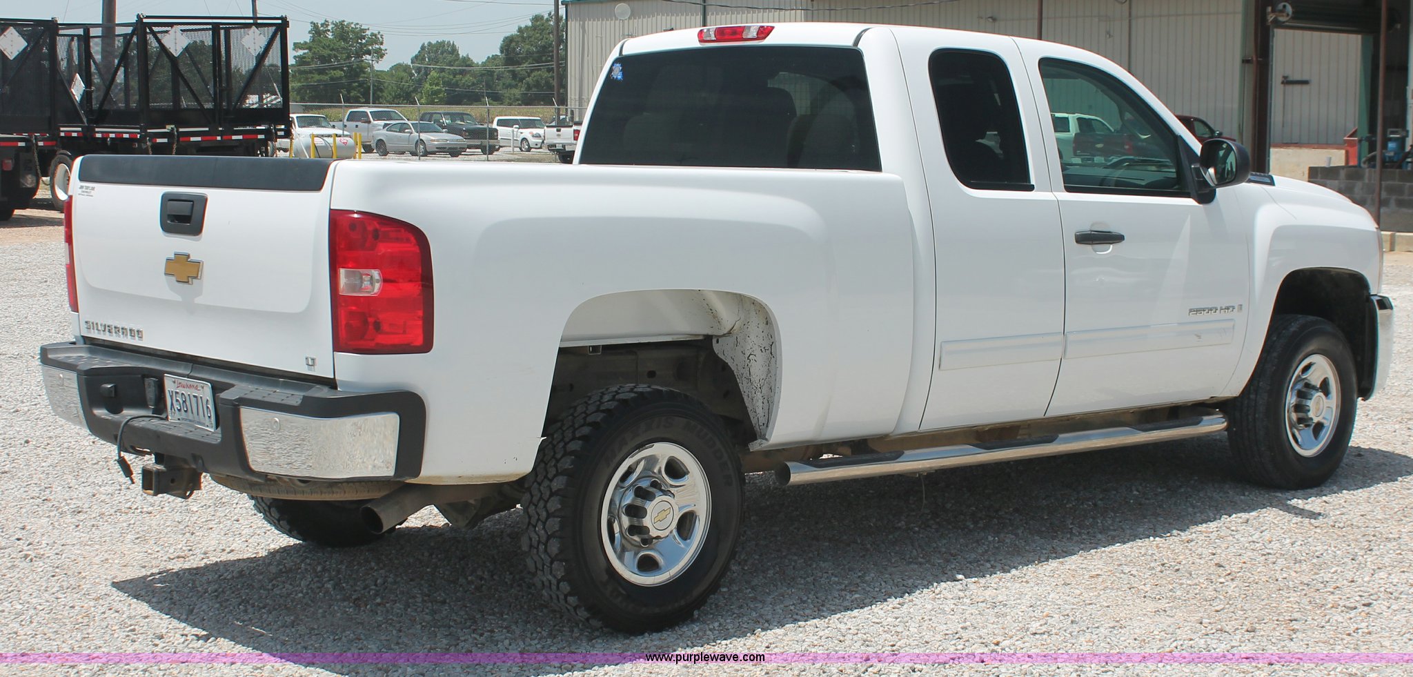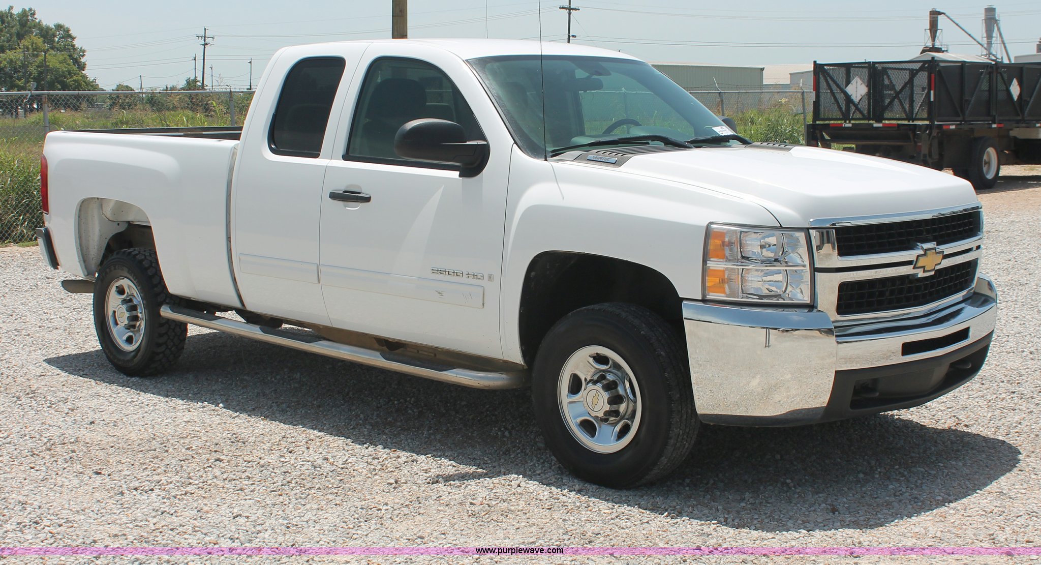 Purple Wave is selling a used 3/4 or 1 Ton Pickup or Van in Louisiana. This item is a 2009 Chevrolet Silverado 2500HD LT Extended Cab pickup truck with the following: 99,768 miles on odometer, 6.0L V8 OHV 16V gas engine, Automatic transmission, AC and heat, Tilt, Cruise, AM/FM/CD, Auxiliary audio input, Power windows, locks, and mirrors, Cloth interior, Brake controller, Stabilitrak traction control, Foot pedal adjustment, Front tow hooks, CAWS nerf bars, Receiver hitch, Trailer wiring, Bridgestone V-Steel LT245/75R16 front tires, Buckshot Maxxis Mudder LT245/75R16 rear tires, Check engine light on, Windshield bubble, Unit# 14521