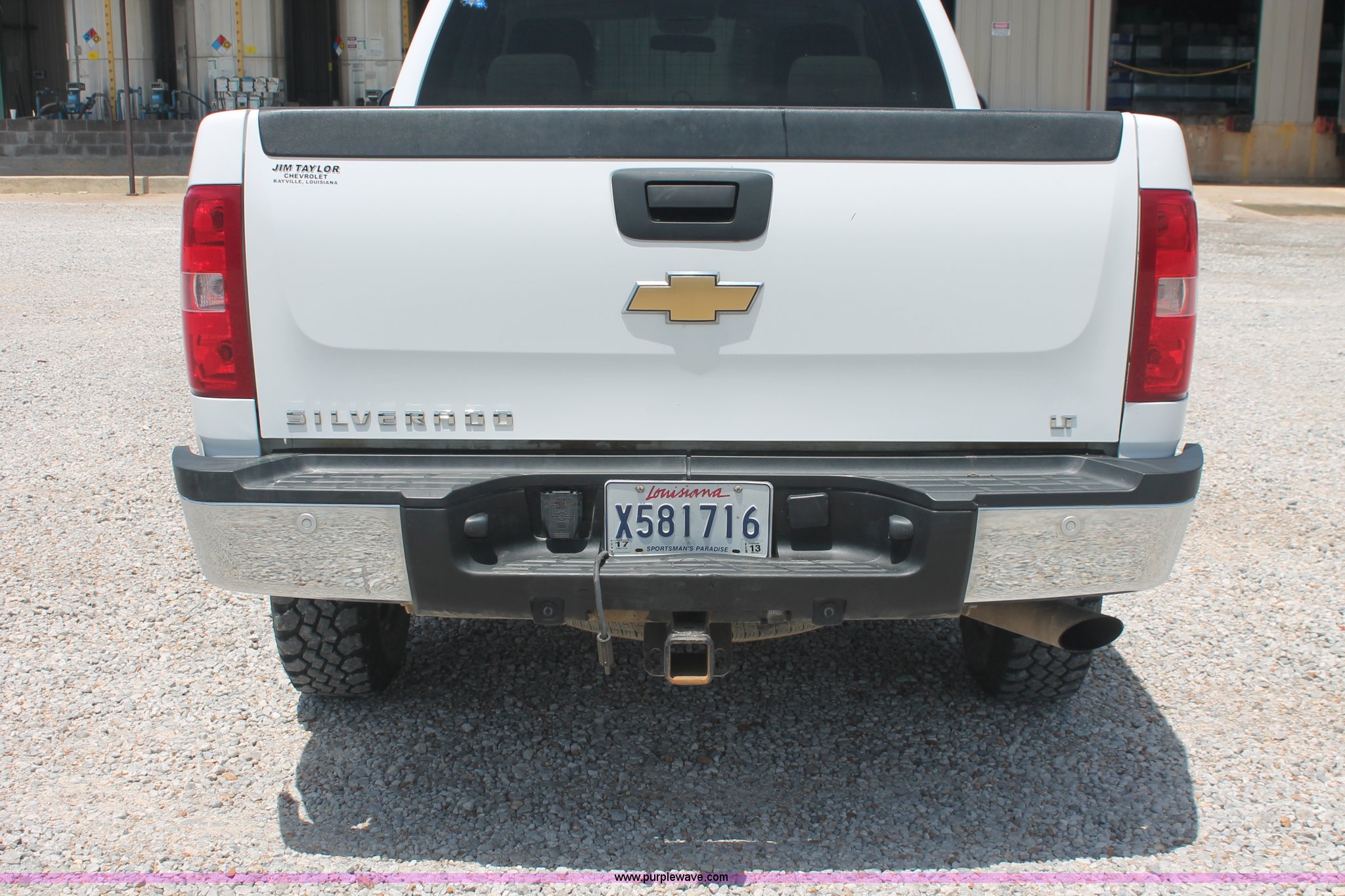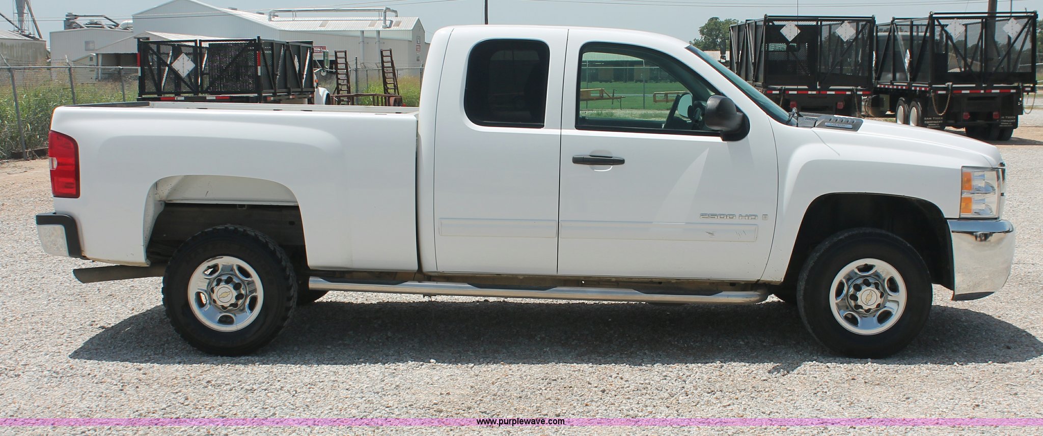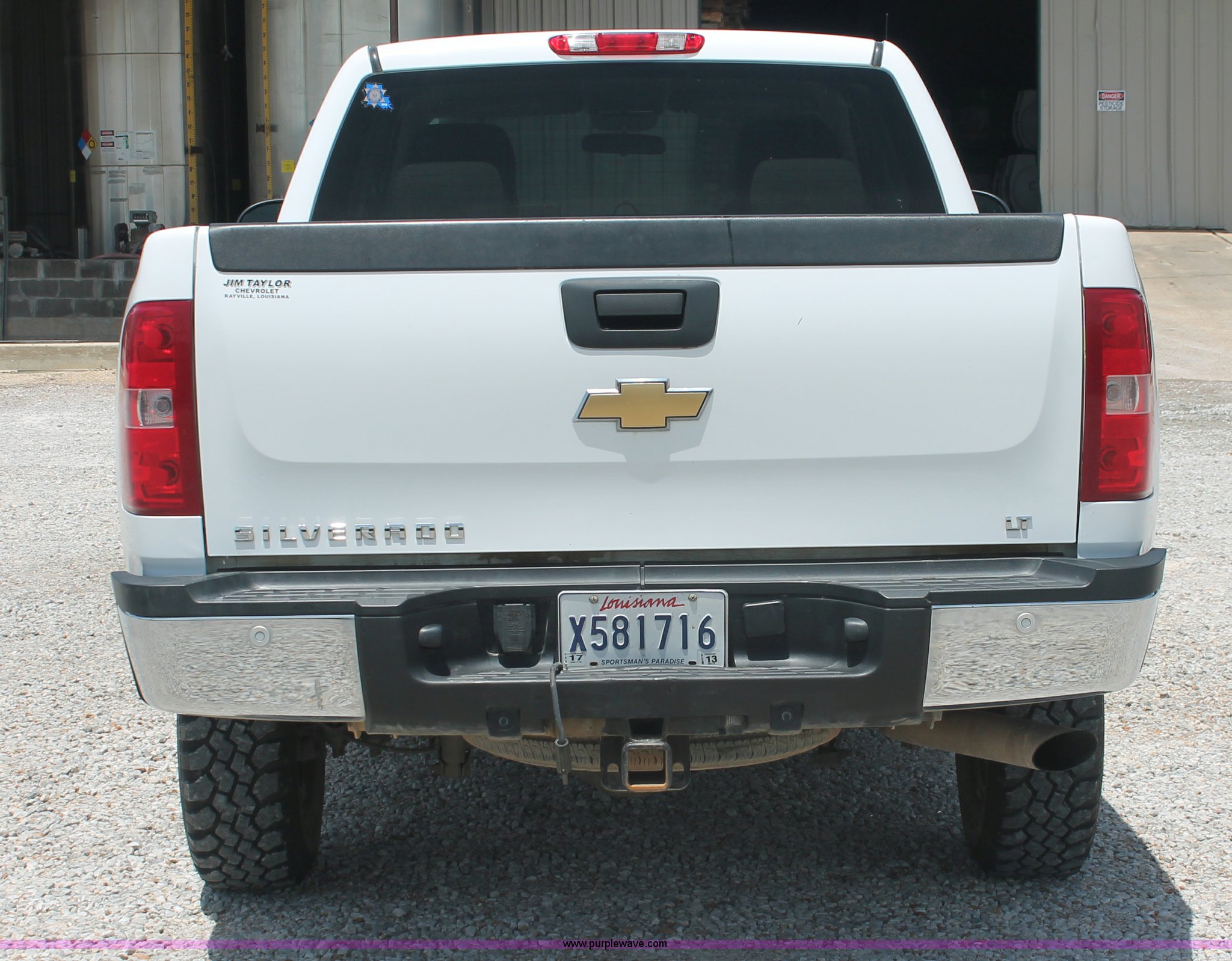 Purple Wave is selling a used 3/4 or 1 Ton Pickup or Van in Louisiana. This item is a 2009 Chevrolet Silverado 2500HD LT Extended Cab pickup truck with the following: 99,768 miles on odometer, 6.0L V8 OHV 16V gas engine, Automatic transmission, AC and heat, Tilt, Cruise, AM/FM/CD, Auxiliary audio input, Power windows, locks, and mirrors, Cloth interior, Brake controller, Stabilitrak traction control, Foot pedal adjustment, Front tow hooks, CAWS nerf bars, Receiver hitch, Trailer wiring, Bridgestone V-Steel LT245/75R16 front tires, Buckshot Maxxis Mudder LT245/75R16 rear tires, Check engine light on, Windshield bubble, Unit# 14521
