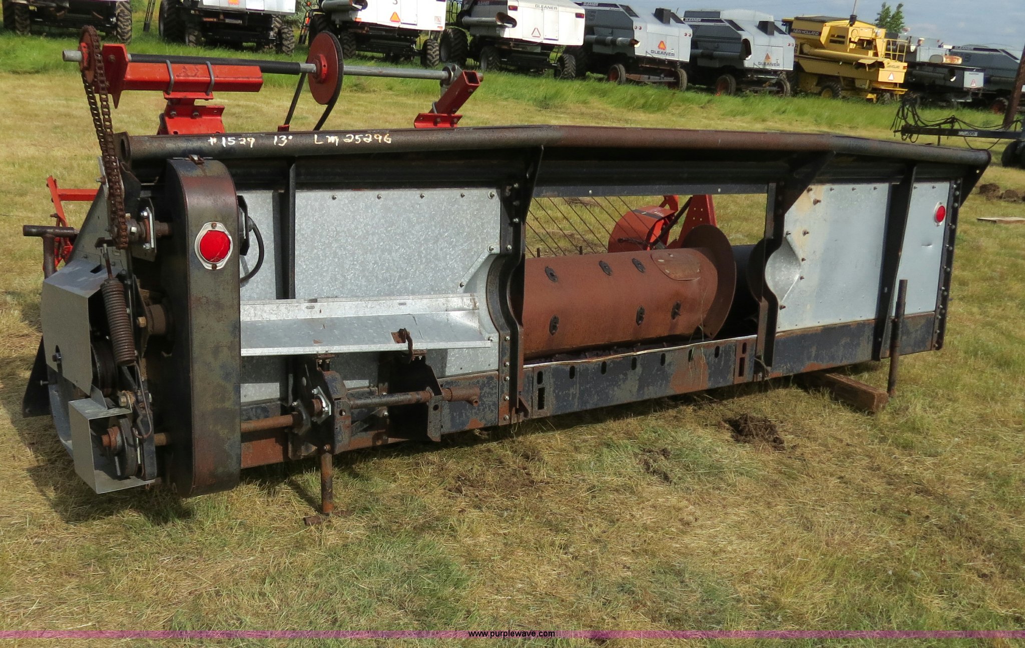 Purple Wave is selling a used Platform or Stripper Head in North Dakota. This item is a Gleaner 13 pickup head with the following: 13'W, Melroe 351 pickup attachment, 9'W, Serial MB16295, Serial LM2529
