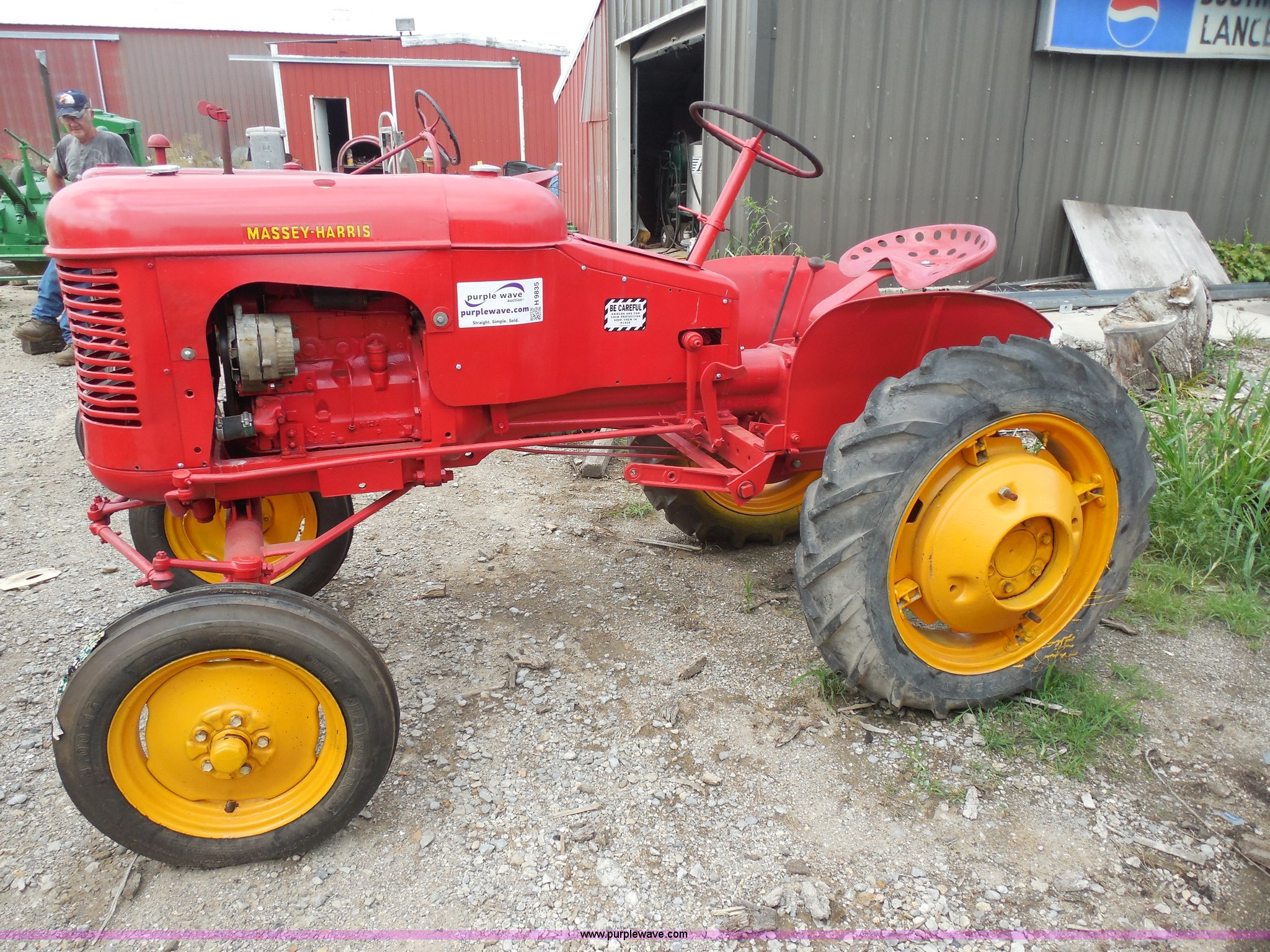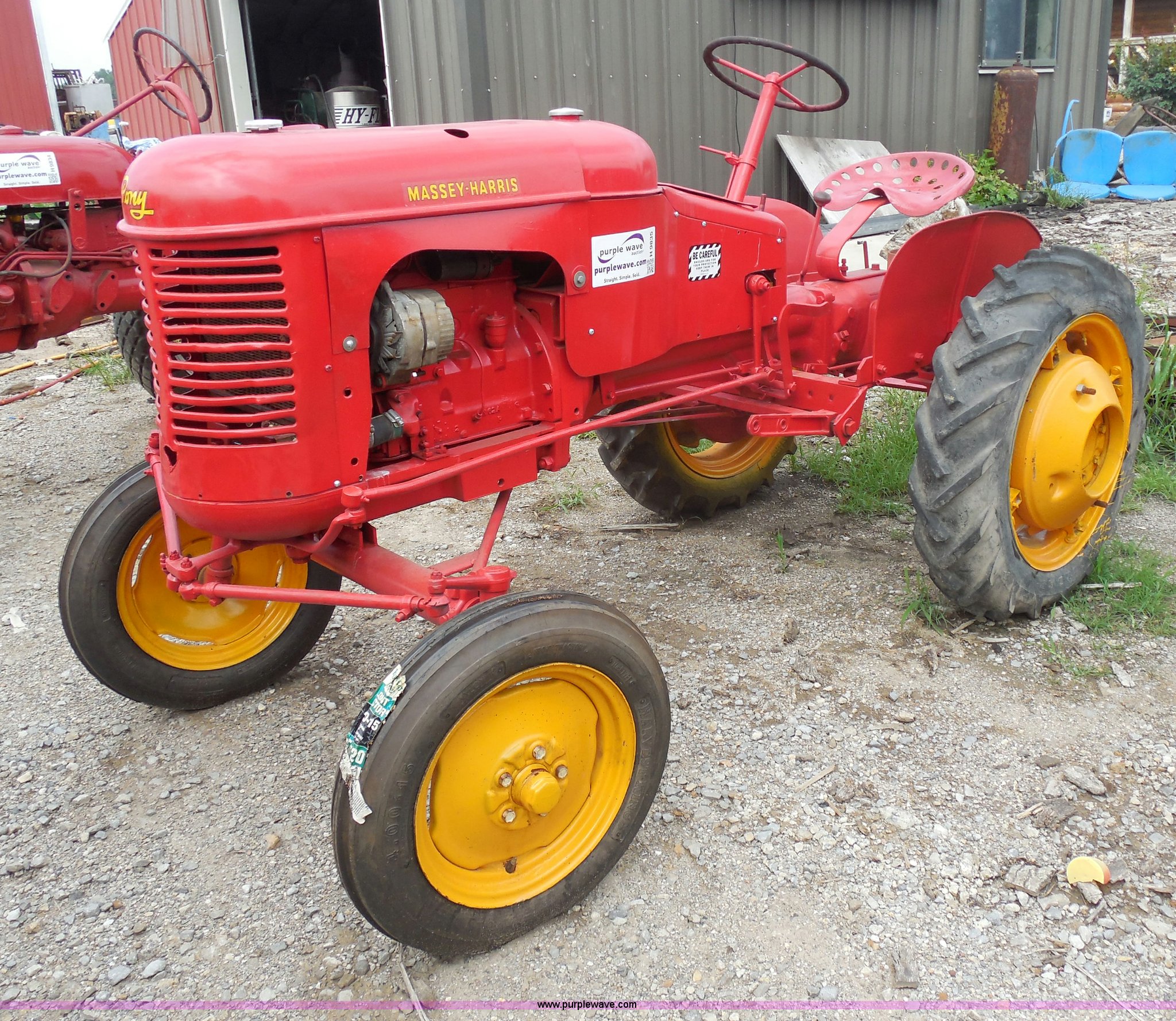 Purple Wave is selling a used Tractor in Kansas. This item is a Massey-Harris Pony tractor with the following: Continental N62 four cylinder gas engine, Serial 55927, Manual transmission, 3F gears, 540 PTO, Recently replaced 4.00-15 front tires, 8.3-24 rear tires