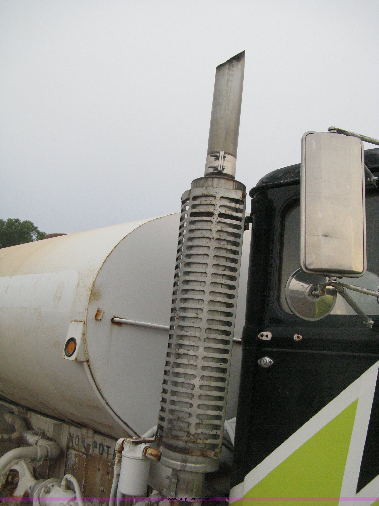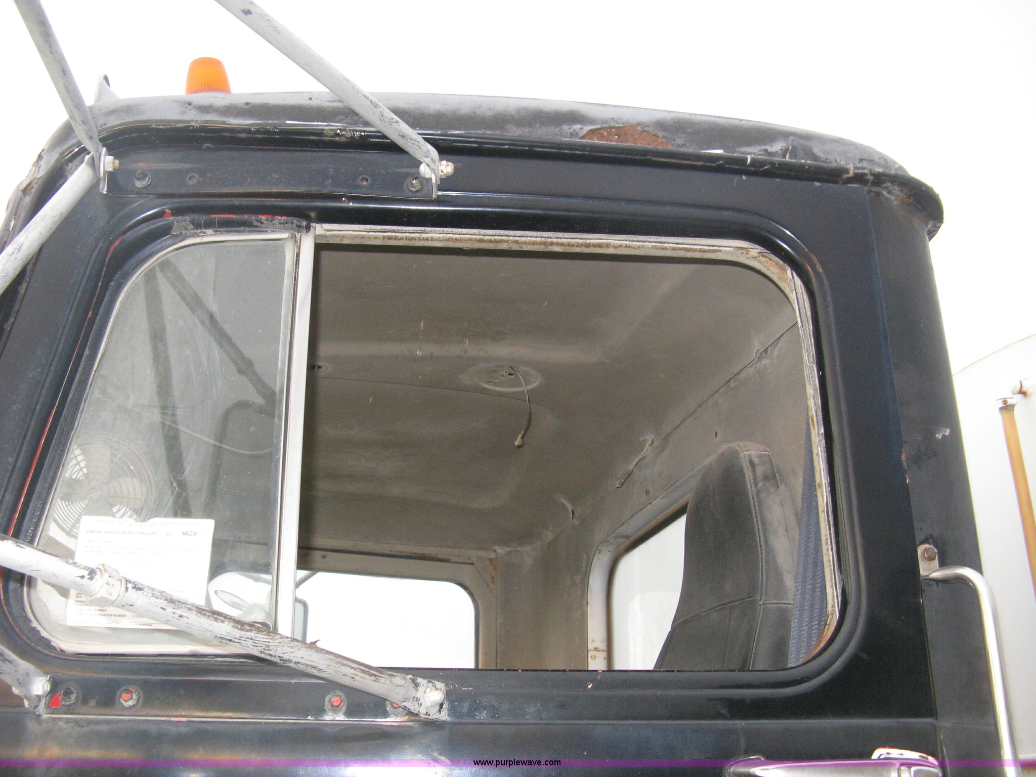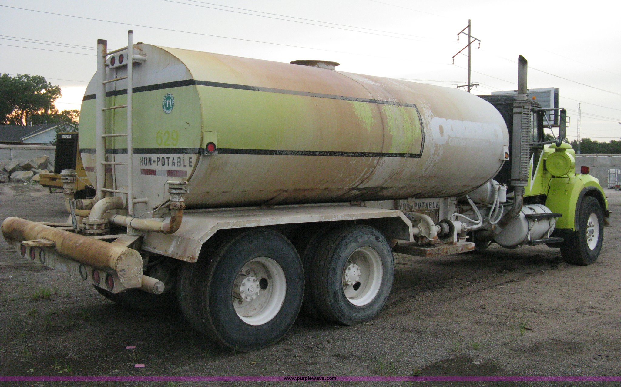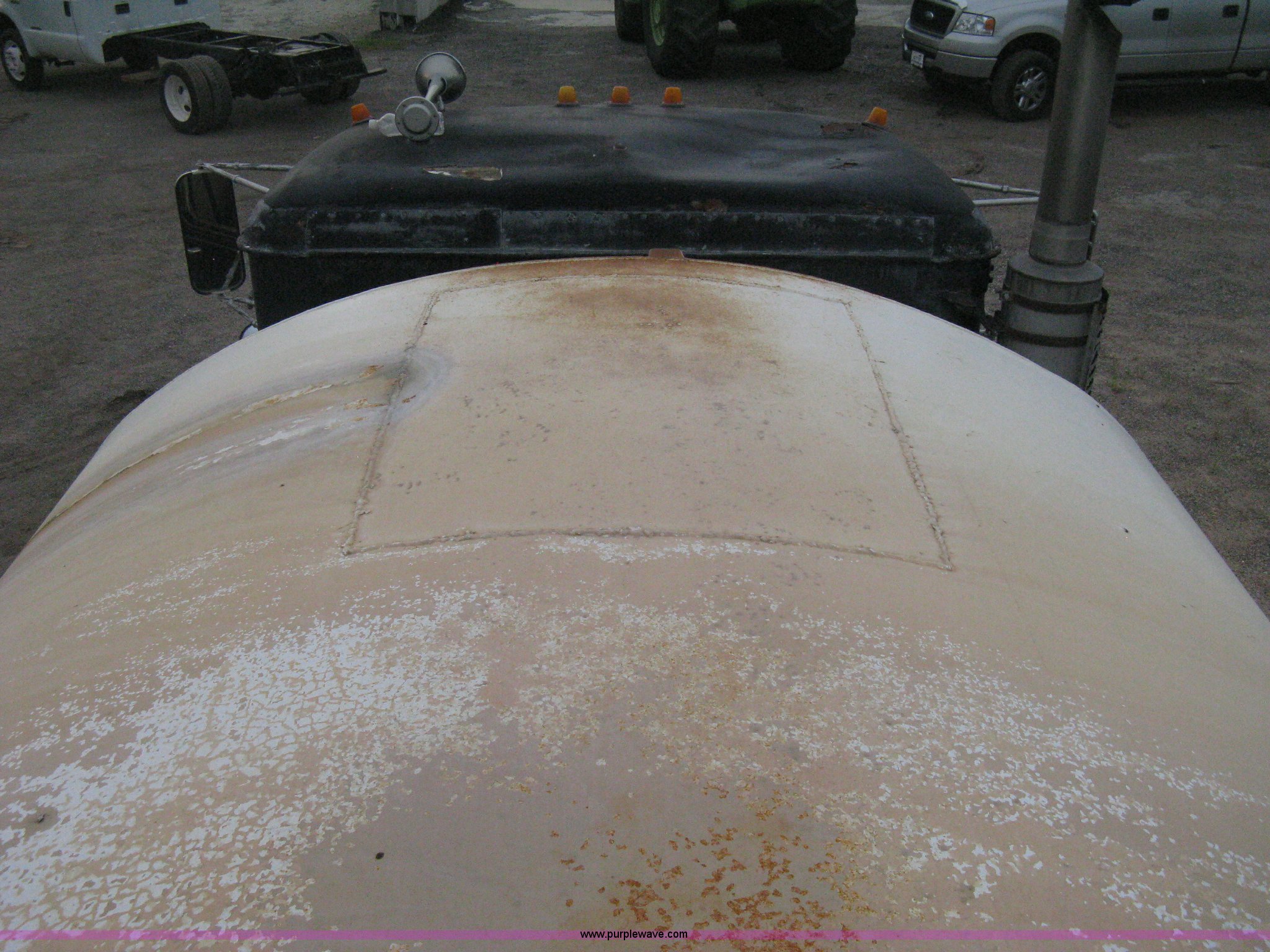 Purple Wave is selling a used Tank Truck or Water Truck in Kansas. This item is a 1977 White Western Star water tanker truck with the following: 432,997 miles on odometer, Not Actual Mileage, 2,233 hours on meter, 3306-PC7 diesel engine, Eaton Fuller RT0-958LL eight speed manual transmission, Deep reduction, Full screw, Heat, Air suspension seat, Single fuel tank, Single rear exhaust stack, PTO, Rear tow bumper, Air suspension, Air brakes, 236" wheelbase, 425/65R22.5 front tires, 295/75R22.5 rear tires, Interior/exterior cosmetic damage, Windshield cracked, Passenger side door handle missing, Driver's side window is rolled down, Will not raise, Brakes need work, Unit# 48.629
