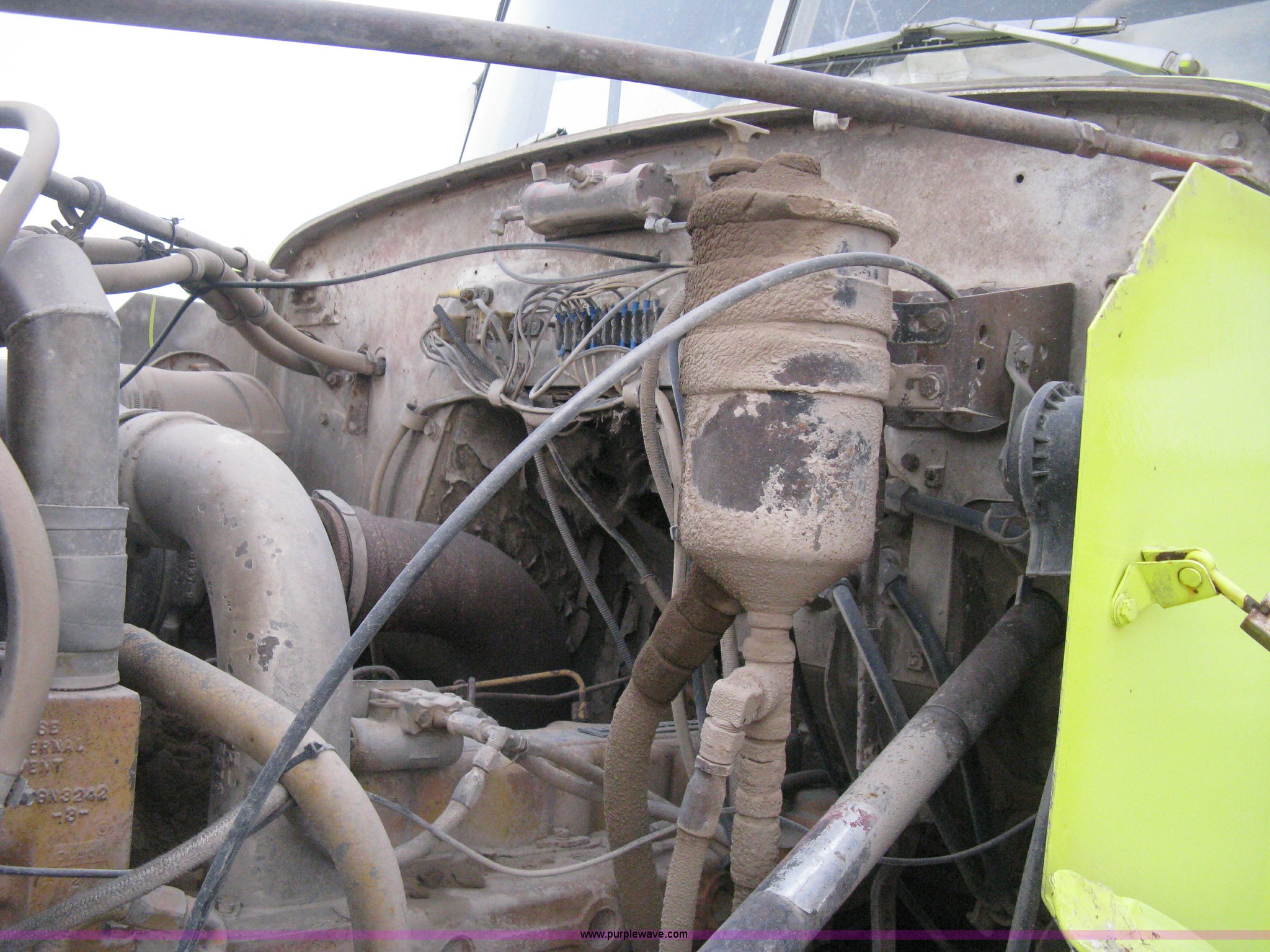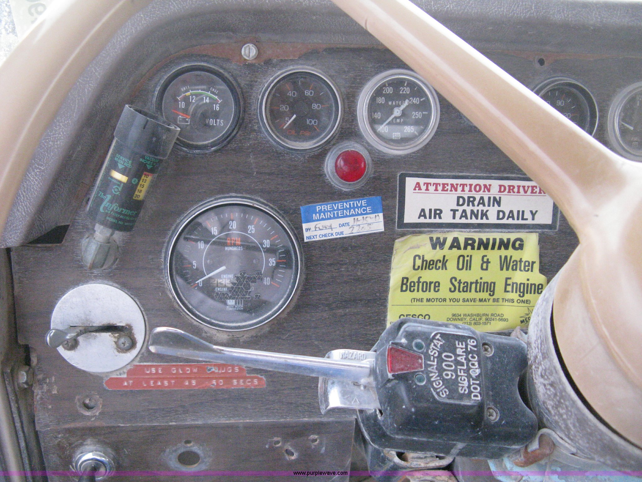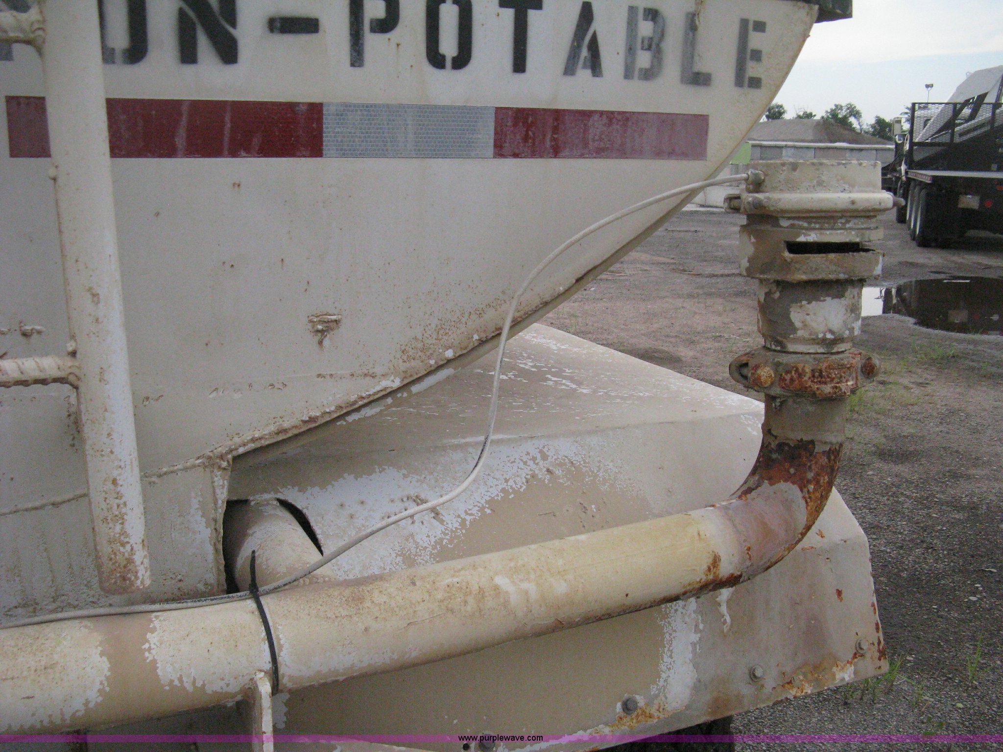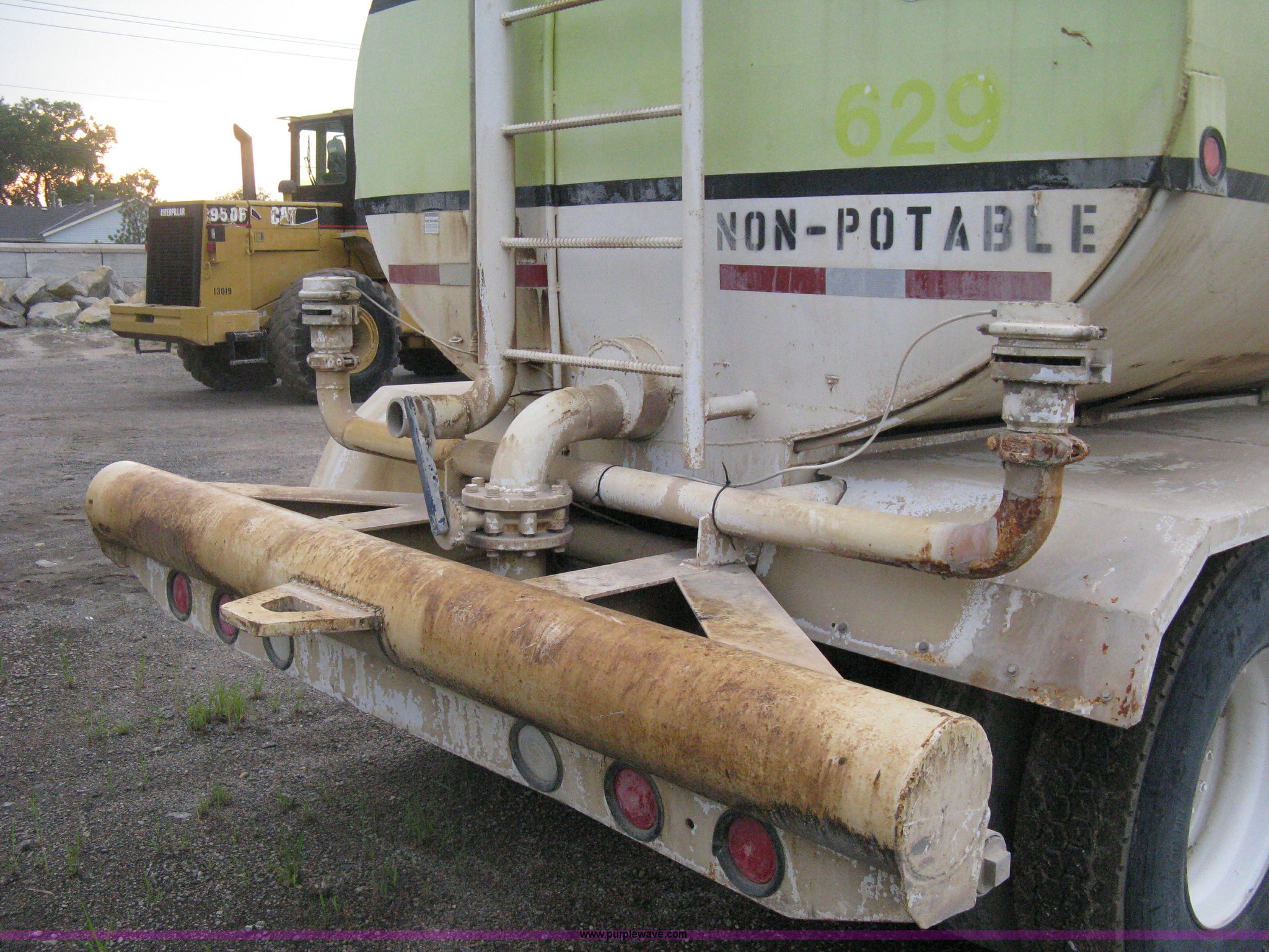 Purple Wave is selling a used Tank Truck or Water Truck in Kansas. This item is a 1977 White Western Star water tanker truck with the following: 432,997 miles on odometer, Not Actual Mileage, 2,233 hours on meter, 3306-PC7 diesel engine, Eaton Fuller RT0-958LL eight speed manual transmission, Deep reduction, Full screw, Heat, Air suspension seat, Single fuel tank, Single rear exhaust stack, PTO, Rear tow bumper, Air suspension, Air brakes, 236" wheelbase, 425/65R22.5 front tires, 295/75R22.5 rear tires, Interior/exterior cosmetic damage, Windshield cracked, Passenger side door handle missing, Driver's side window is rolled down, Will not raise, Brakes need work, Unit# 48.629